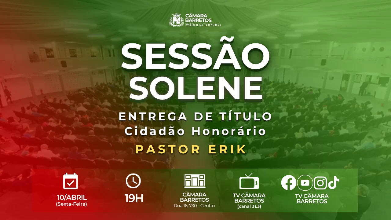 PASTOR ERIK WASHINGTON DE LIMA receberá o Título de Cidadão Honorário de Barretos