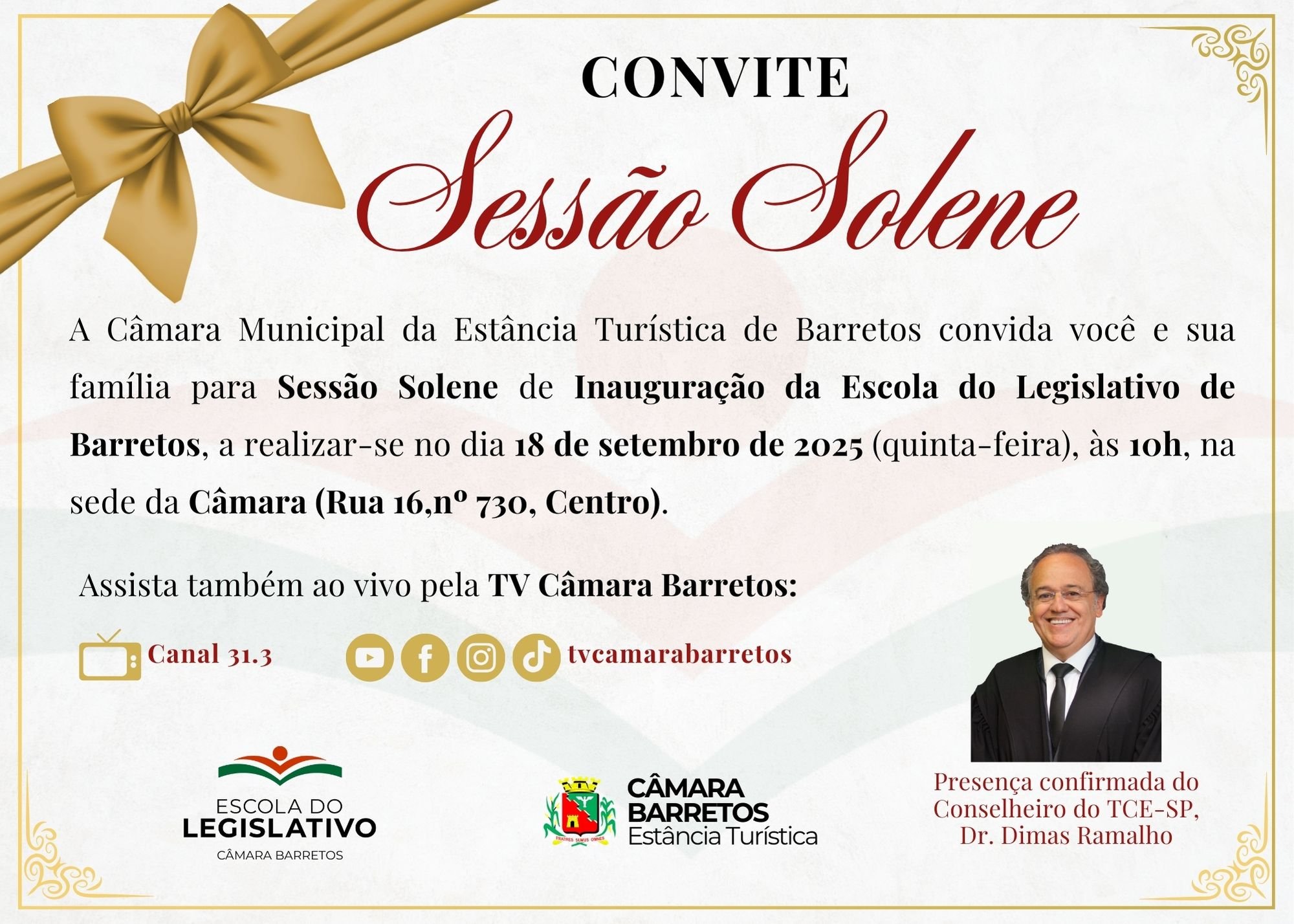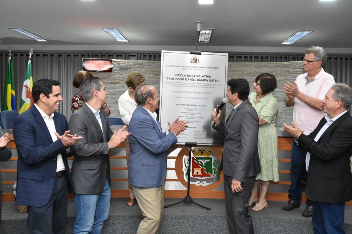 A Câmara Municipal da Estância Turística de Barretos realizou na manhã desta quinta-feira (18/09), Sessão Solene Comemorativa para inauguração oficial da Escola do Legislativo, que recebeu o nome de "Professor Daniel Bampa Netto", em homenagem ao barretense reconhecido por sua trajetória de participação comunitária e compromisso com a cidade.