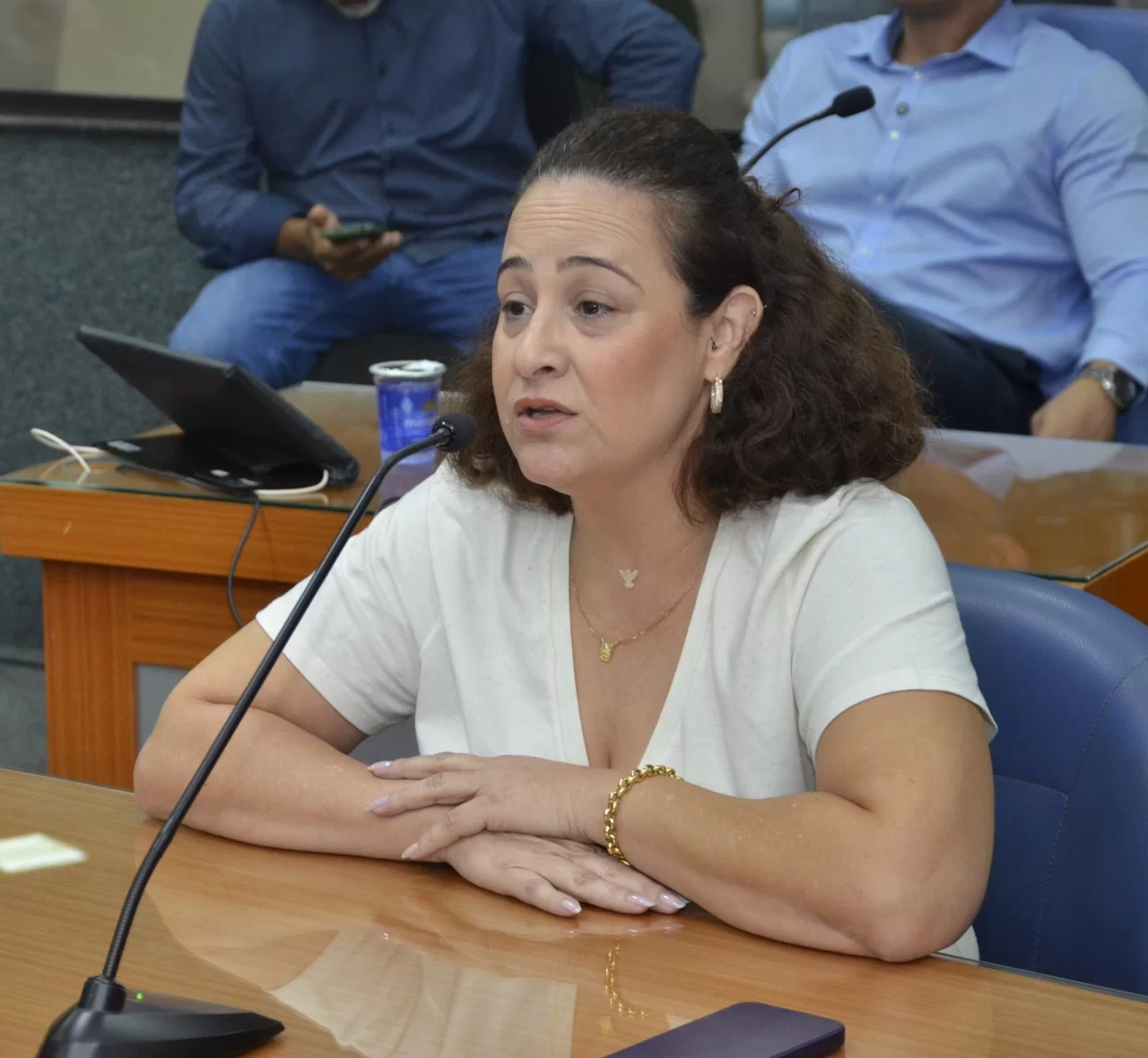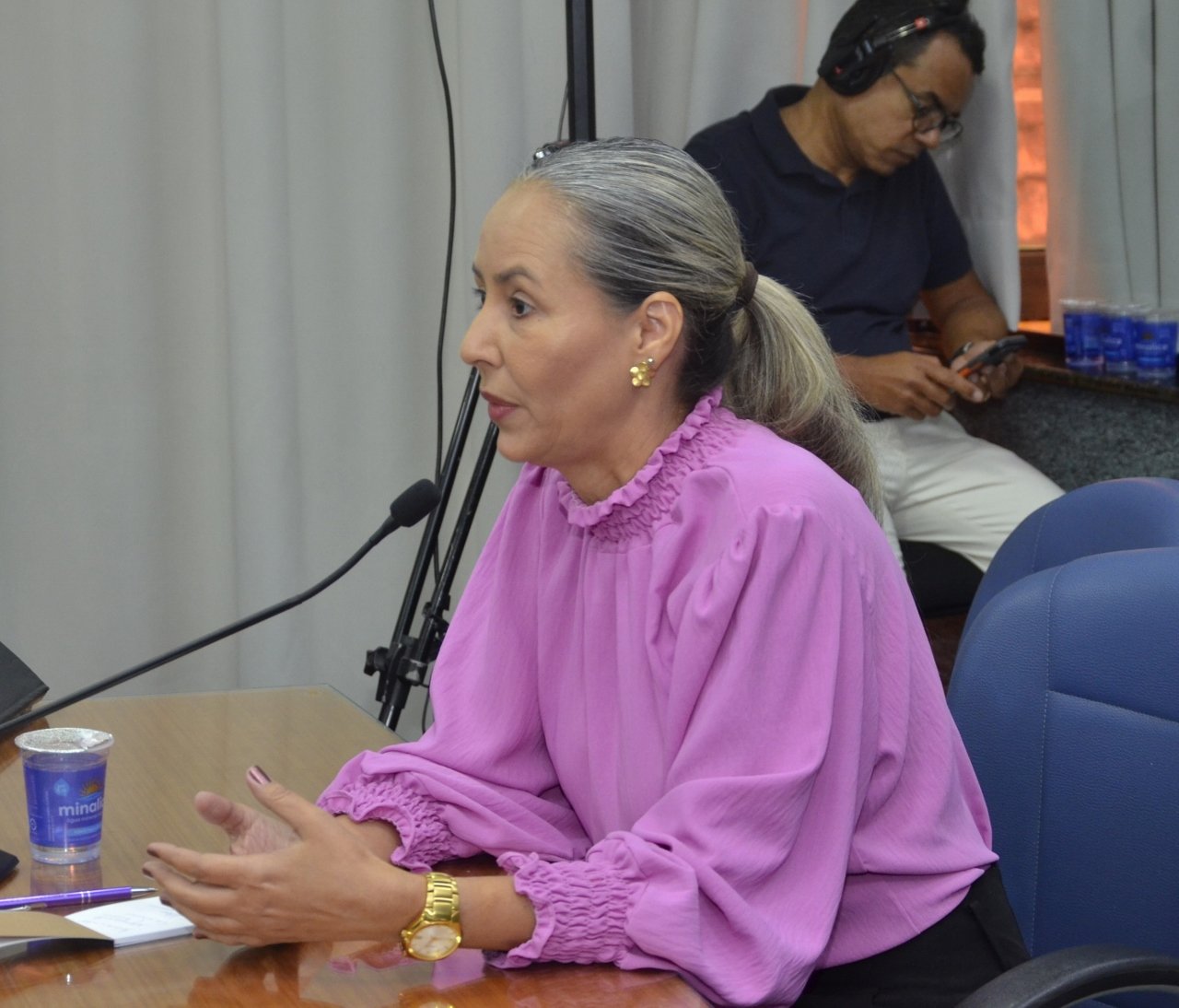 A audiência foi conduzida pela Vereadora Danúbia Alves e teve como componentes da Mesa: vereador Juninho Bandeira, Mussa Calil Neto, vice-Prefeito de Barretos, Juliana Adão, Secretária Municipal de Educação, Taciana Nunes, representando a DDM - Delegacia de Defesa da Mulher, Minisa Nogueira, Presidente do COMDIM - Conselho Municipal dos Direitos da Mulher, Fernanda Nogueira, Coordenadora do CRAM - Centro de Referência de Atendimento à Mulher, Lívia Valim, Assistente Social, representando a Defensoria Pública, Silvana Cristina Pereira, Orientadora Social do SURSIS - Suspensão Condicional da Pena e Claudia Oliveira, Assistente Social - representando a Santa Casa de Misericórdia.