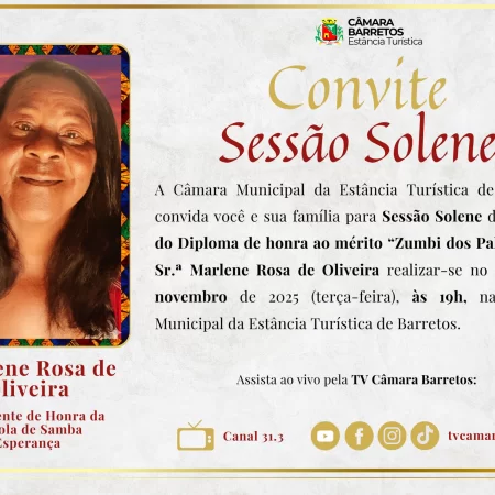 Hoje, ao receber a Homenagem Zumbi dos Palmares, celebramos nele o símbolo da luta, da dignidade e da presença negra que ajudou a erguer Barretos e o Brasil.