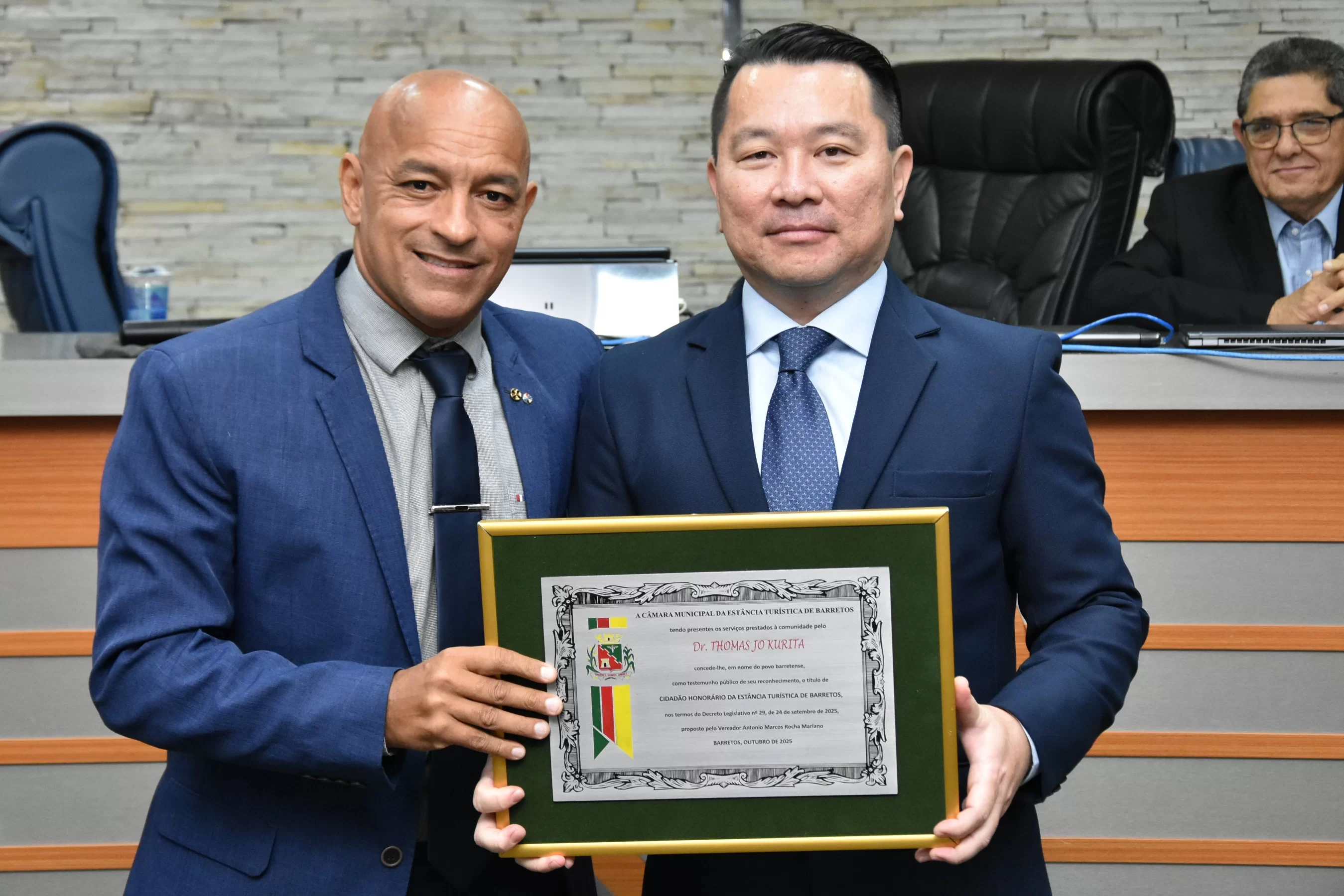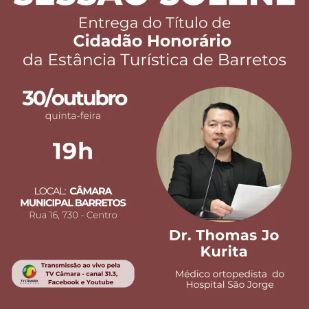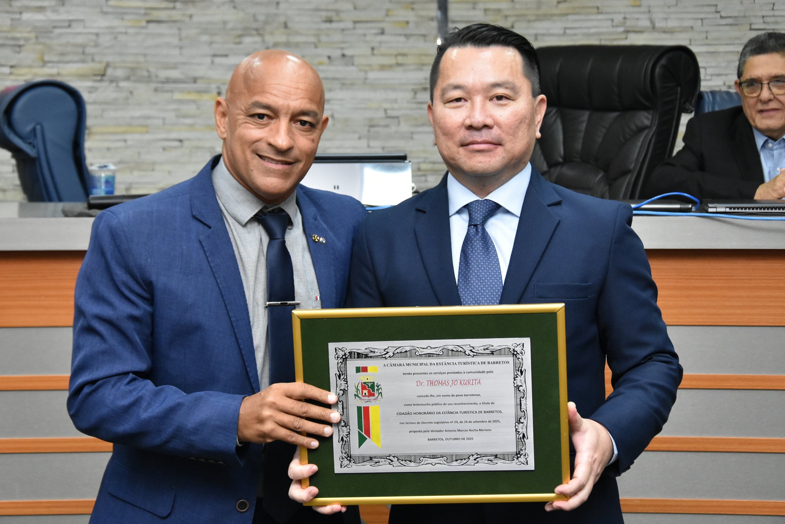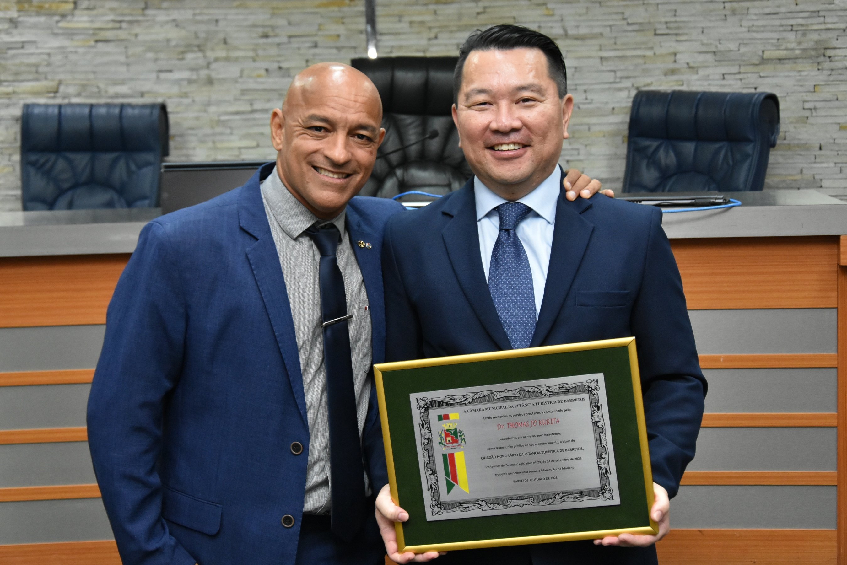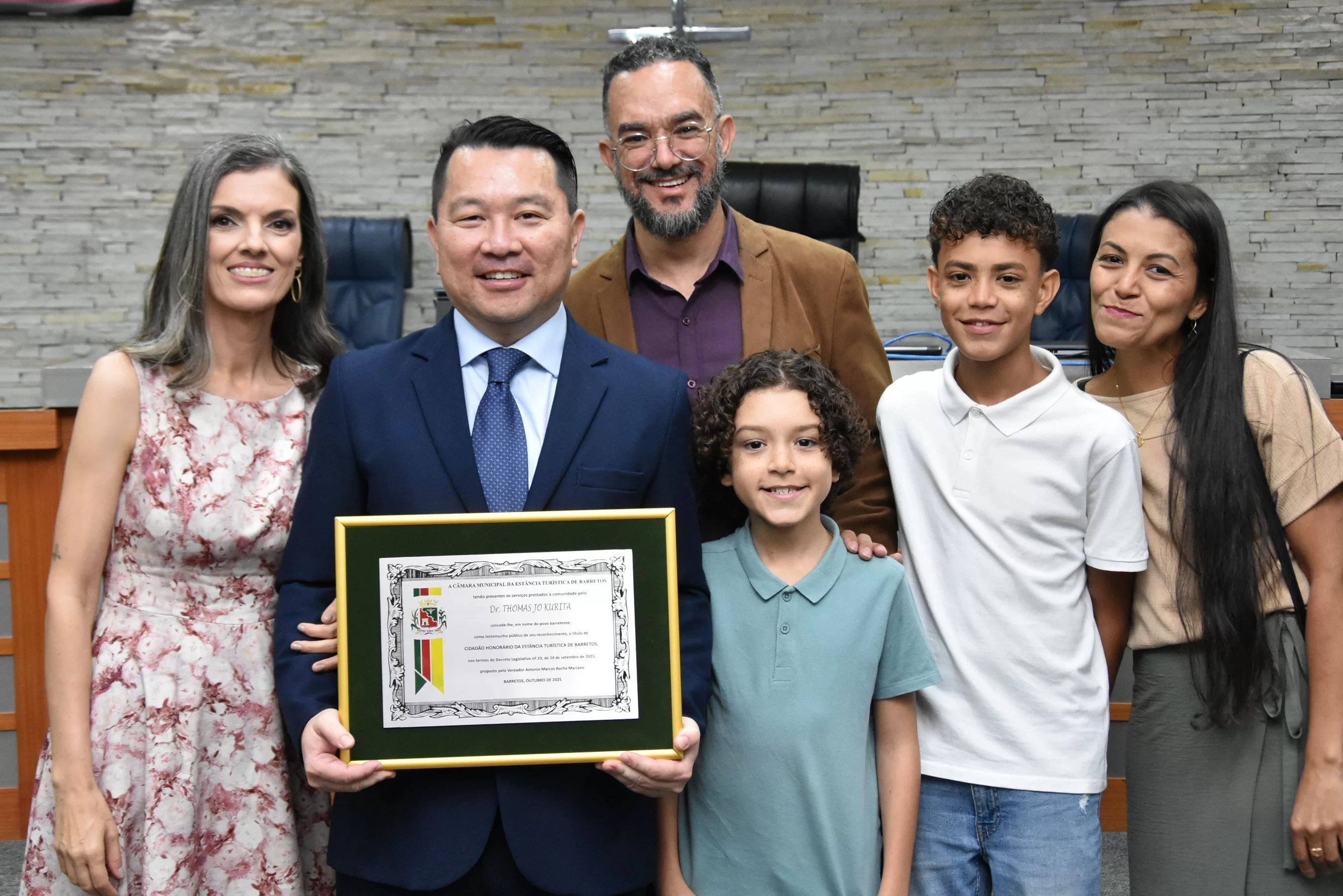A Câmara Municipal de Barretos realizou no dia 30 de outubro (quinta-feira), às 19h, Sessão Solene para entrega do Título de Cidadão Honorário da Estância Turística de Barretos ao Dr. Thomas Jo Kurita.