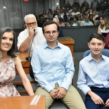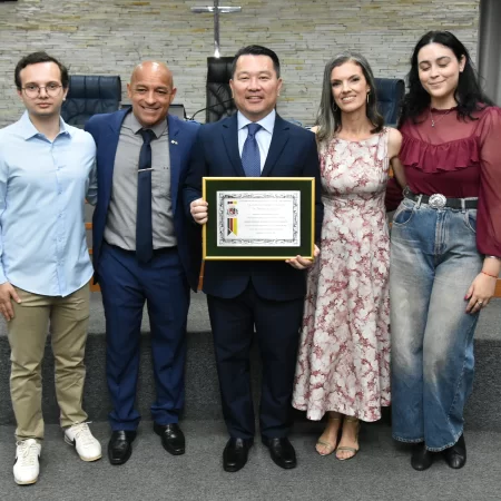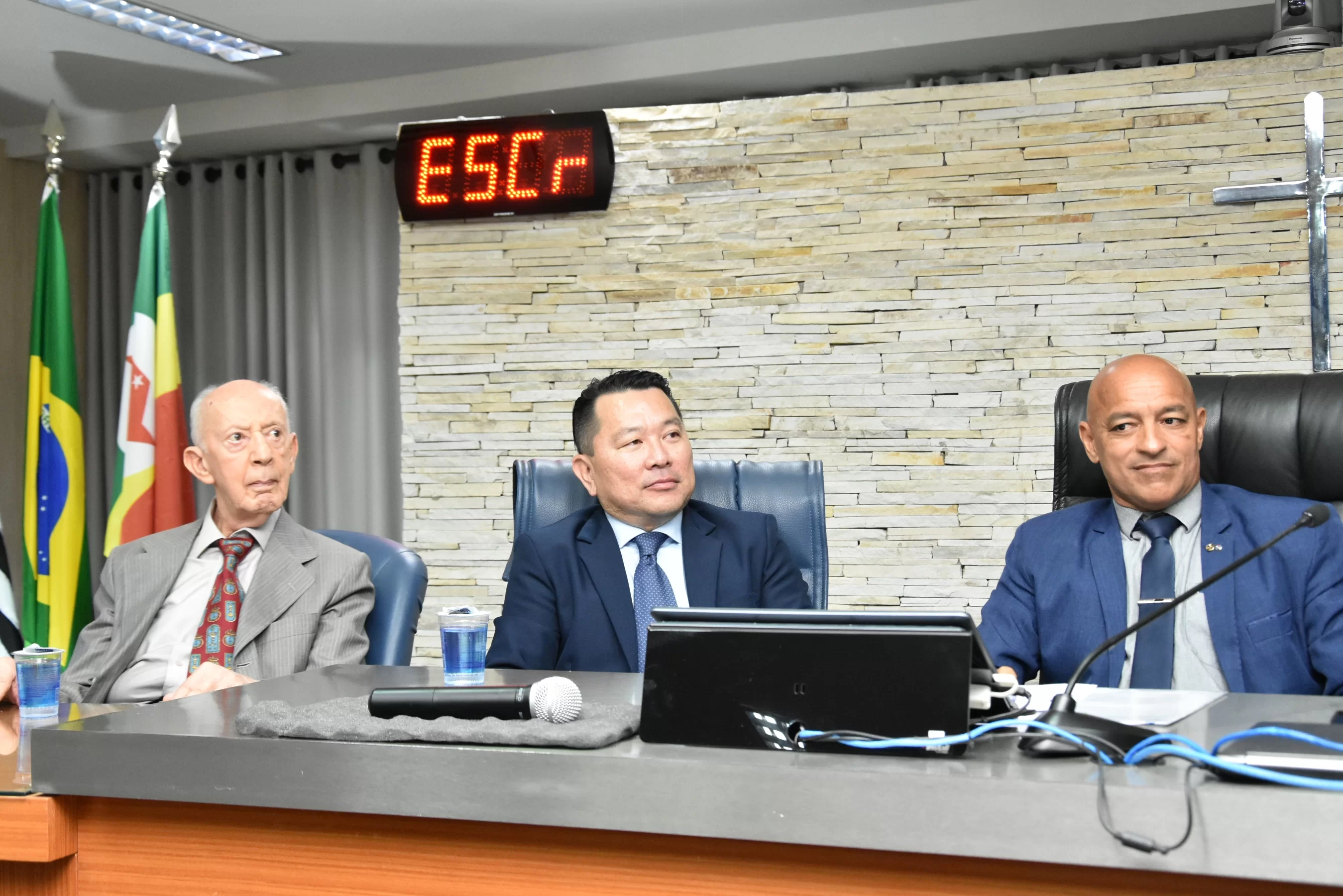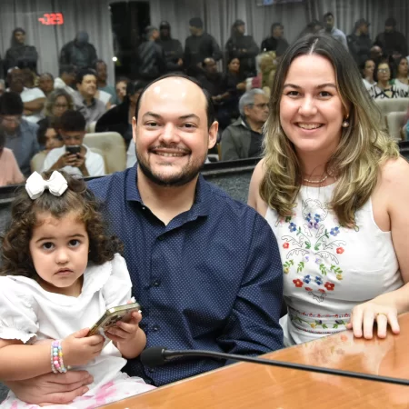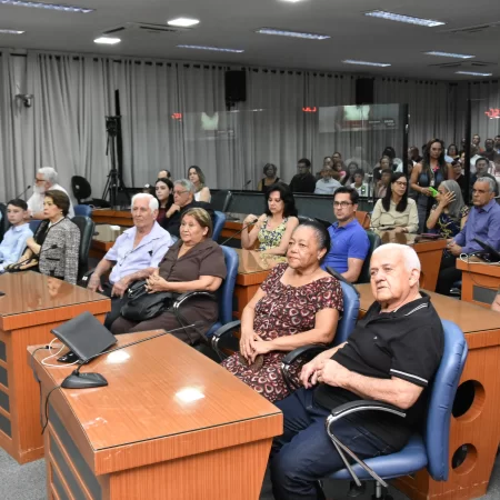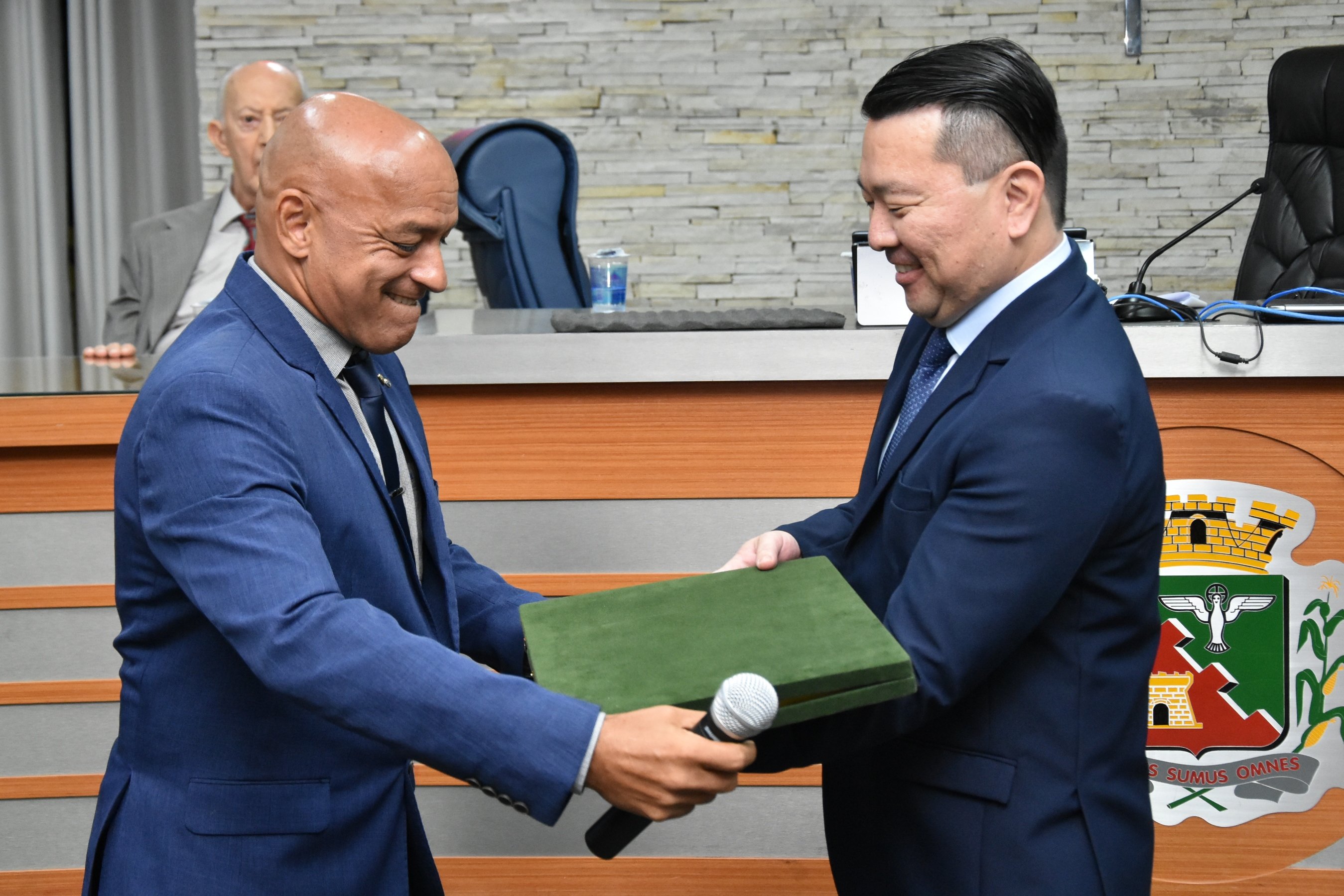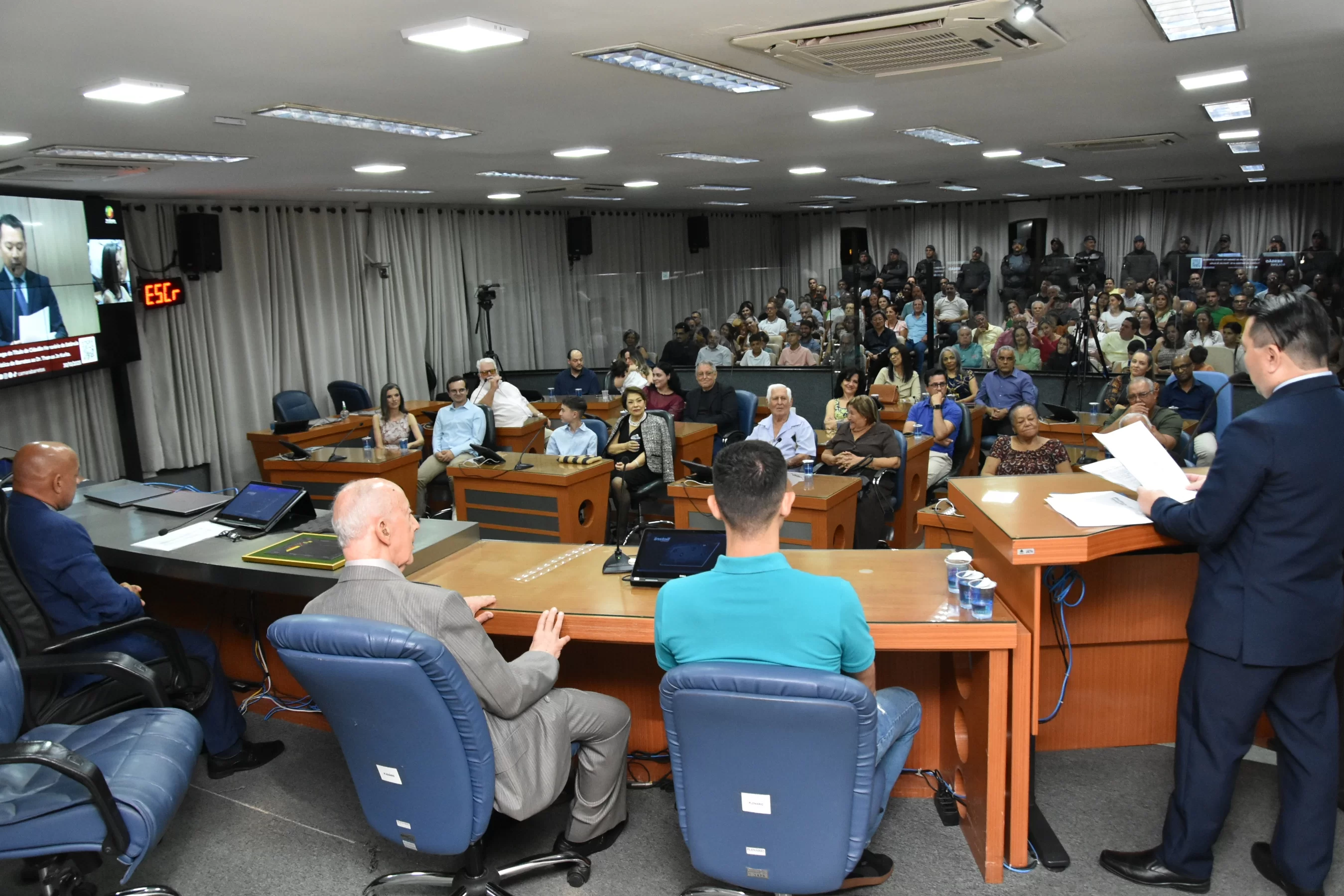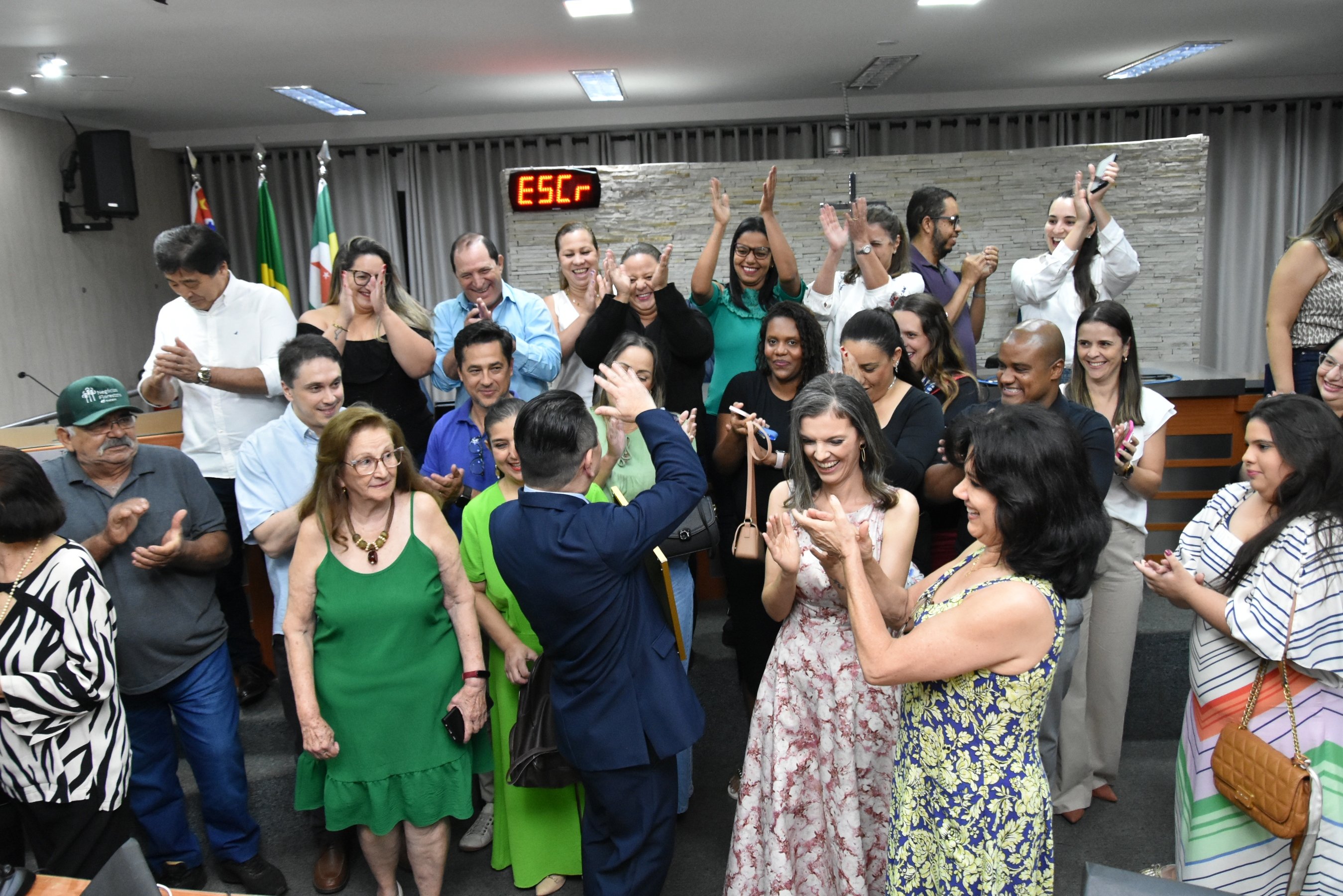 Várias autoridades, familiares e amigos do homenageado estiveram presentes e lotaram o Plenário da Câmara Municipal para prestigiarem a solenidade.