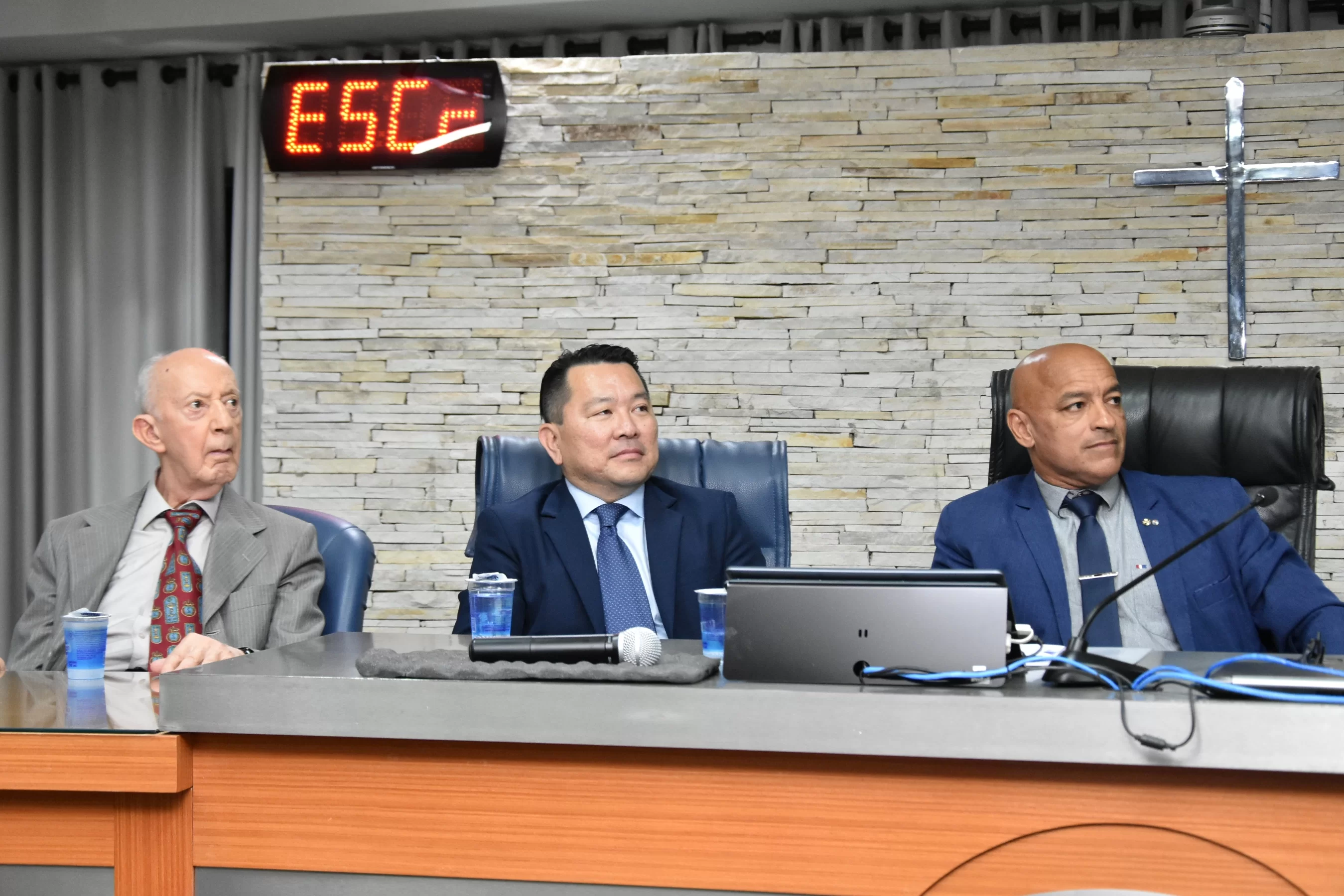 Fizeram parte da Mesa: o Vereador Luiz Carlos Anastácio - Paçoca, o ex-Prefeito Dr. Uebe Rezeck, o Comandante do Pelotão de Força Tática Luiz Francisco dos Santos Neto e o Dr. Edson Hiroshi Hayacibara.