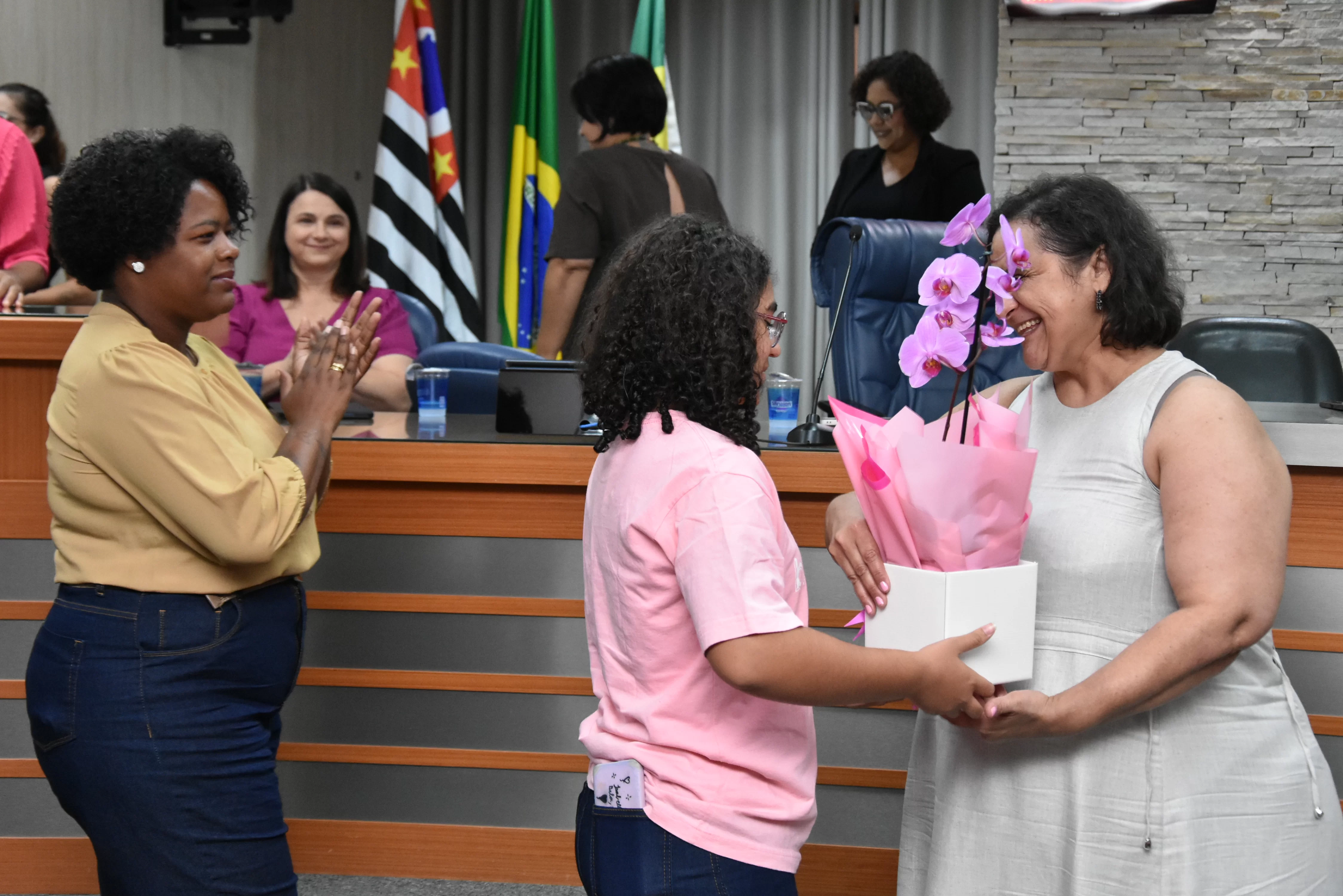 Familiares e alunas do projeto também compareceram à Câmara para prestigiar a solenidade.