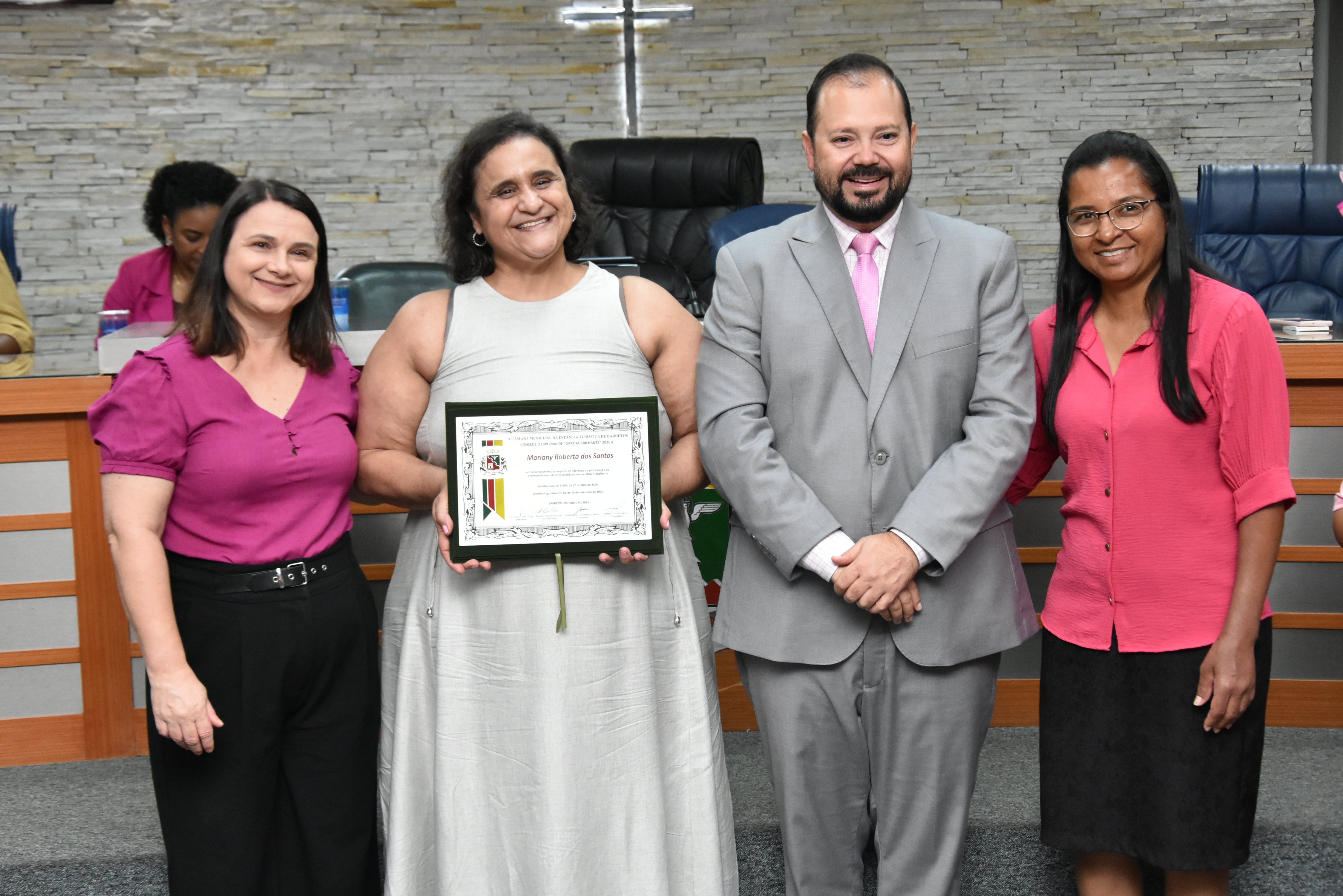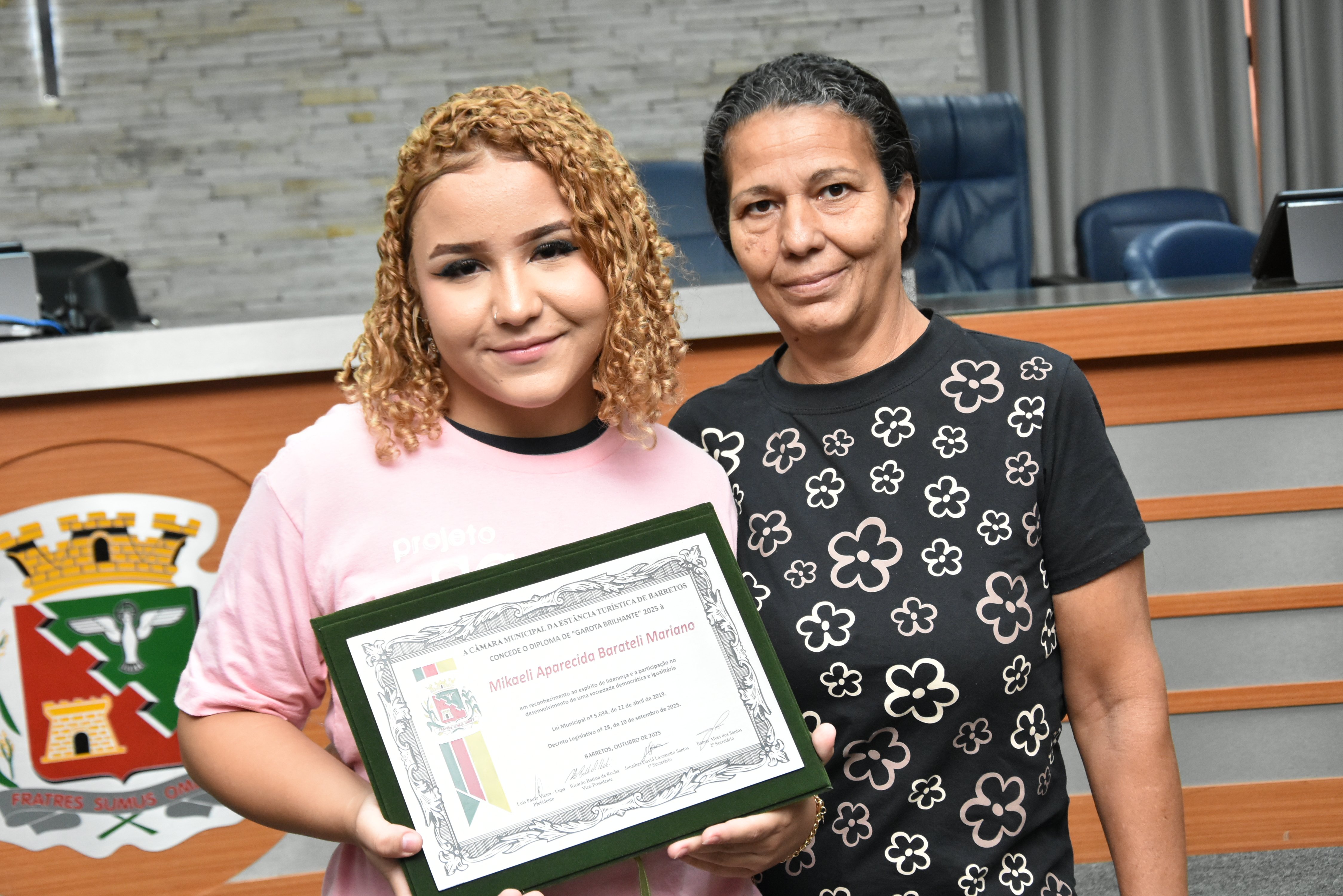 Na manhã de terça-feira (14 de outubro), a Câmara realizou Sessão Solene para entrega dos diplomas às meninas do projeto "Garotas Brilhantes", voltado a jovens que se destacaram ao longo do ano em projeto social de Barretos ligado à ADRA -Agência Adventista de Desenvolvimento e Recursos Assistenciais e ao CAAF - Centro Adventista de Apoio à Família de Barretos.