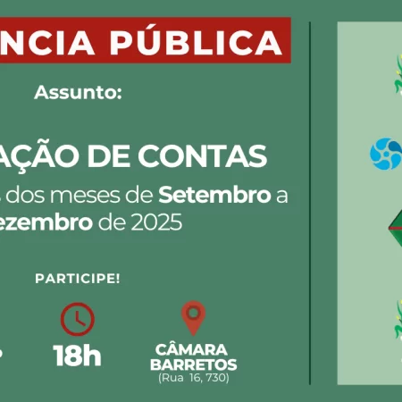PARTICIPE! Audiência Pública na Câmara de Barretos vai apresentar situação financeira de Barretos nos meses de setembro a dezembro de 2025