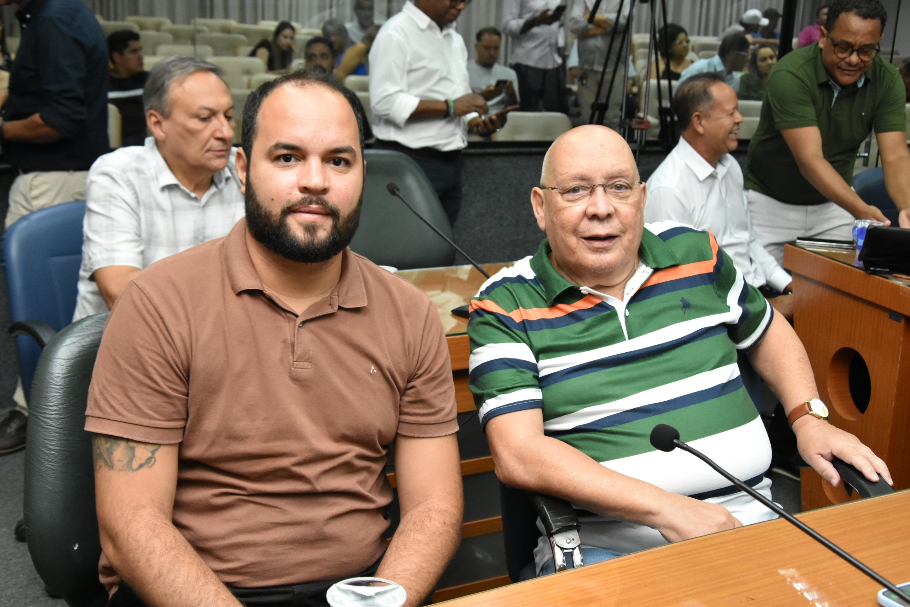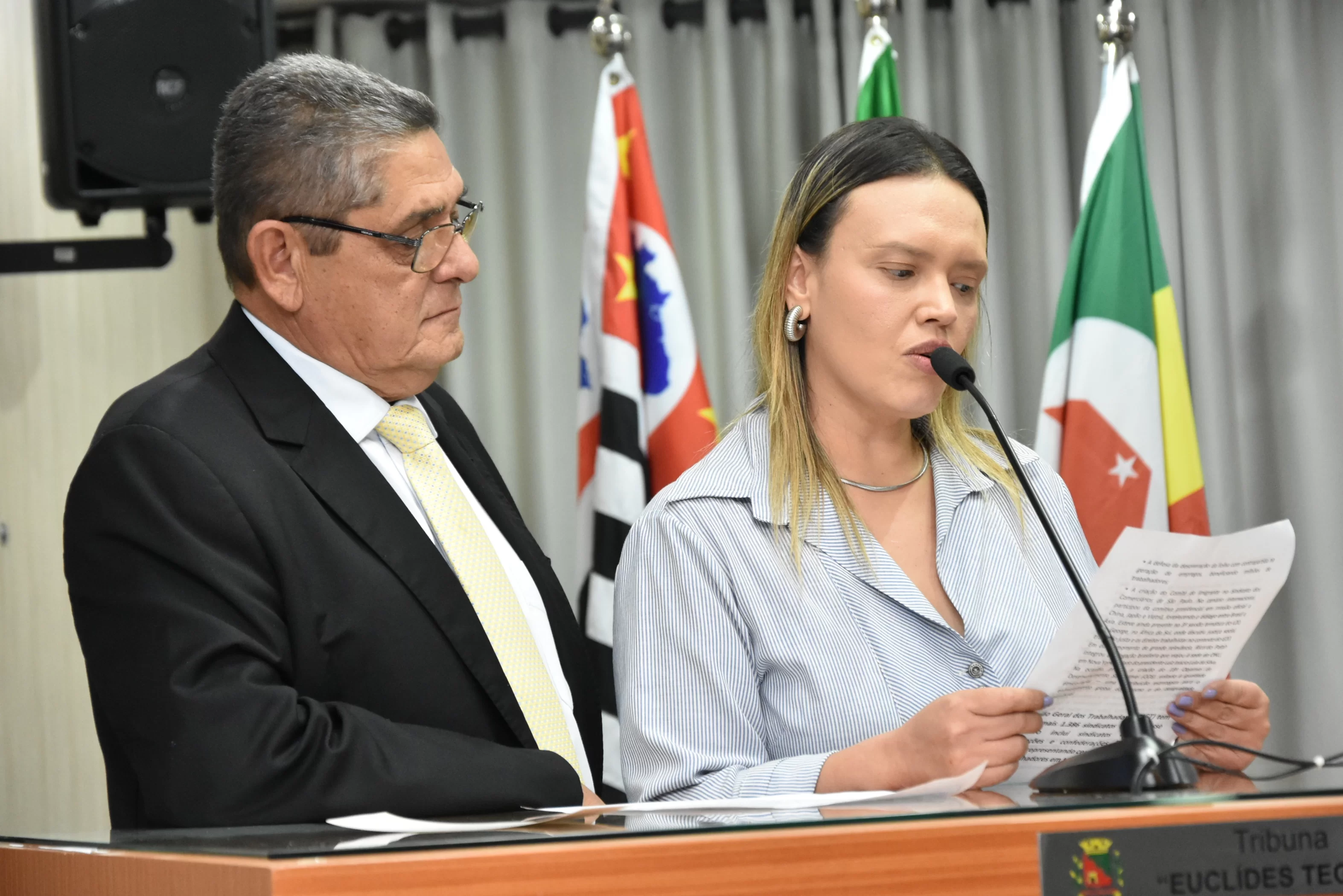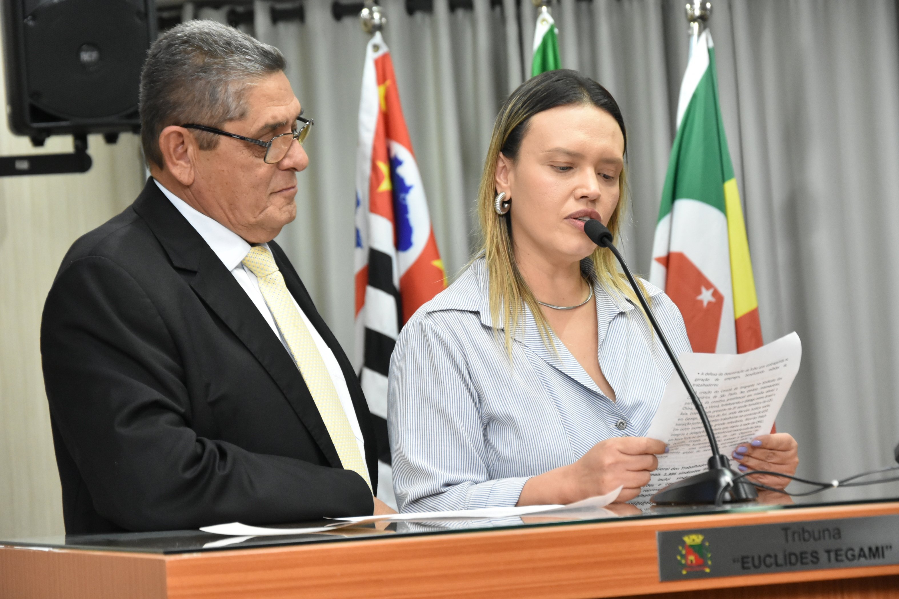 O Presidente Paçoca designou os Srs. Enilson da Silva, Presidente do Sindicato da Alimentação de Barretos e o Sr. Luiz Hamilton para conduzir o homenageado ao Plenário.