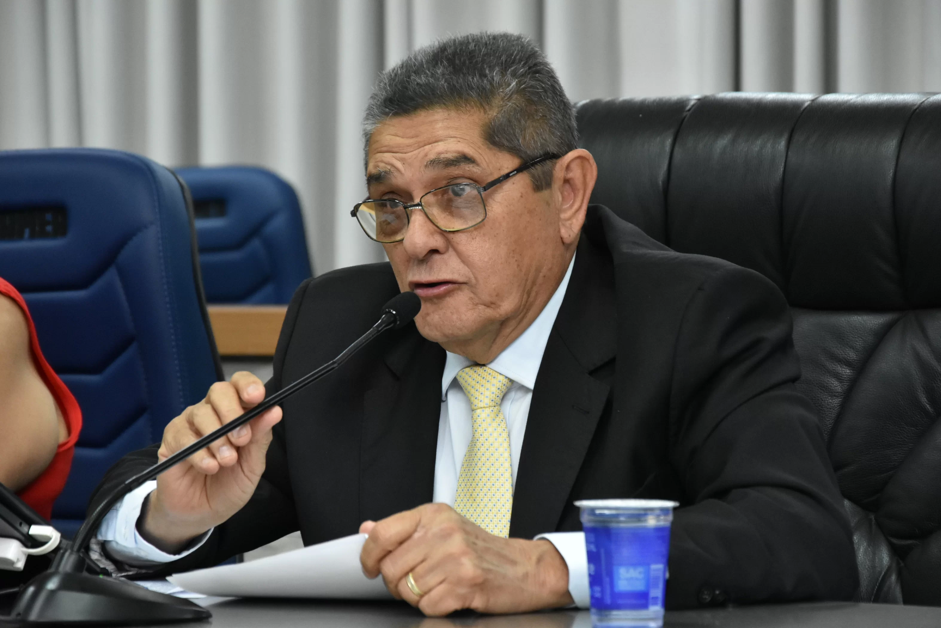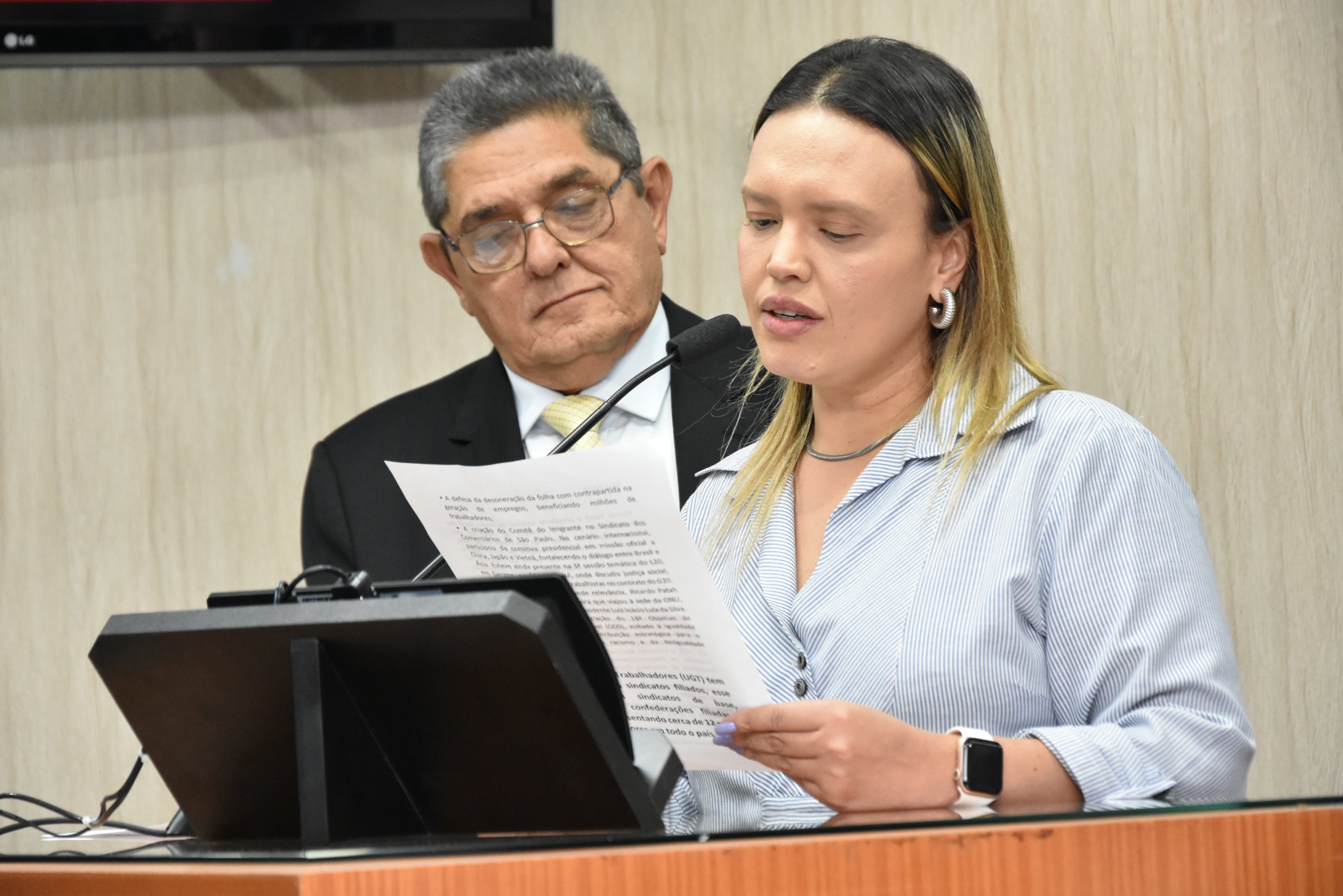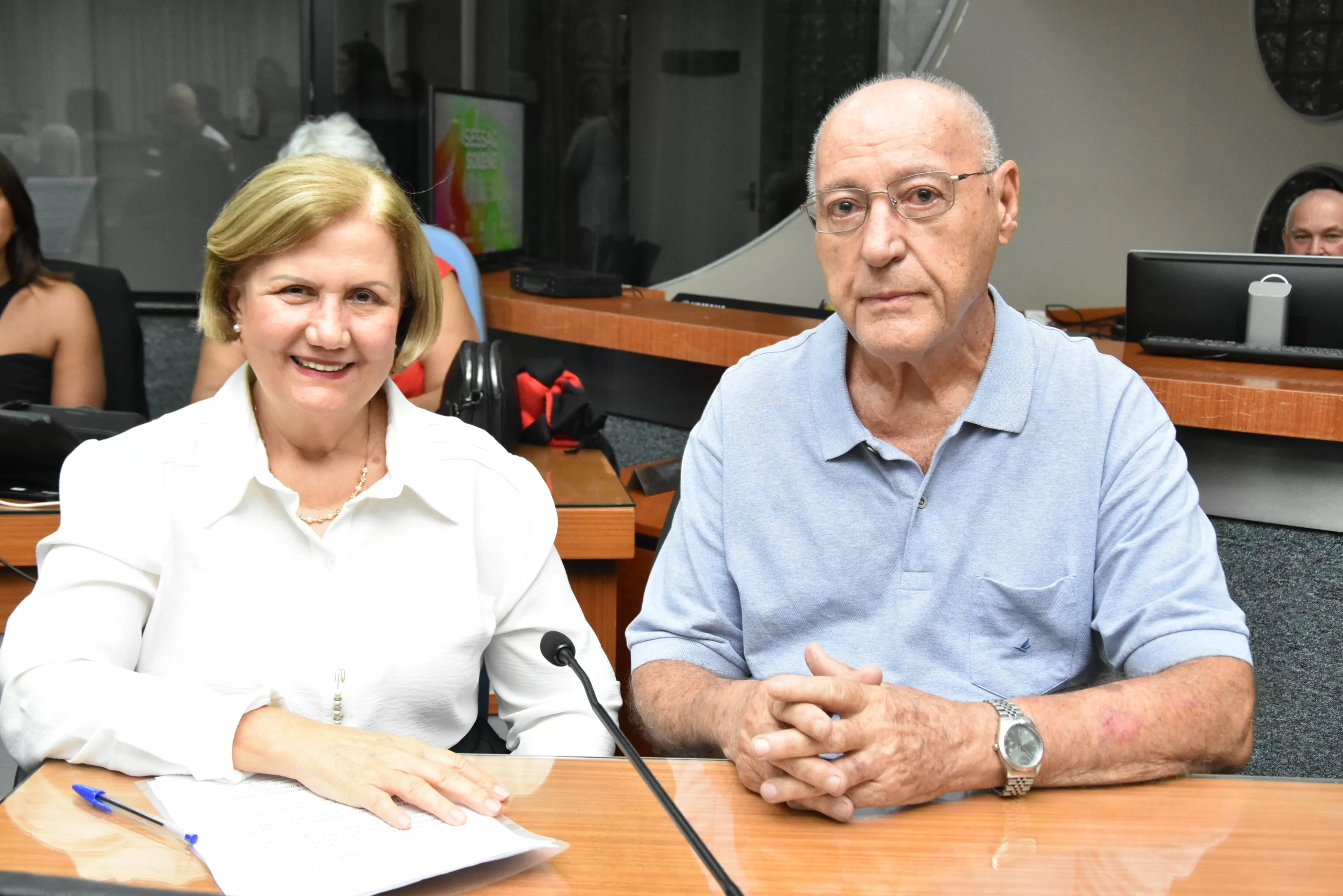 O Presidente Paçoca designou os Srs. Enilson da Silva, Presidente do Sindicato da Alimentação de Barretos e o Sr. Luiz Hamilton para conduzir o homenageado ao Plenário.