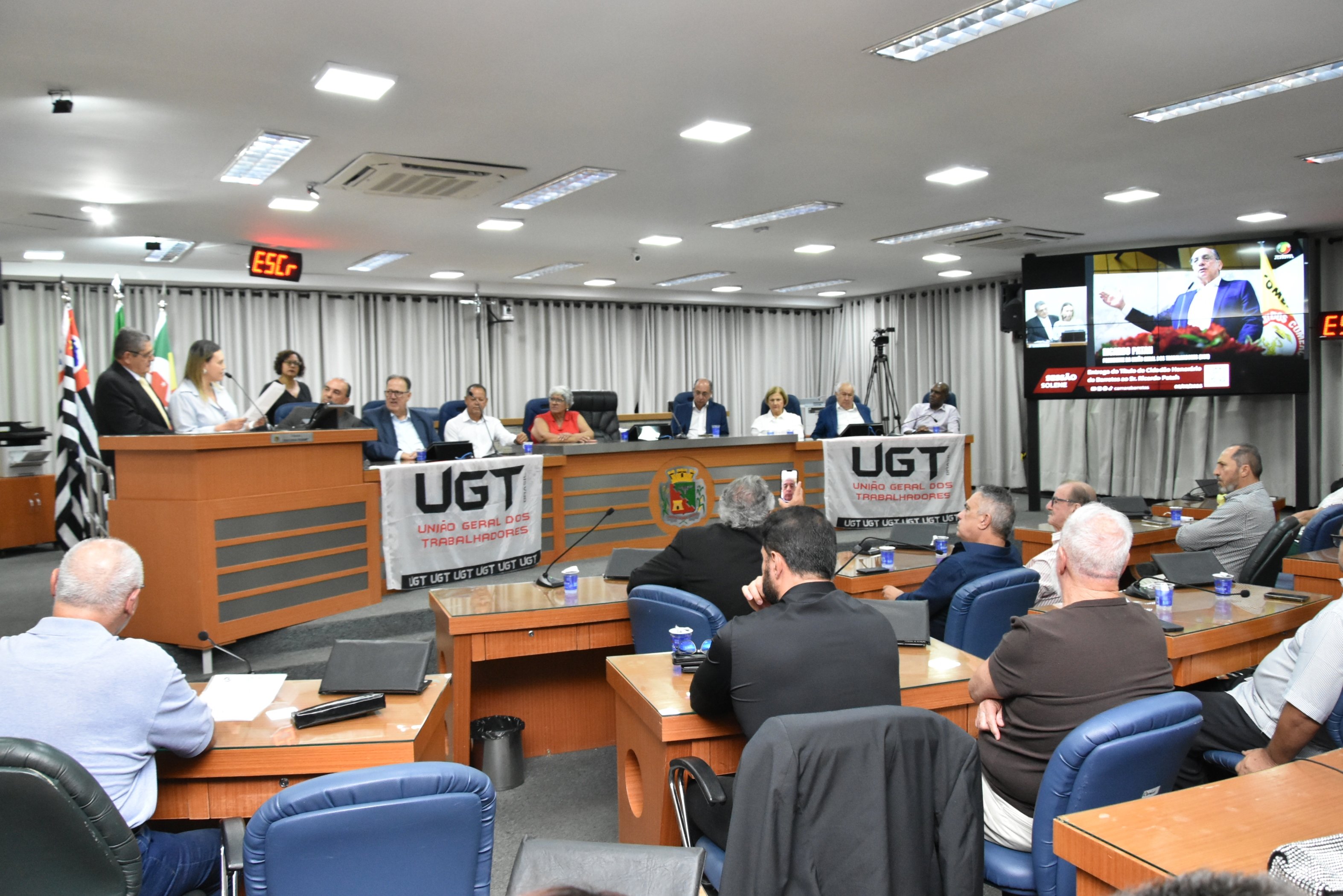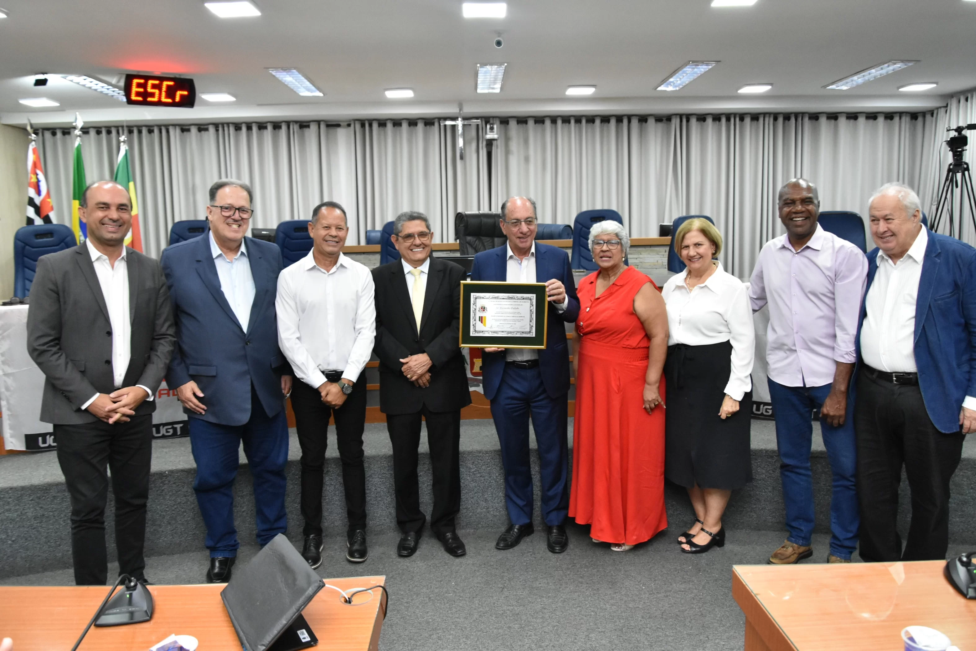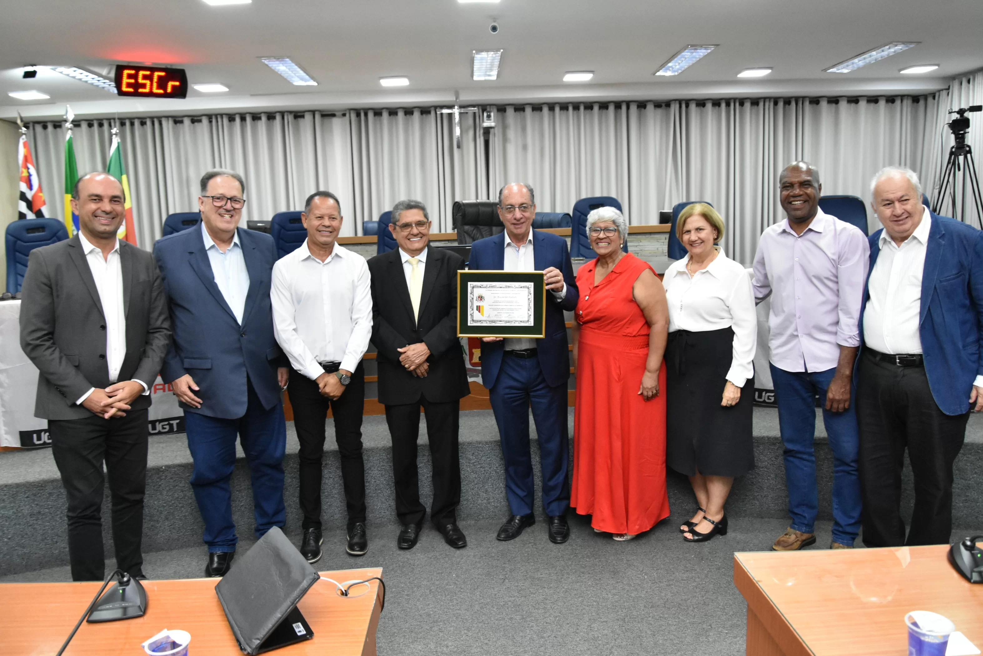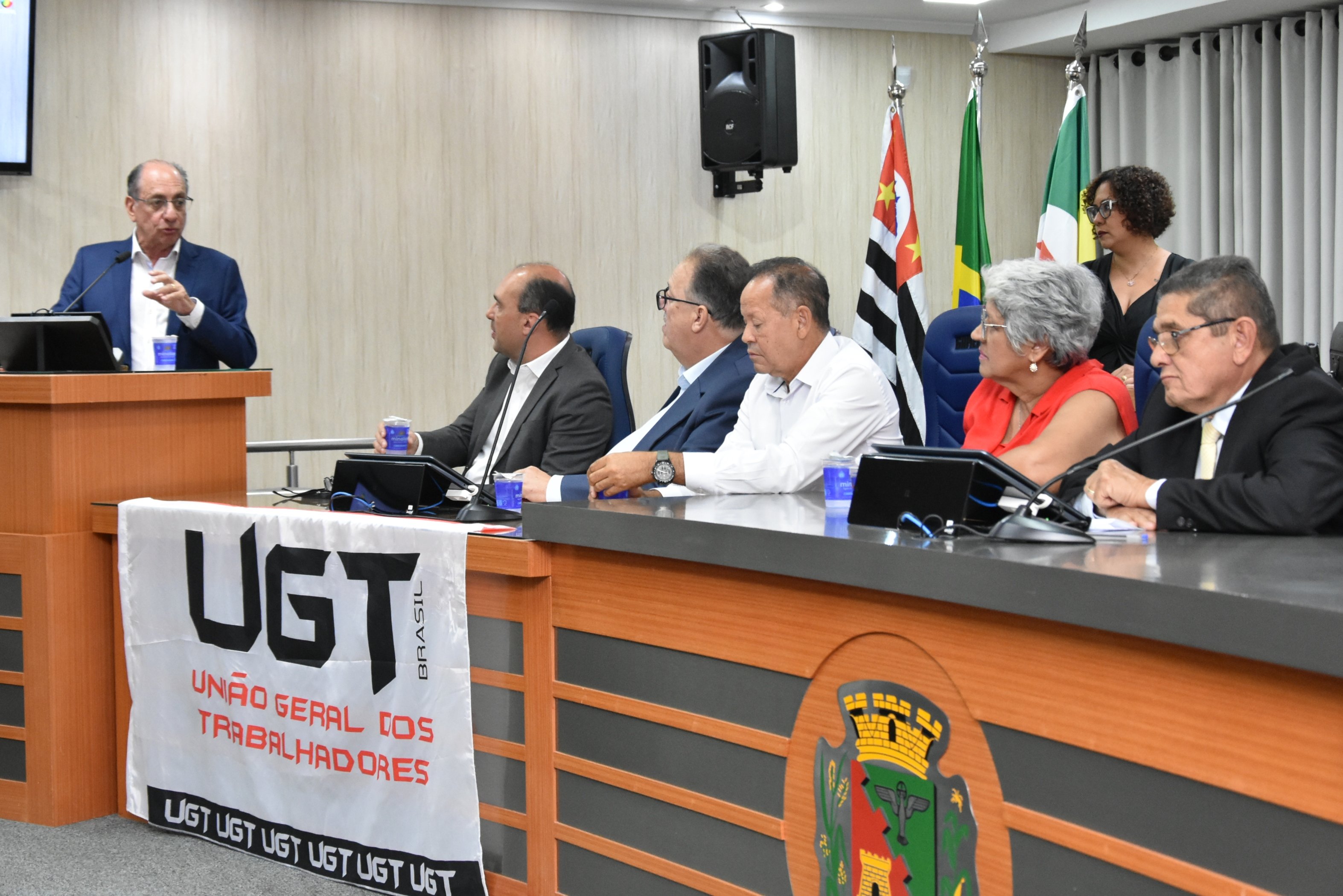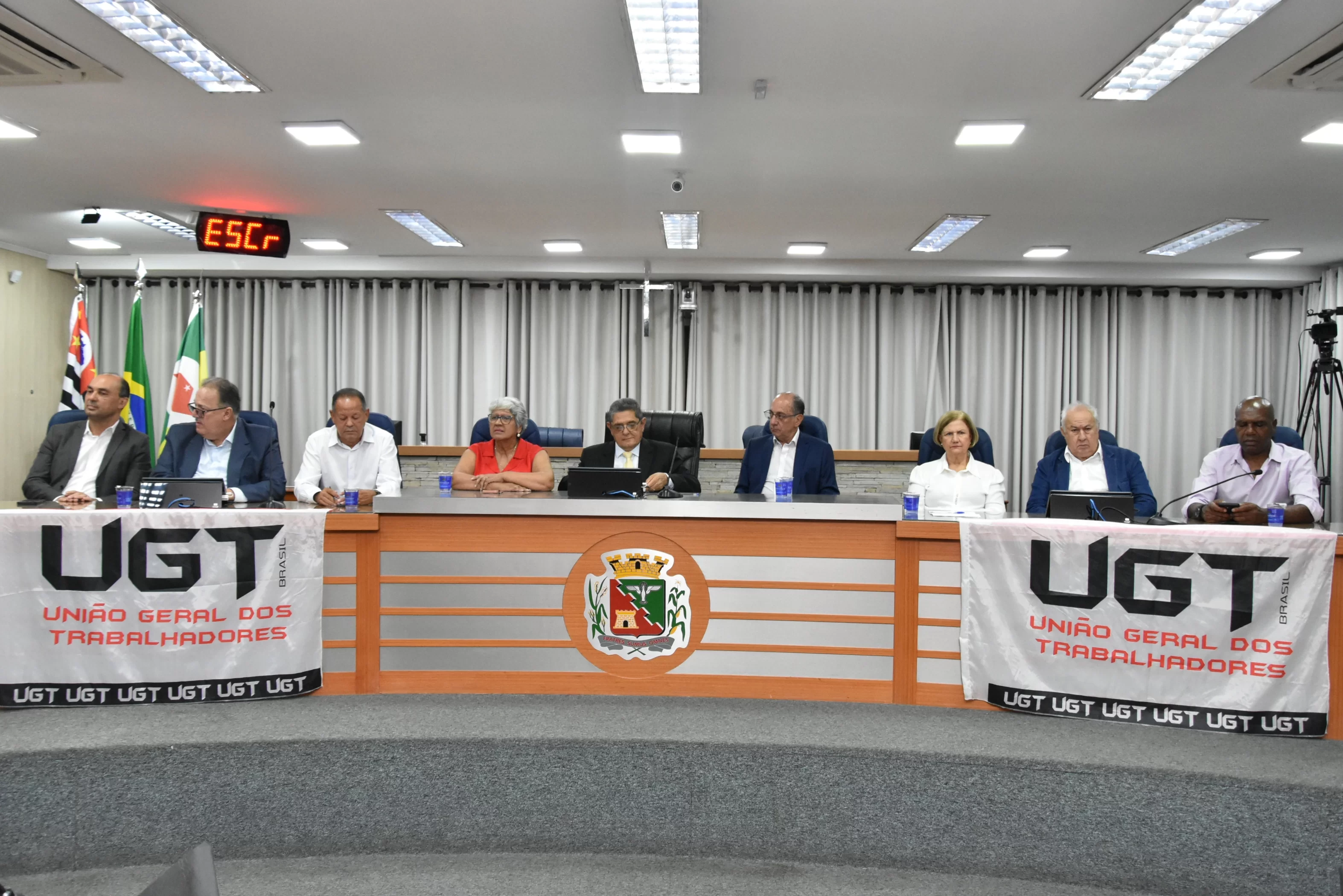 A solenidade foi presidida pelo Vereador Luiz Carlos Anastácio - Paçoca e teve como componentes da Mesa: Sr. Ricardo Patah (homenageado), Sr. Fernando Galvão, ex-prefeito de Bebedouro, Sr. Waldemar Schulz Junior - Mazinho, Presidente da UGT de Santa Catarina e do SINCOMERCIO  de Joinville, Srª. Santa Regina Pessoti Zagretti, Representando Luis Carlos Mota, Presidente da Federação dos Comerciários do Estado de São Paulo e a UGT Estadual, Sr. Rangel Silva, Presidente do Sindicato dos Trabalhadores da Construção Civil de Limeira e vice-Presidente da FETICOM São Paulo, Srª. Cleonice Caetano Souza, Vice-Presidente da UGT Nacional, Sr. Laerte Teixeira da Costa, vice-Presidente da UGT e ex-Vereador de São José do Rio Preto e Sr. Paulo Henrique, Presidente da FITIASP.