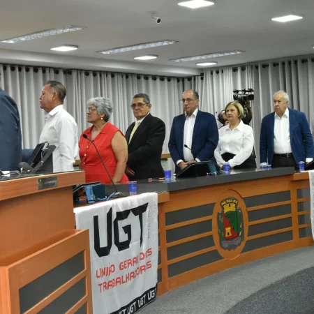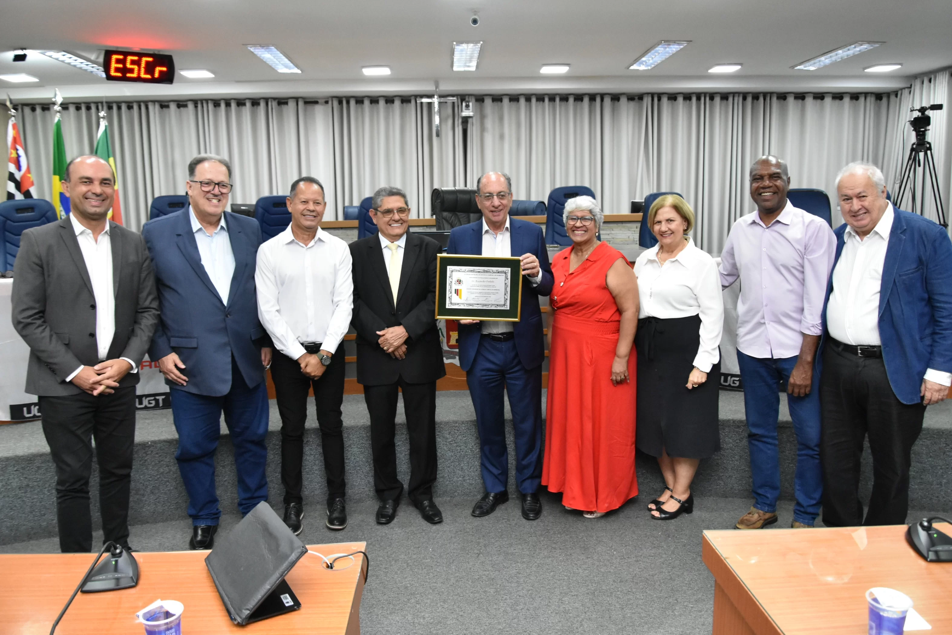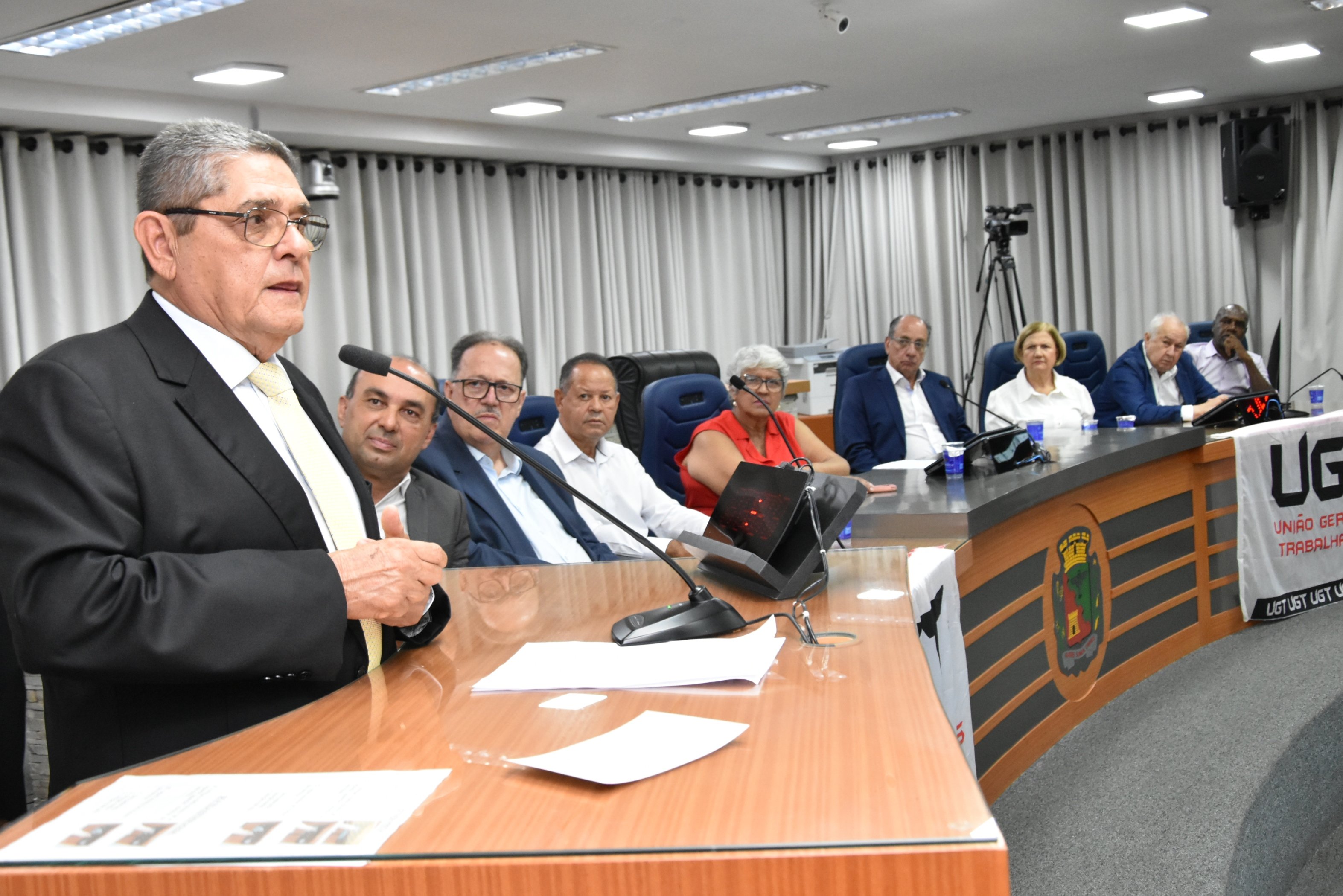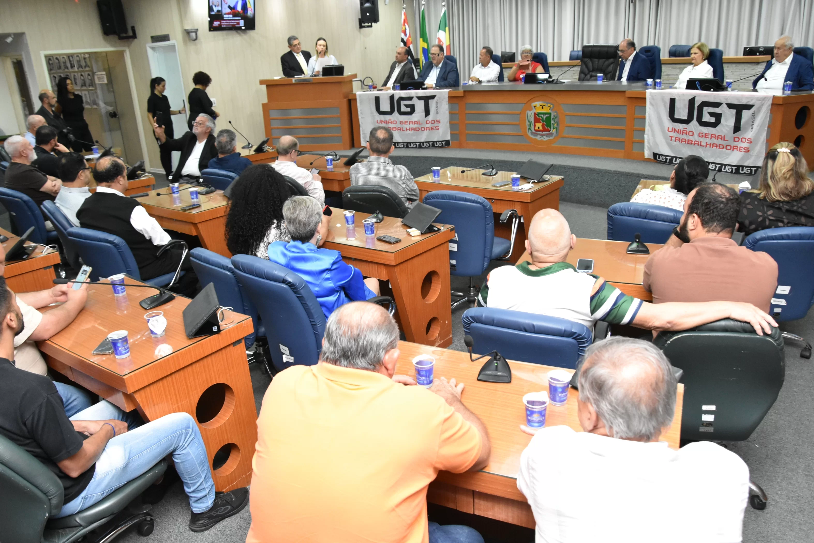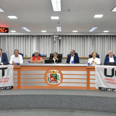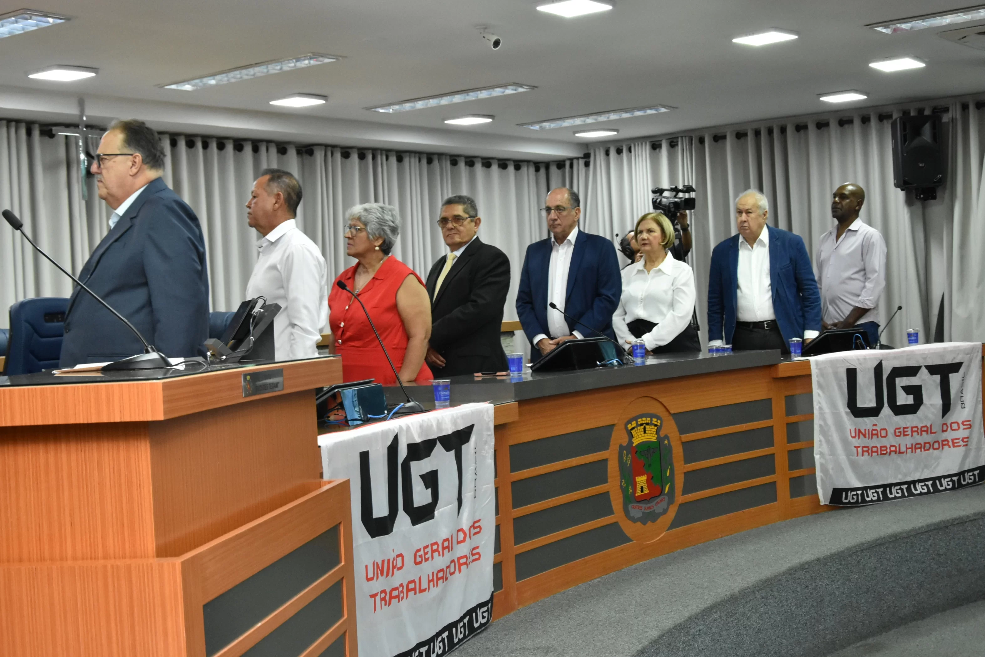 A solenidade foi presidida pelo Vereador Luiz Carlos Anastácio - Paçoca e teve como componentes da Mesa: Sr. Ricardo Patah (homenageado), Sr. Fernando Galvão, ex-prefeito de Bebedouro, Sr. Waldemar Schulz Junior - Mazinho, Presidente da UGT de Santa Catarina e do SINCOMERCIO  de Joinville, Srª. Santa Regina Pessoti Zagretti, Representando Luis Carlos Mota, Presidente da Federação dos Comerciários do Estado de São Paulo e a UGT Estadual, Sr. Rangel Silva, Presidente do Sindicato dos Trabalhadores da Construção Civil de Limeira e vice-Presidente da FETICOM São Paulo, Srª. Cleonice Caetano Souza, Vice-Presidente da UGT Nacional, Sr. Laerte Teixeira da Costa, vice-Presidente da UGT e ex-Vereador de São José do Rio Preto e Sr. Paulo Henrique, Presidente da FITIASP.
