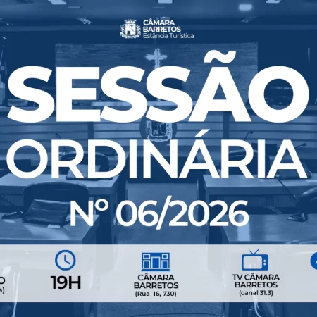 A Câmara de Barretos realiza na segunda-feira (09/março), às 19h, a 6ª Sessão Ordinária de 2026. Ao todo serão discutidas e votadas 19 matérias: 18 Projetos de Lei e 1 Parecer de Inconstitucionalidade.