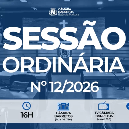 Devido ao ponto facultativo de 20 de abril, a Câmara Municipal realiza nesta terça-feira (28/abril), às 16h, a 12ª Sessão Ordinária de 2026.