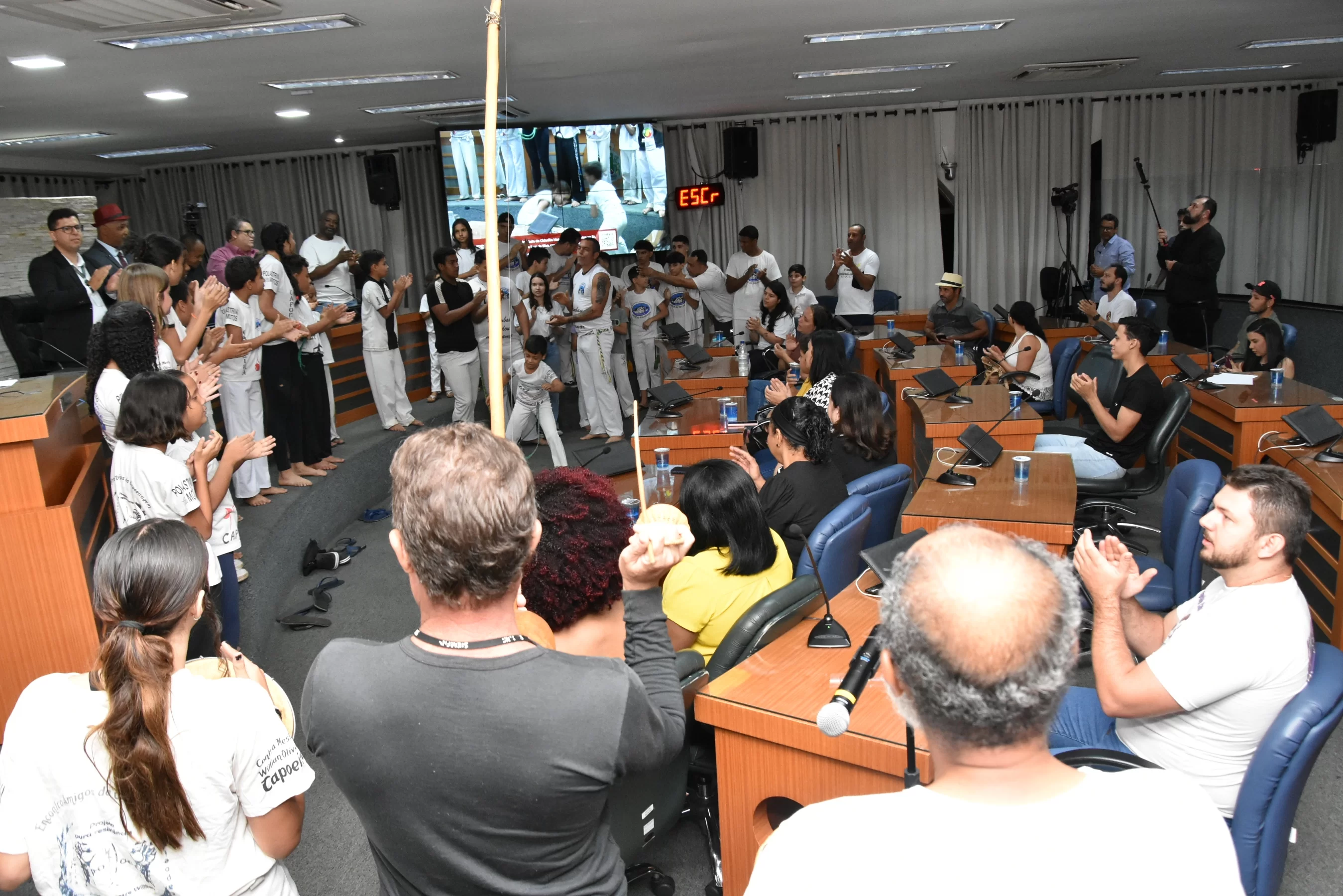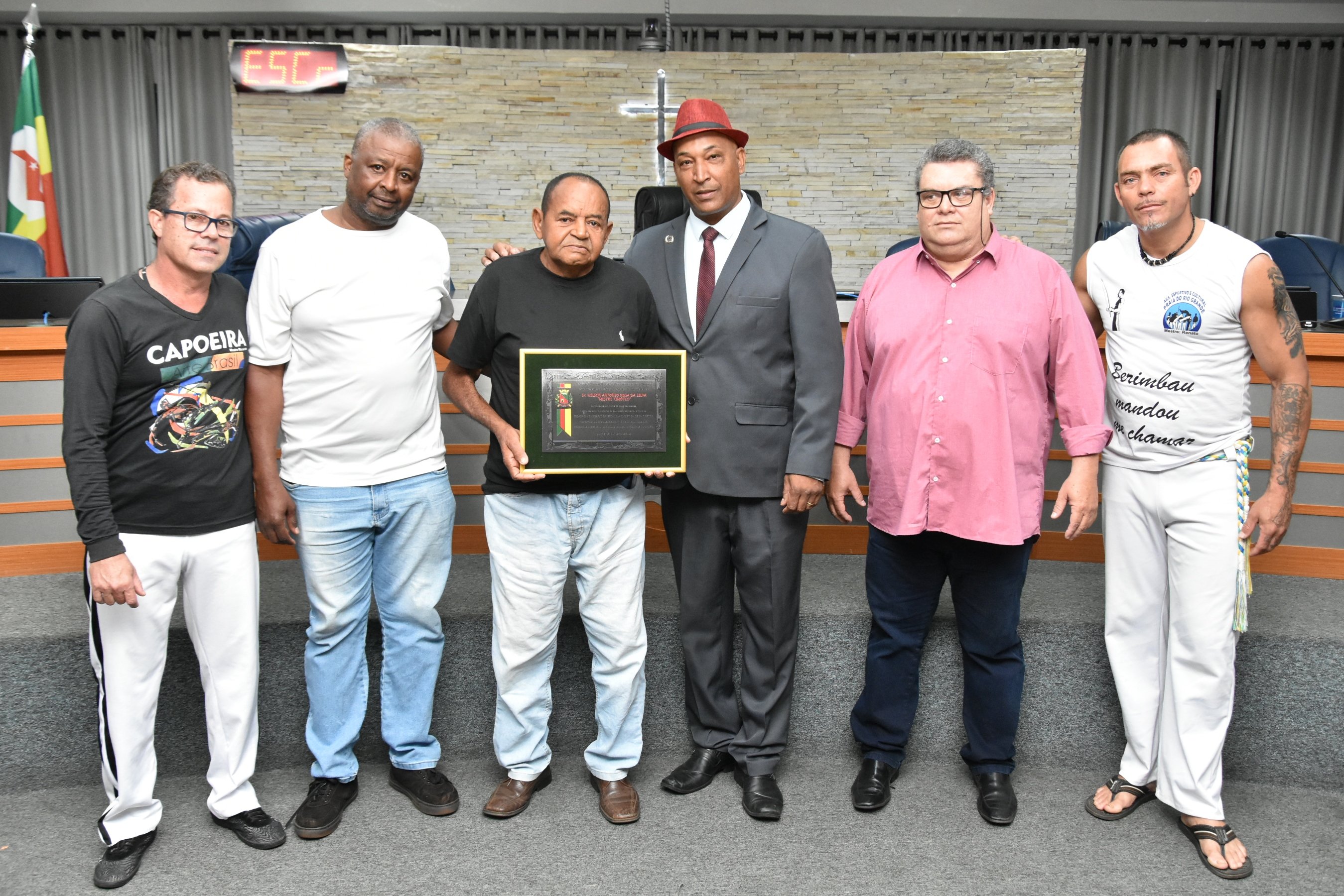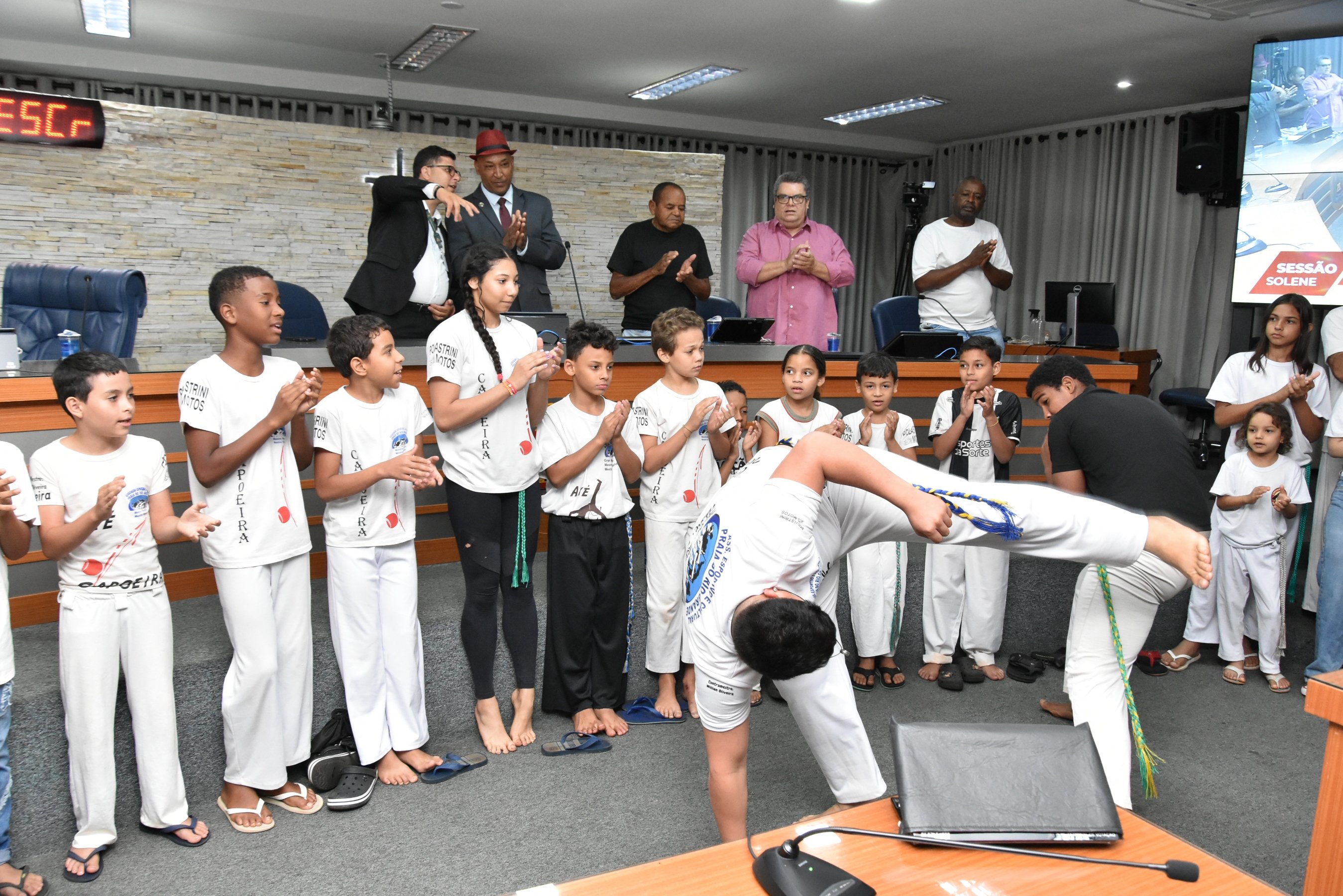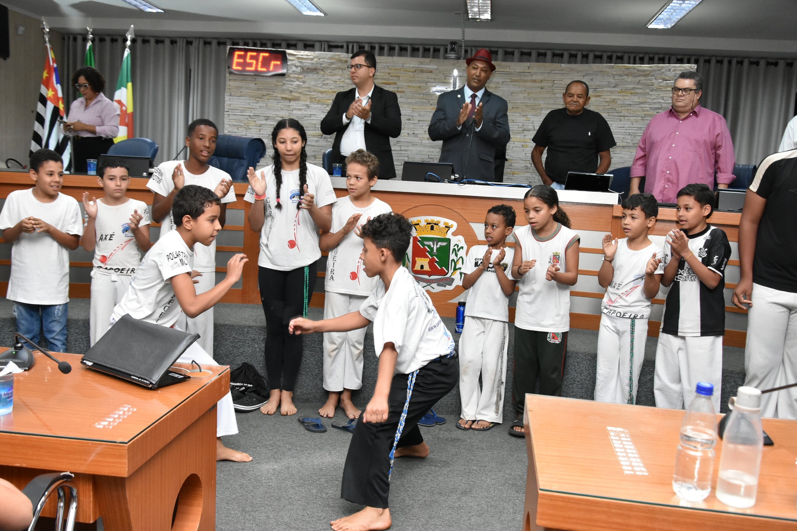 Familiares, amigos e vários alunos de capoeira (que fizeram uma linda apresentação) estiveram presentes à solenidade, que foi realizada no Plenário da Câmara Municipal.