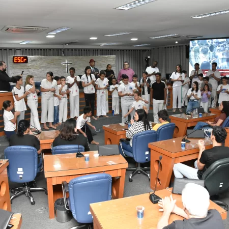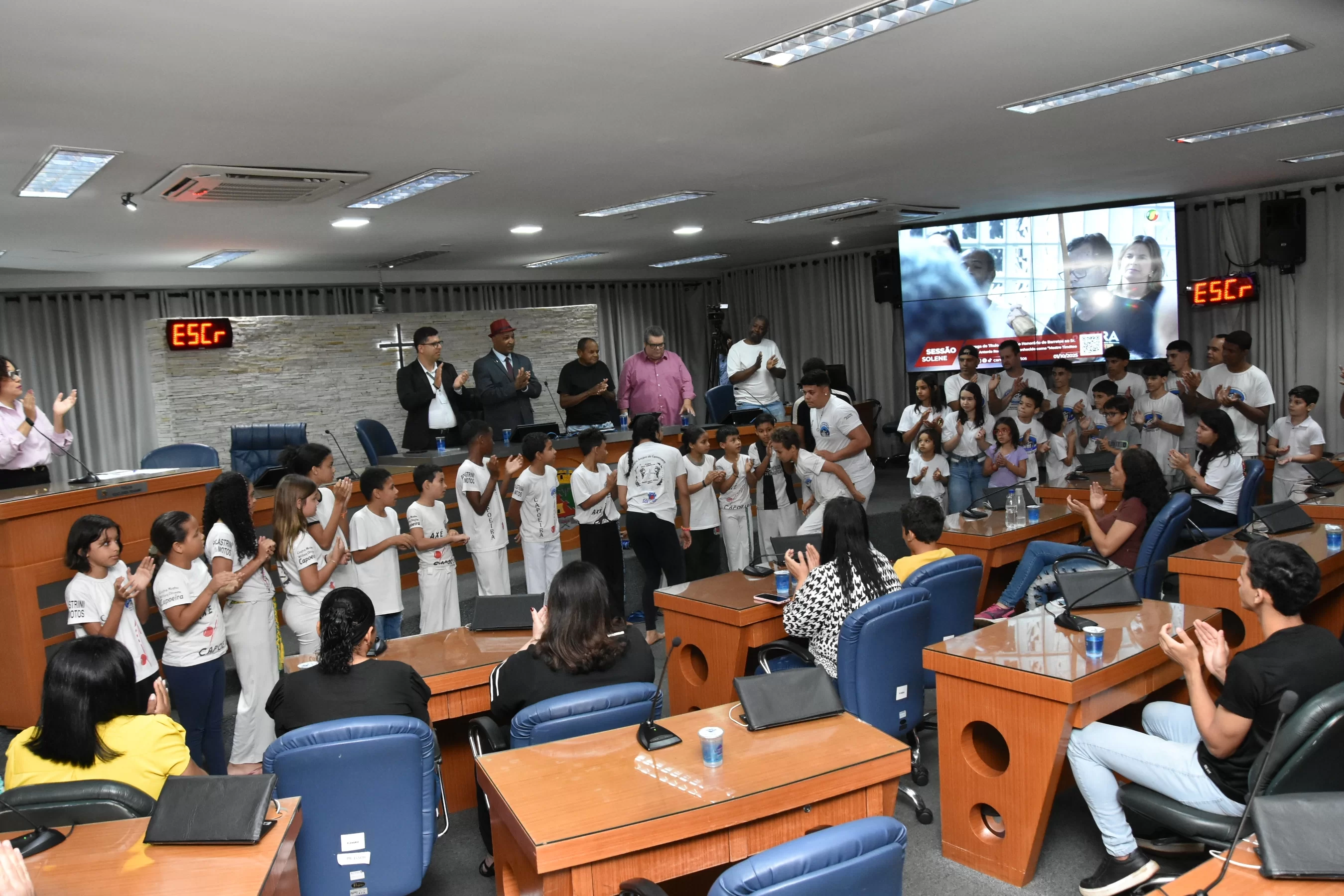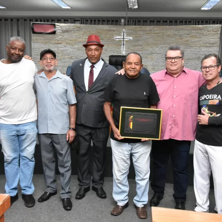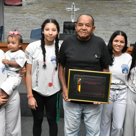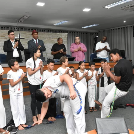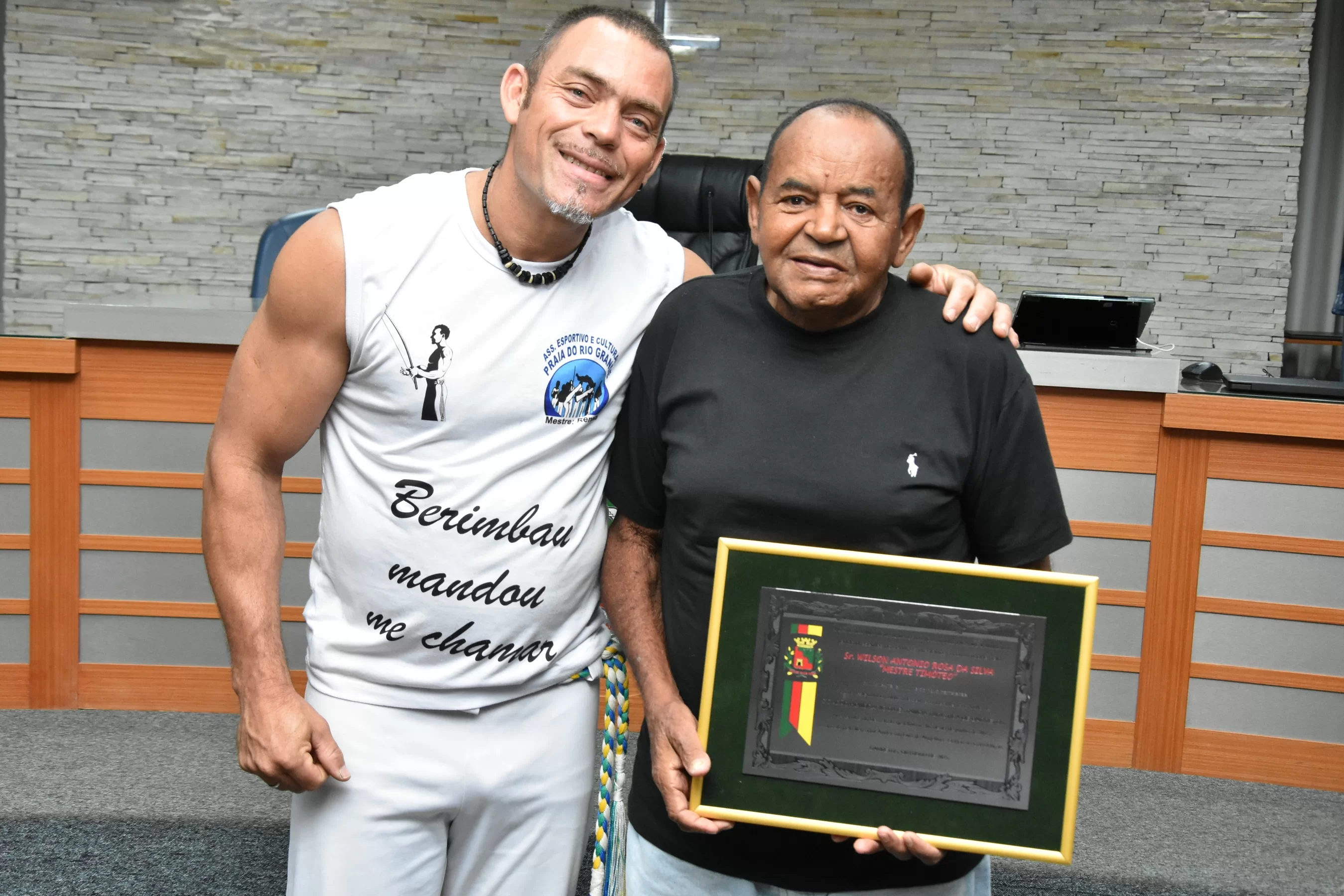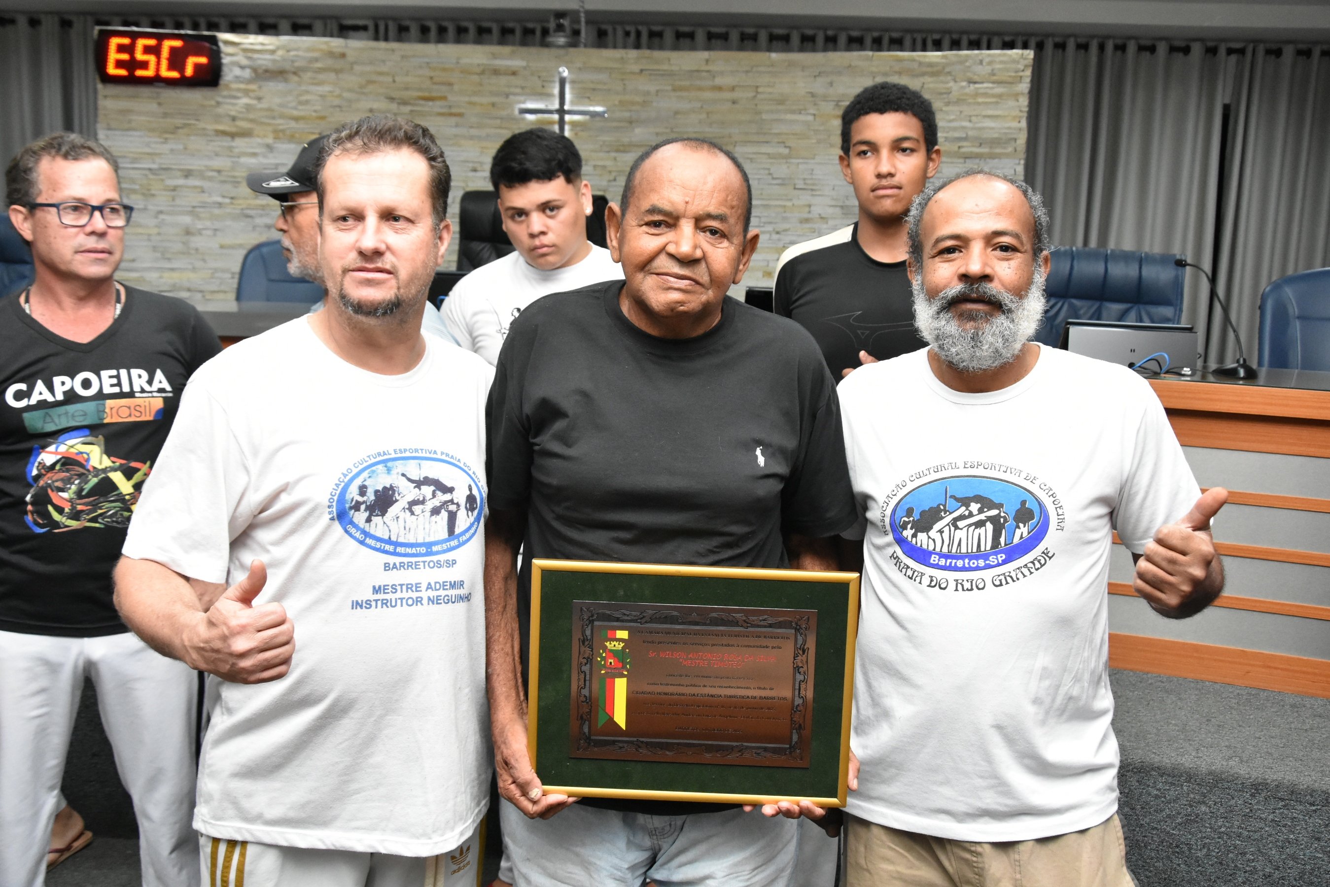 Familiares, amigos e vários alunos de capoeira (que fizeram uma linda apresentação) estiveram presentes à solenidade, que foi realizada no Plenário da Câmara Municipal.