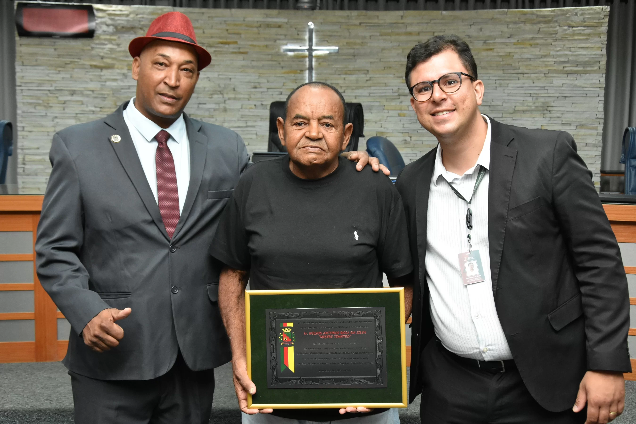 Fizeram parte da Mesa de Autoridades: o vereador proponente, Anderson Luiz de Angelino - Bodão (PODEMOS); o homenageado, Mestre Timóteo, João Batista Borges Júnior, Mestre Mano Velho, Willian Costa de Oliveira e Antonio Marcos "Mestre Macarrão". Os assessores parlamentares Daniel Luiz da Costa e Jefferson Martins Costa também estiveram presentes.