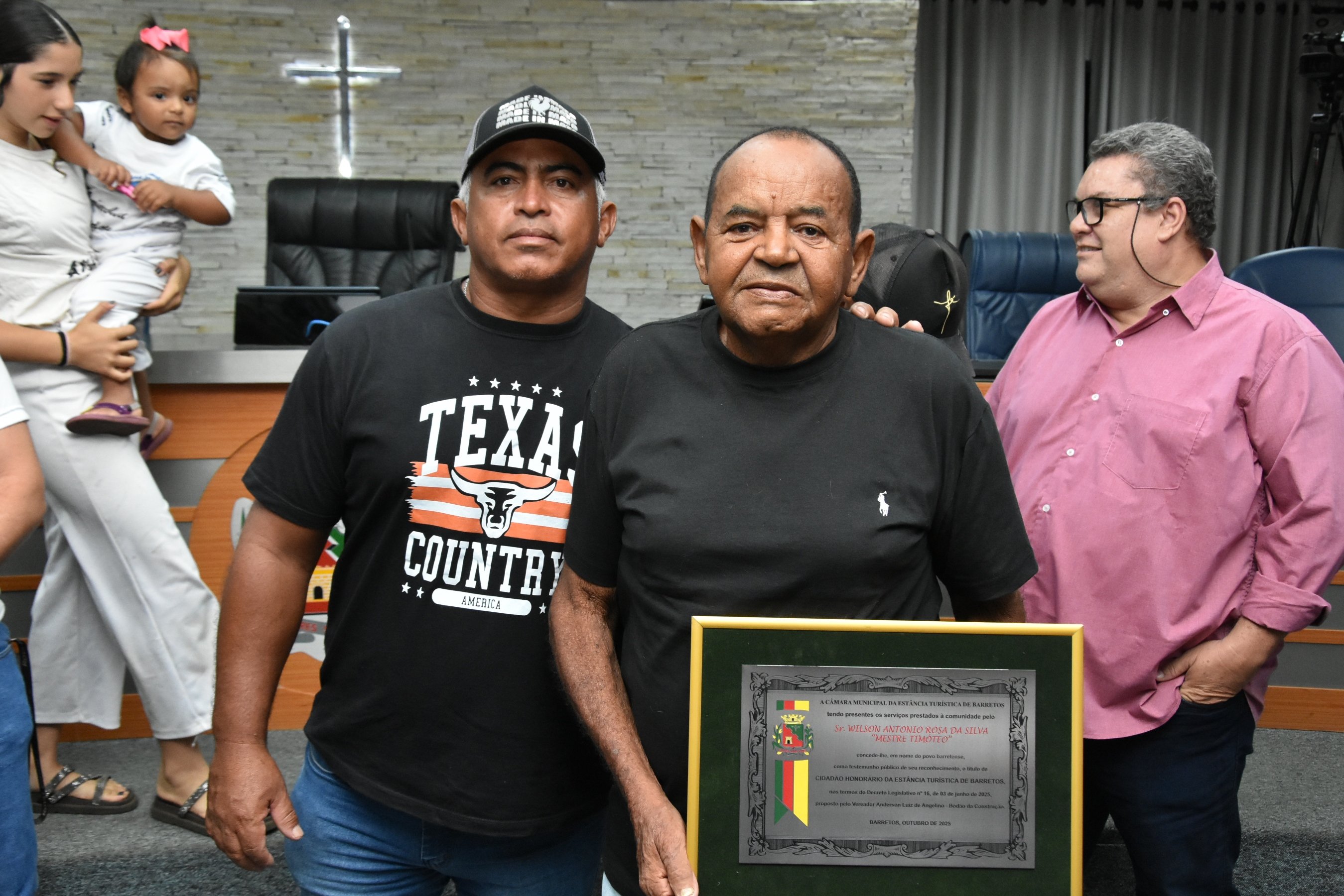 A Câmara Municipal de Barretos realizou no dia 1º de outubro (quarta-feira), às 19h, Sessão Solene para entrega do Título de Cidadão Honorário da Estância Turística de Barretos ao Sr. Wilson Antonio Rosa da Silva, conhecido como “Mestre Timóteo”.
