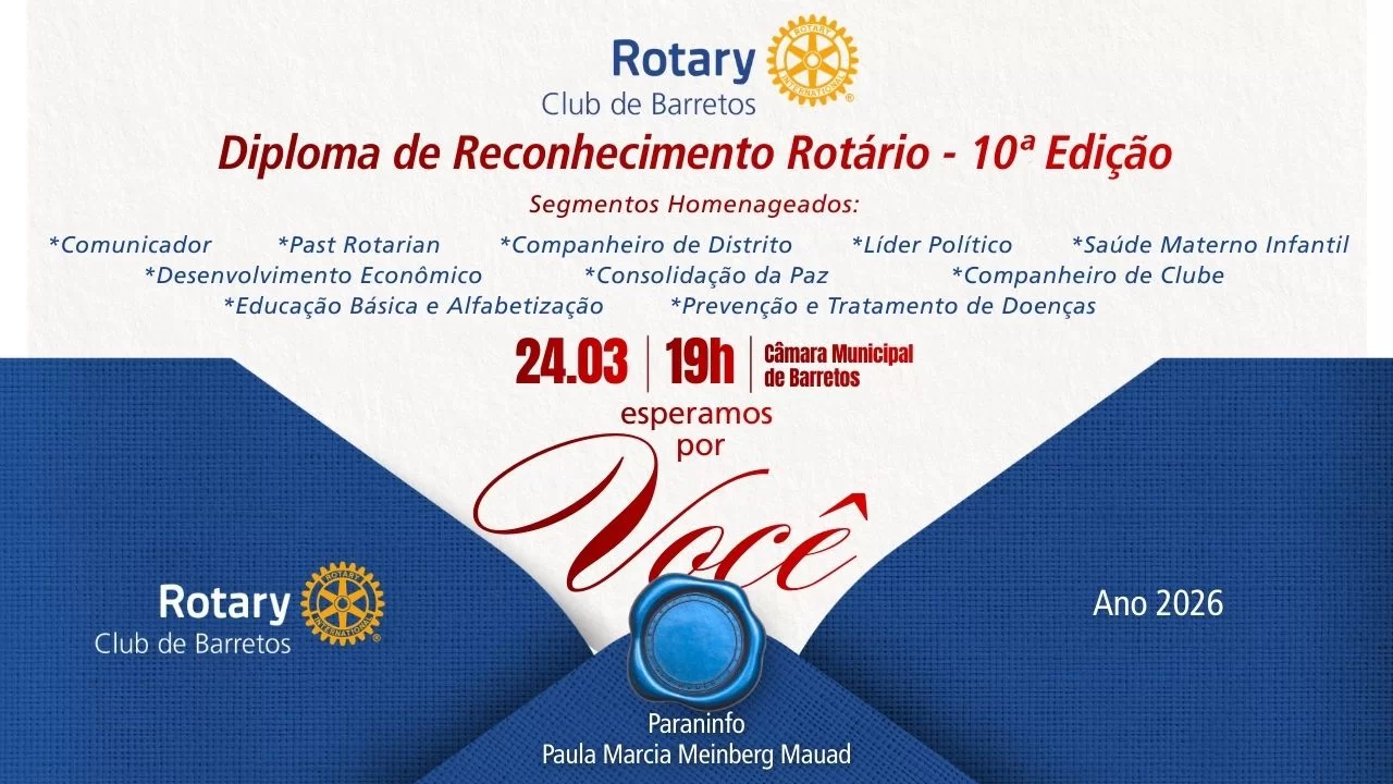 Sessão Solene em comemoração ao Dia do Rotariano acontecerá no dia 24 de março na Câmara