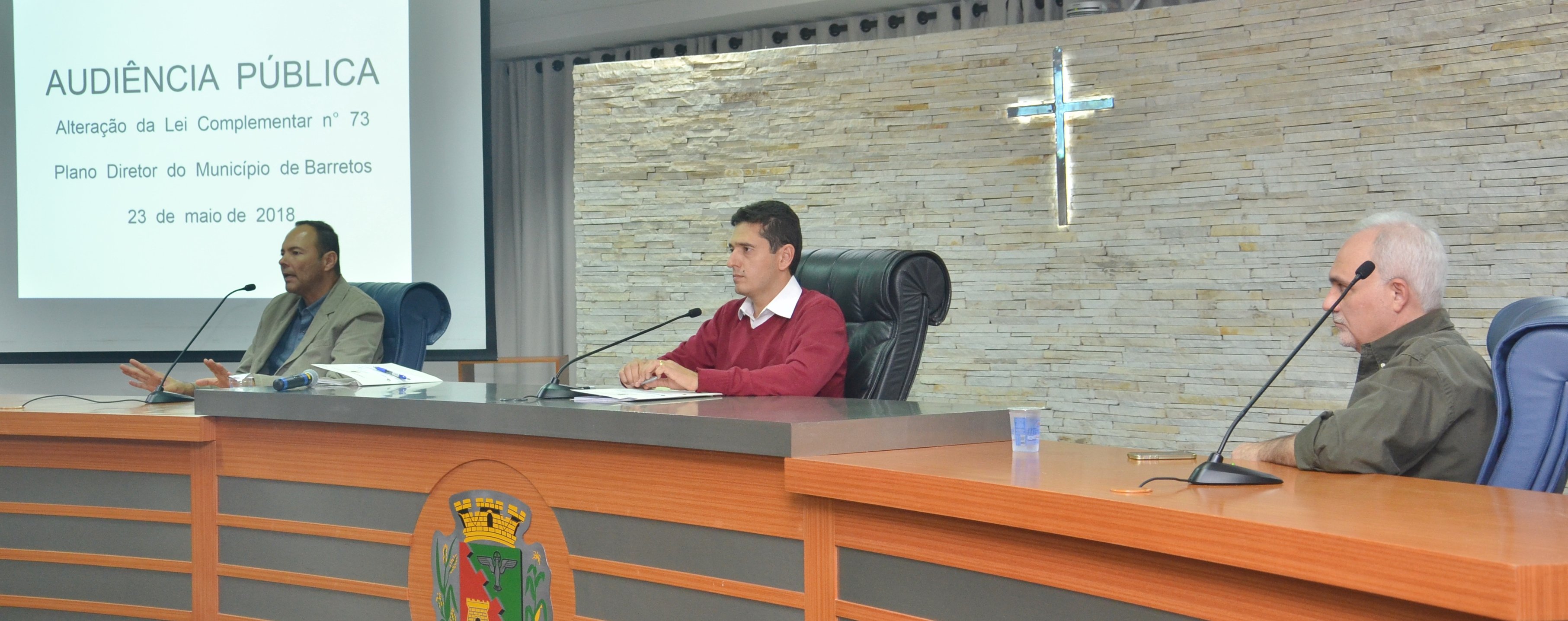 Nesta quarta (23) a Câmara Municipal realizou a Audiência Pública para análise e discussão de alterações no Plano Diretor de Barretos. As mudanças constam no Projeto de Lei Complementar nº19/2018, de autoria do Prefeito Municipal.
