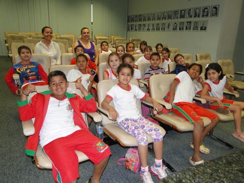 Os alunos do 2º ano, coordenados pela professora Elizangela Sanches Abrão e pela estagiária Marcela Martins, foi à primeira turma a visitar a Câmara Municipal.