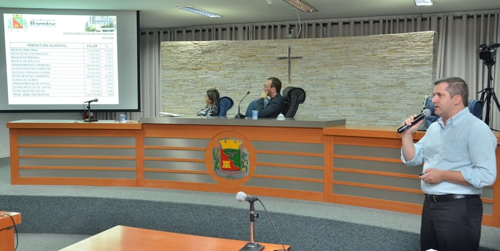 Durante a audiência, o Consultor Gaspar da Costa apresentou dados das receitas e despesas da Administração Municipal, com uma previsão de total geral das recreitas para 2016 em R$ 475.523.000,00 (quatrocentos e setenta e cinco milhões, quinhentos e vinte e três mil reais), incluindo autarquias e Câmara Municipal.