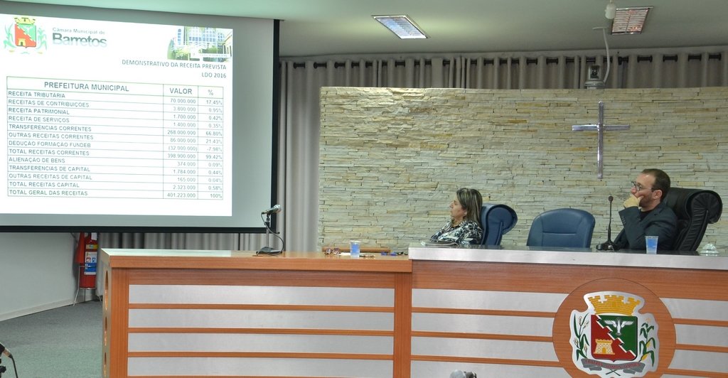 Aconteceu nesta terça-feira, 26, a Audiência Pública para discussão dos projetos referentes ao orçamento de Barretos. Foi analisado o Projeto de Lei nº 72/2015, que trata da Lei de Diretrizes Orçamentárias - LDO para o orçamento de 2016, e o Projeto de Lei nº 73/2015, que altera o Plano Plurianual - PPA, do Quadriênio 2014-2017.