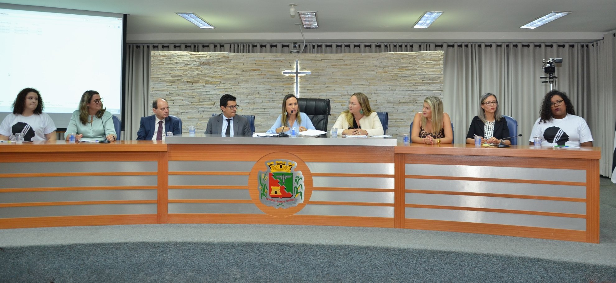 Fizeram parte da Mesa: o Delegado Titular da DDM (Delegacia de Defesa da Mulher) Dr. Marcos Eduardo Marques; o Delegado Assistente Seccional, Rafael Faria Domingos; a Defensora Pública, Daniela Sanchez Ferreira; a Secretária Municipal de Assistência Social e Desenvolvimento Humano, Kelly de Brito Coelho; a Presidente da Comissão da Mulher Advogada da OAB, Dr.ª Jacilene Girardi; a representante do CRAM (Centro de Referência de Atendimento à Mulher), Danielle Zanon; a representante do Fórum Popular de Saúde, Débora Cristina Teixeira e a representante do Coletivo "Minha Voz", Paula de Oliveira Medeiros.