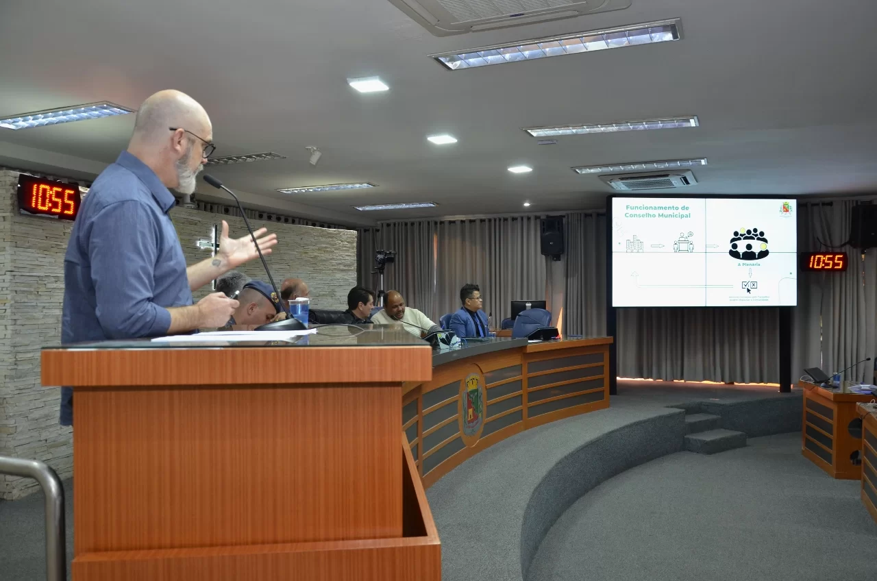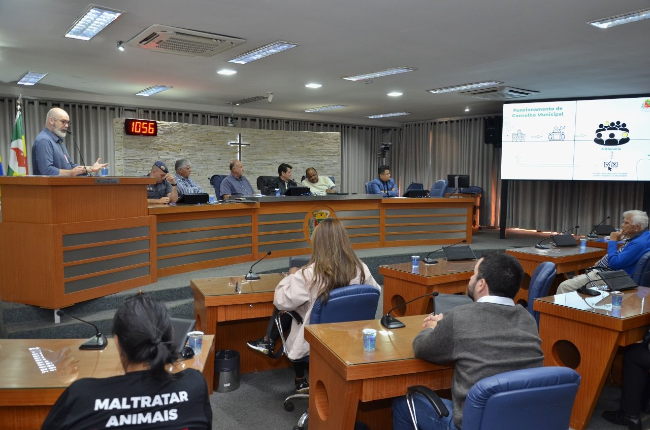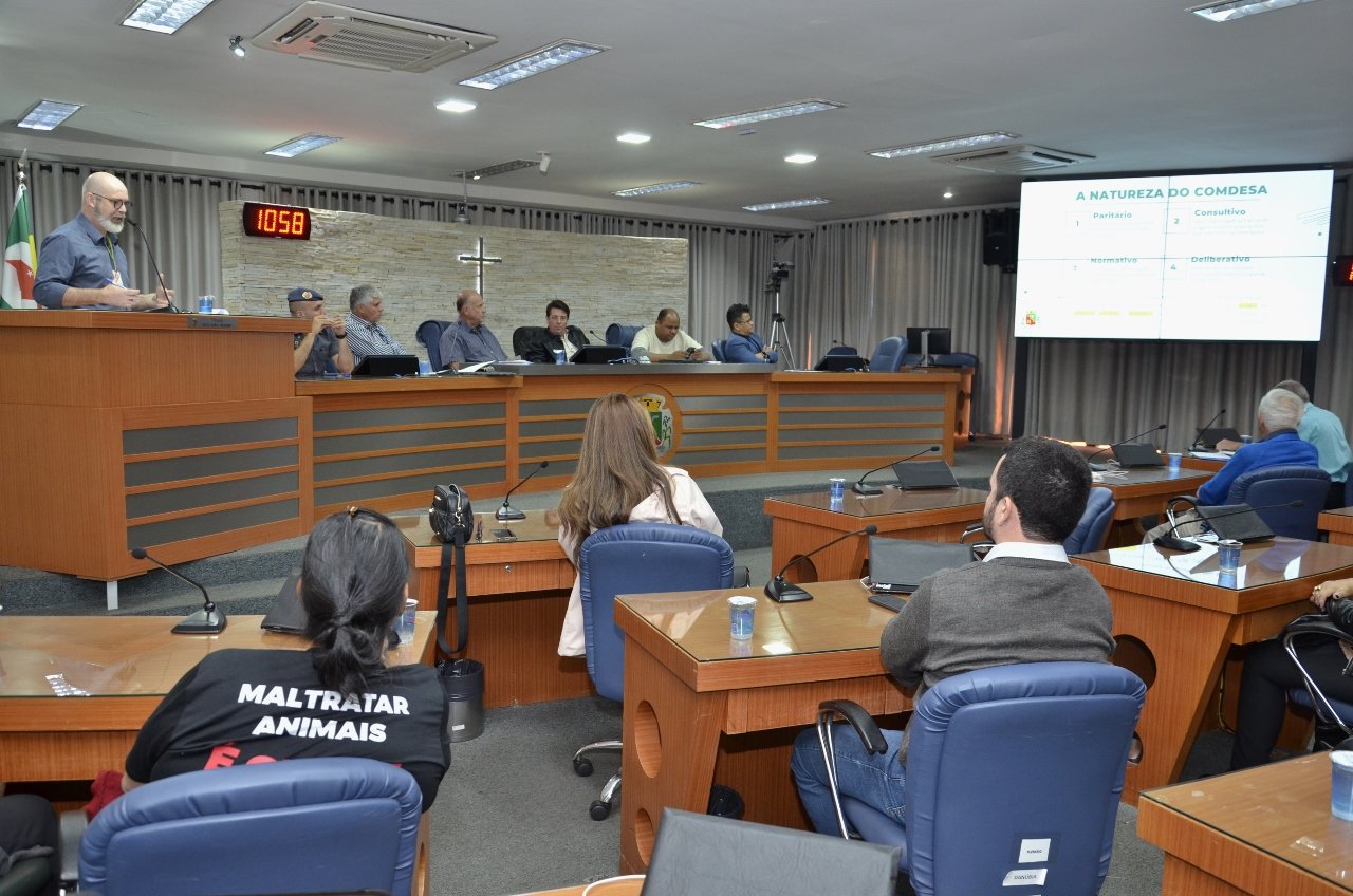 O biólogo da Secretaria Municipal de Agricultura, Meio Ambiente e Sustentabilidade, Rafael Claassen Damian, apresentou aos presentes um resumo da proposta de como deverá funcionar o Conselho Municipal de Defesa e Saúde Animal. De acordo com o documento, o COMDESA será um conselho paritário (metade representantes do governo, metade da sociedade civil), terá caráter consultivo, normativo e deliberativo ( pode discutir e propor políticas públicas, definir diretrizes e regras na sua área de atuação) e deverá atuar de forma opinatória, julgando e debatendo temas que lhe são apresentados.
