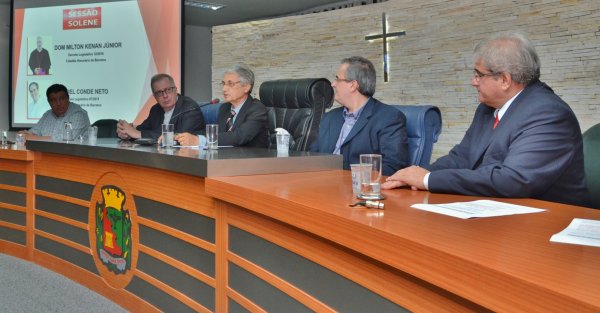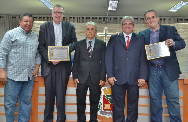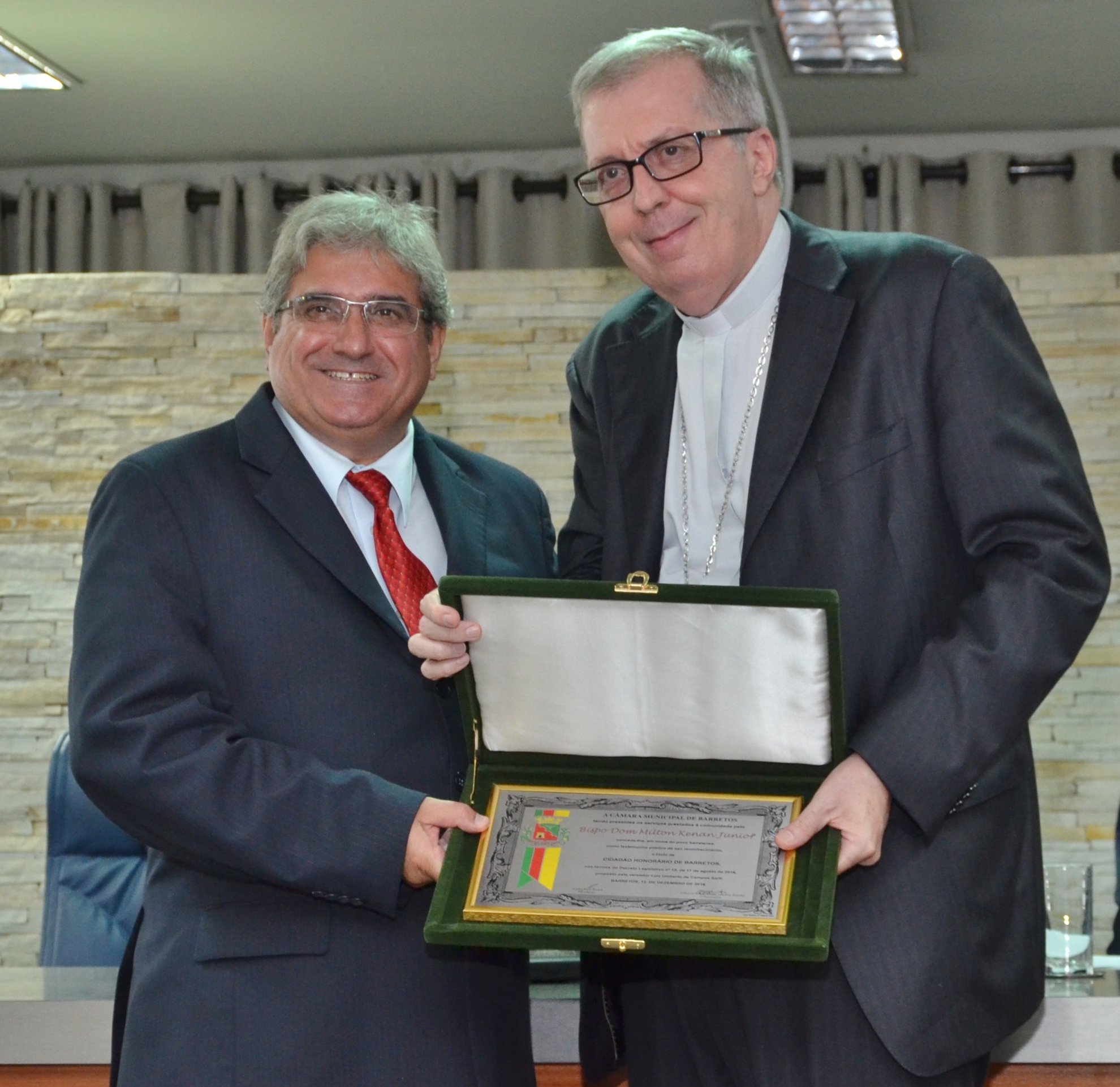 O Bispo Dom Milton Kenan Júnior e o empresário Manoel Conde Neto foram homenageados com os Títulos de Cidadão Honorário de Barretos nesta terça-feira, 13, durante Sessão Solene na Câmara Municipal.