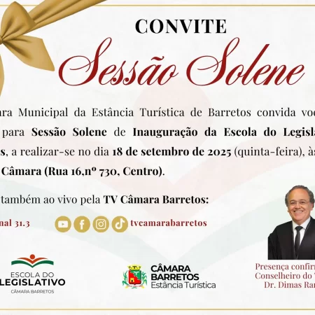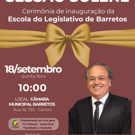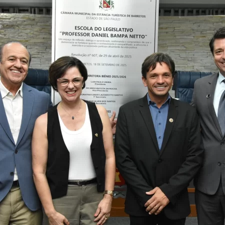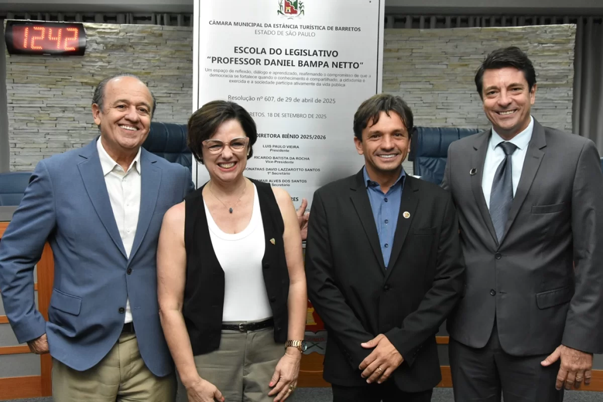 A Câmara Municipal da Estância Turística de Barretos realizou na manhã desta quinta-feira (18/09), Sessão Solene Comemorativa para inauguração oficial da Escola do Legislativo, que recebeu o nome de "Professor Daniel Bampa Netto", em homenagem ao barretense reconhecido por sua trajetória de participação comunitária e compromisso com a cidade.