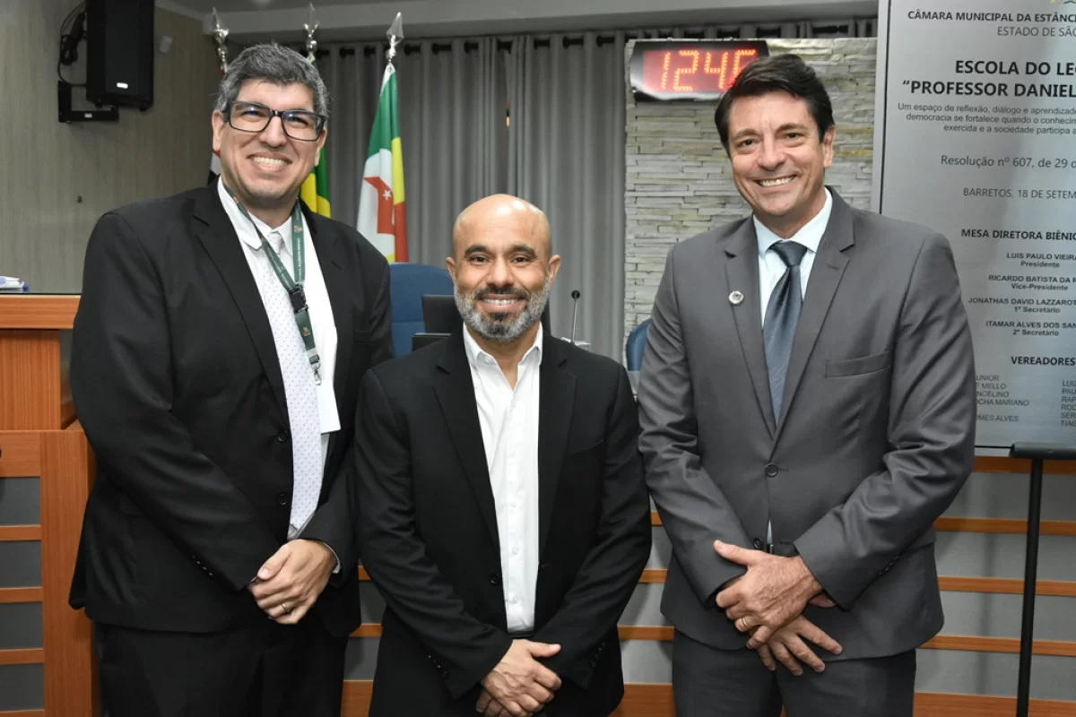 A solenidade contou com a presença do Conselheiro Vice-Presidente do Tribunal de Contas do Estado de São Paulo, Dr. Dimas Ramalho, do Conselheiro Dr. Maxwell Borges de Moura e do Procurador do Ministério Público de Contas do Estado de São Paulo, Dr. Thiago Pinheiro Lima. A participação dessas autoridades reforçou o caráter técnico e institucional do evento, destacando a importância da qualificação e do controle social para o fortalecimento das políticas públicas.