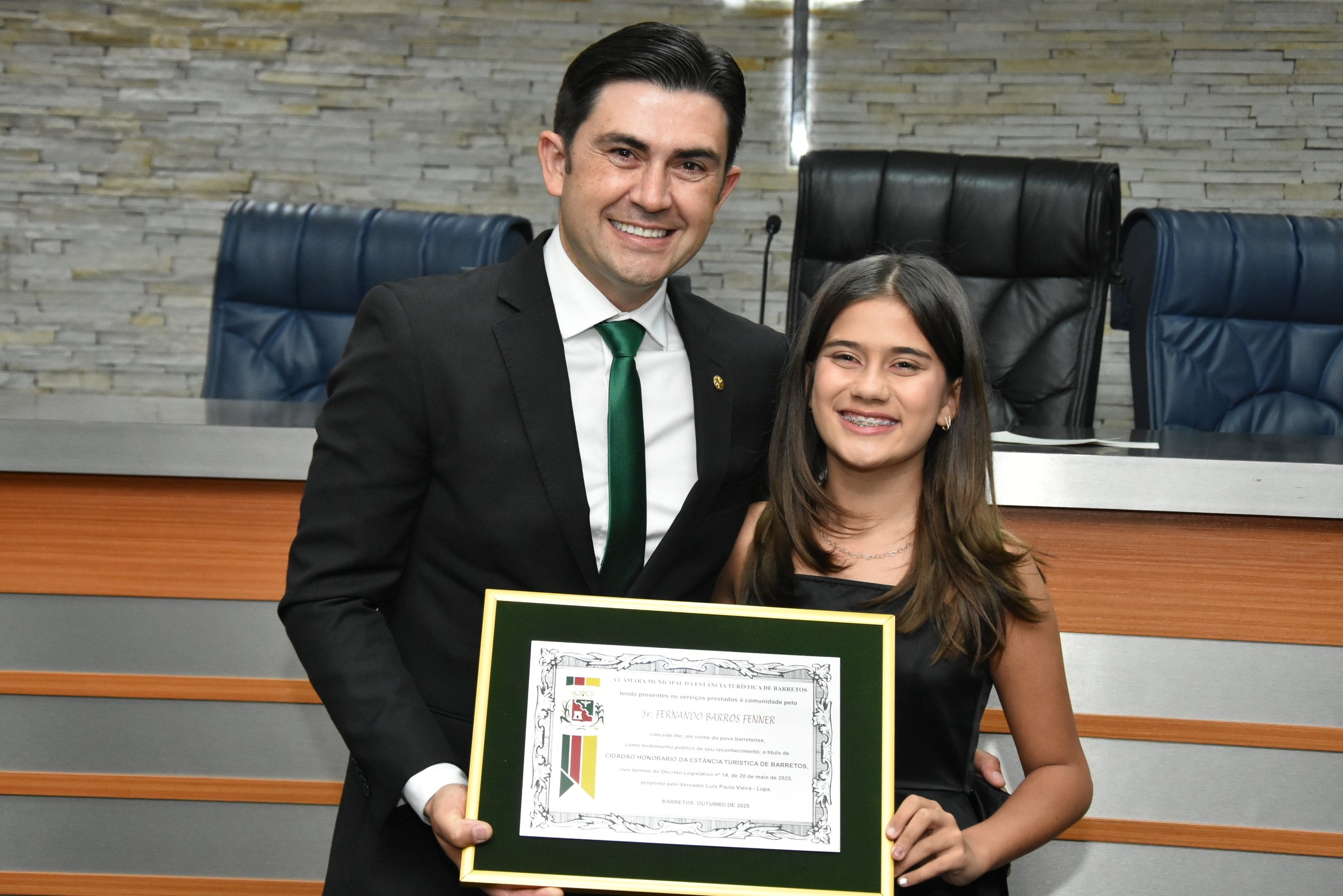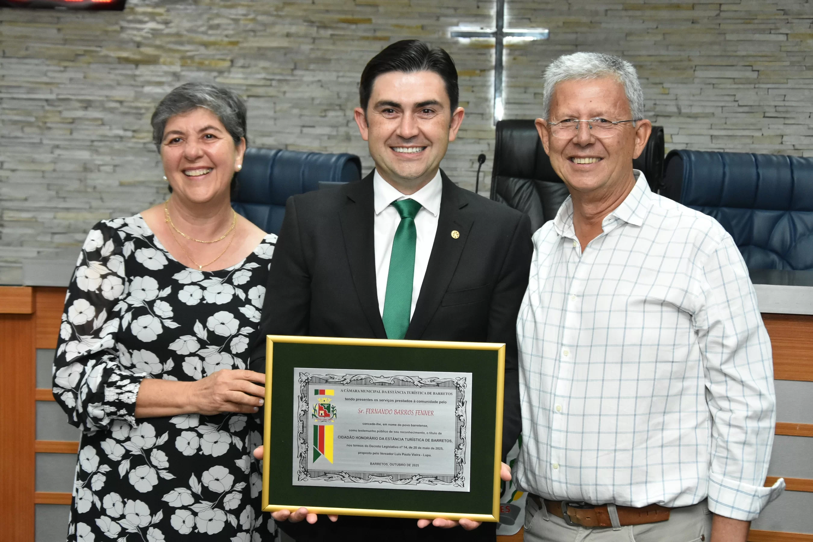 Entrega do Título de Cidadão Honorário da Estância Turística de Barretos aconteceu no dia 07 de outubro, às 19h, na Câmara e foi proposta pelo vereador Luis Paulo Vieira - Lupa