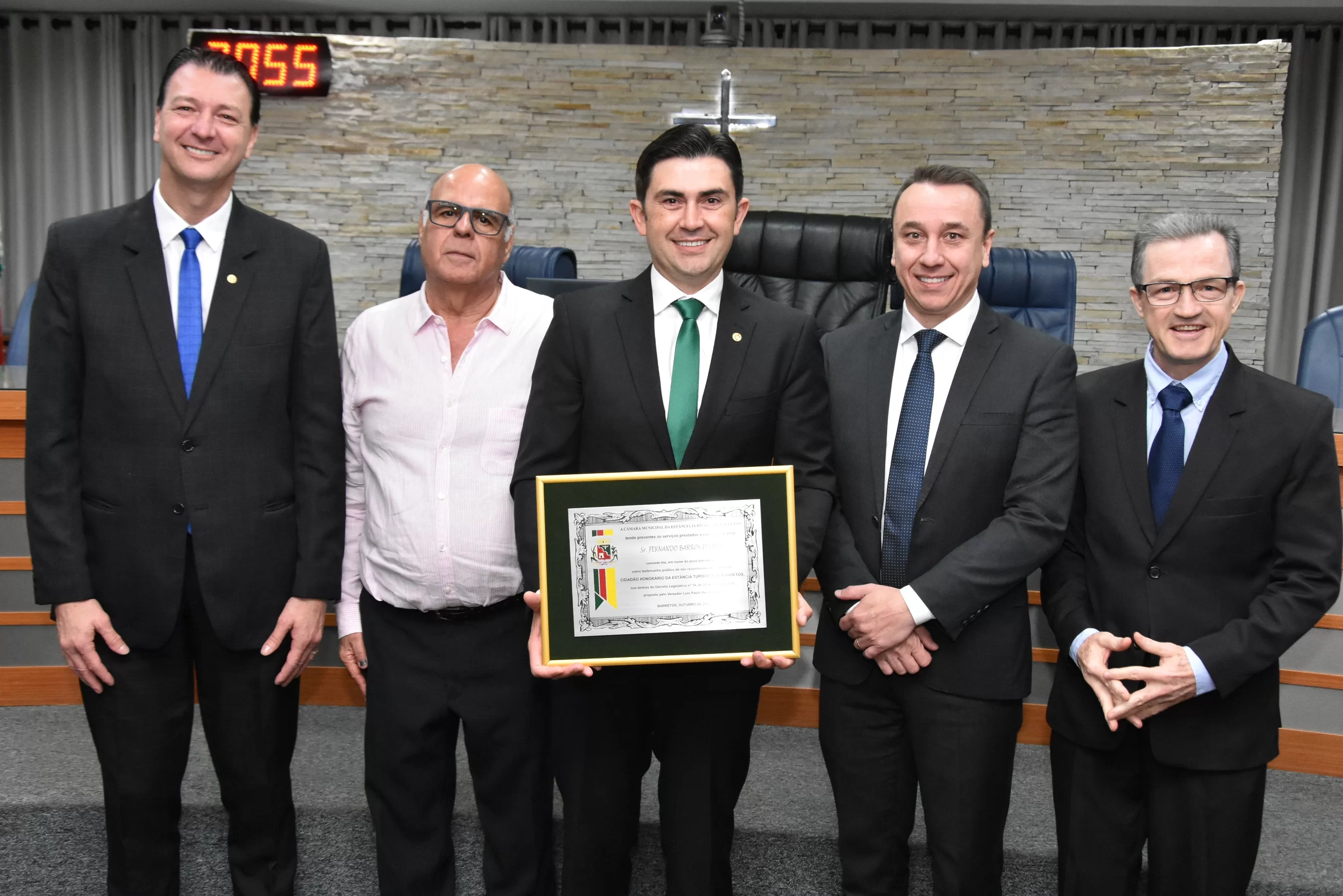 O Presidente do SICREDI Aliança, SR. FERNANDO BARROS FENNER, recebeu o Título de Cidadão Honorário da Estância Turística de Barretos em Sessão Solene realizada na noite de terça-feira (07 de outubro), na Câmara.