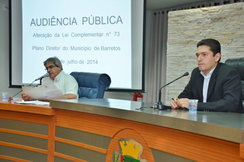 A audiência, que teve transmissão ao vivo pela TV Câmara Barretos - canal digital 64.1 - e pelo site, foi conduzida pelo Presidente da Casa, vereador Leandro Anastácio (SDD). O Secretário de Planejamento da Prefeitura, Ronaldo Luiz de Ávila Câmara, a Diretora de Planejamento e Desenvolvimento de Projetos, Patrícia Bolsonaro Causin e os vereadores Cláudio da Santa Casa (PPS), Dr.ª Gláucia Delegada (PMDB), Kapetinha (SDD) e Dr. Otávio (DEM) também acompanharam a discussão.