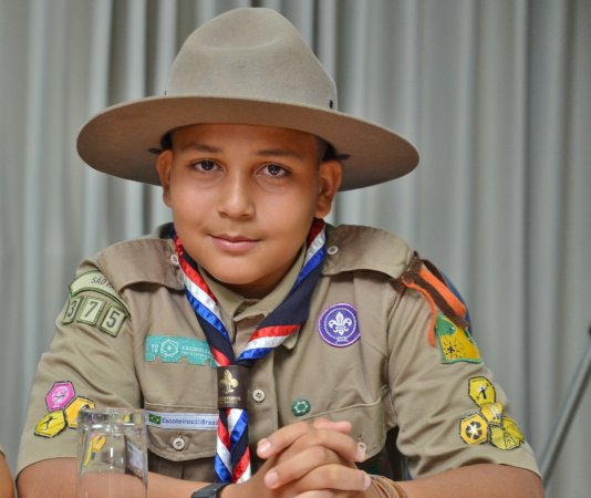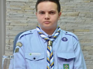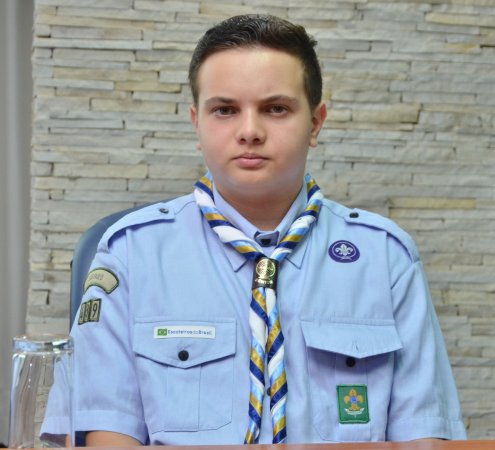 CATEGORIA ESCOTEIRO: Gabriel Silveira Garcia Silvestre (13 anos). Está no grupo desde 2015. Ajuda os outros escoteiros de forma honesta e sensata.