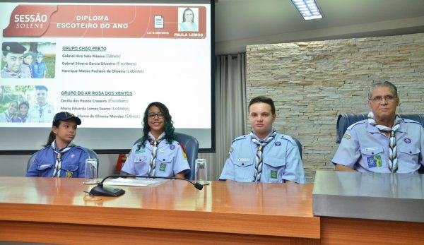 A solenidade foi conduzida pela vereadora Paula Lemos (PSB) e contou com a presença dos diretores Wolinski Maruco (grupo de escoteiro Chão Preto) e José Batista Lopes (grupo de escoteiro do ar Rosa dos Ventos). Familiares e amigos dos homenageados também prestigiaram a Sessão Solene.