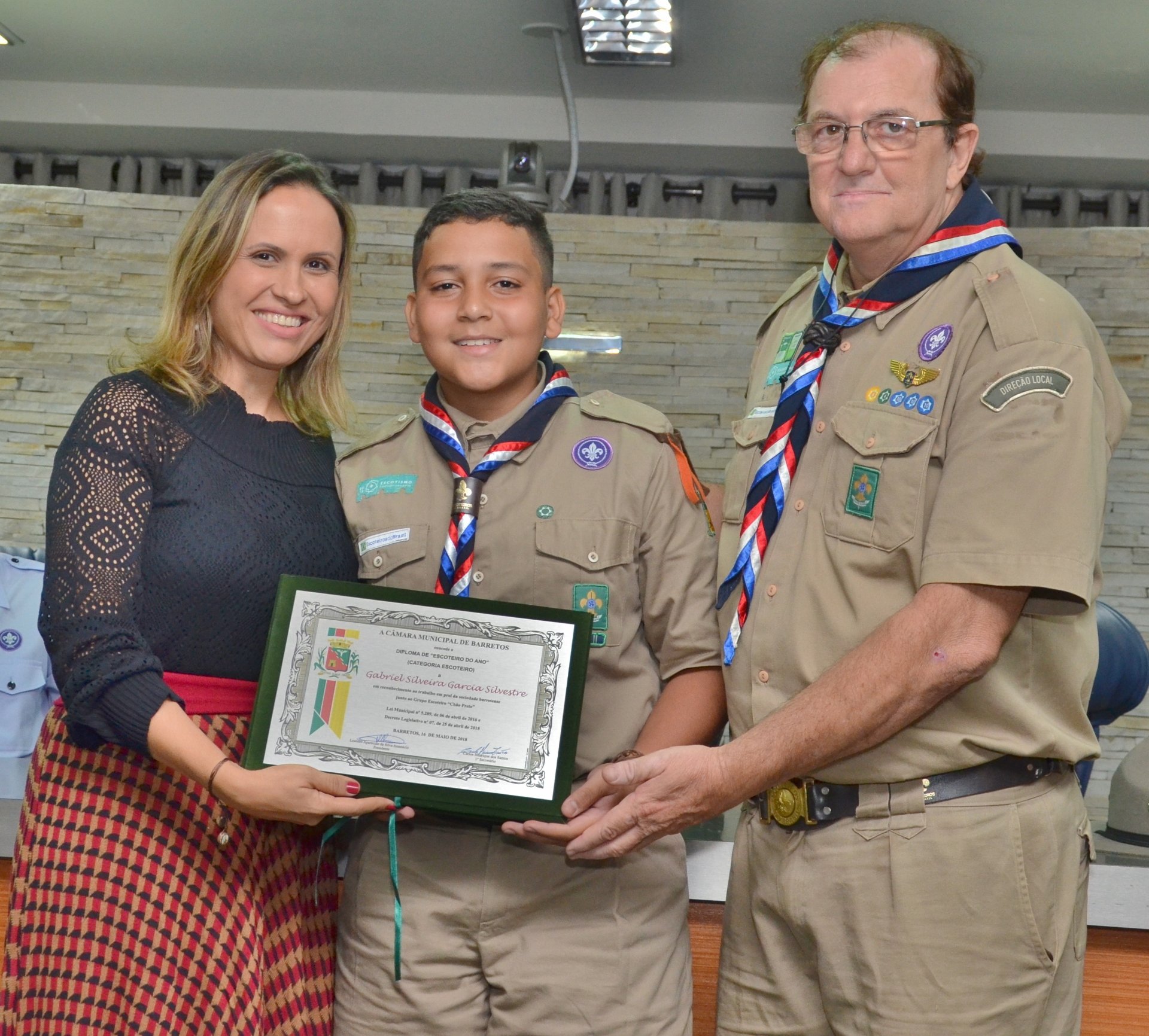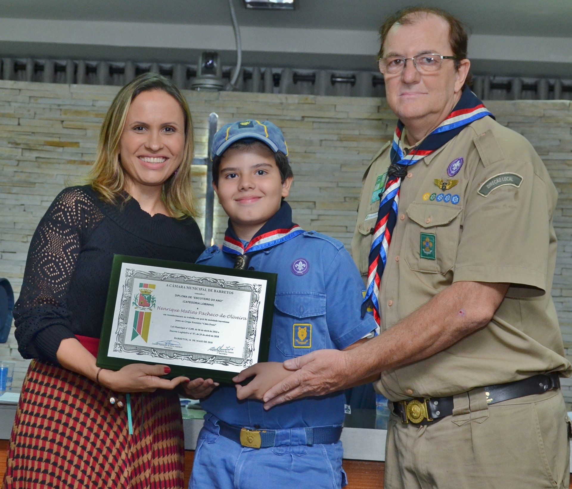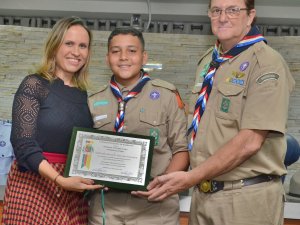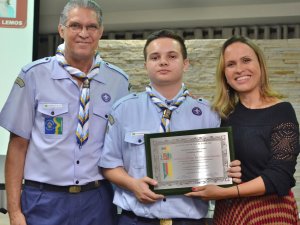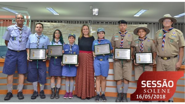 Aconteceu na noite desta quarta-feira, 16 de maio, no Plenário da Câmara Municipal, a Sessão Solene para entrega dos Diplomas de Escoteiro do Ano. Seis jovens escoteiros foram homenageados em 2018.