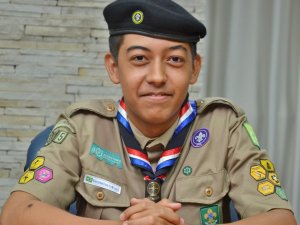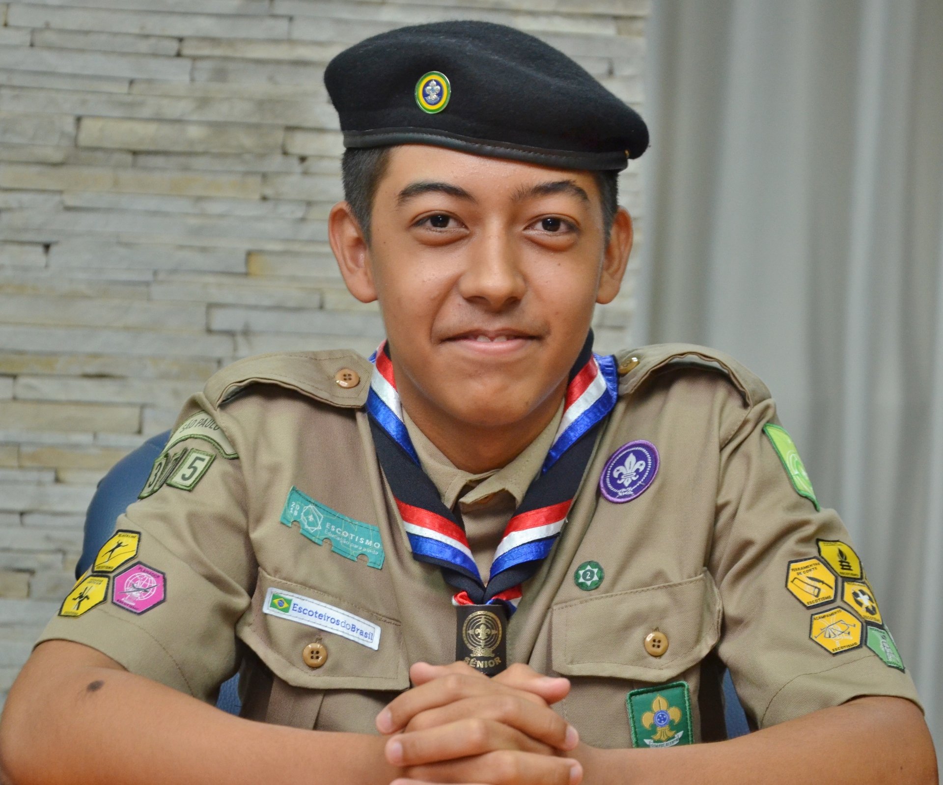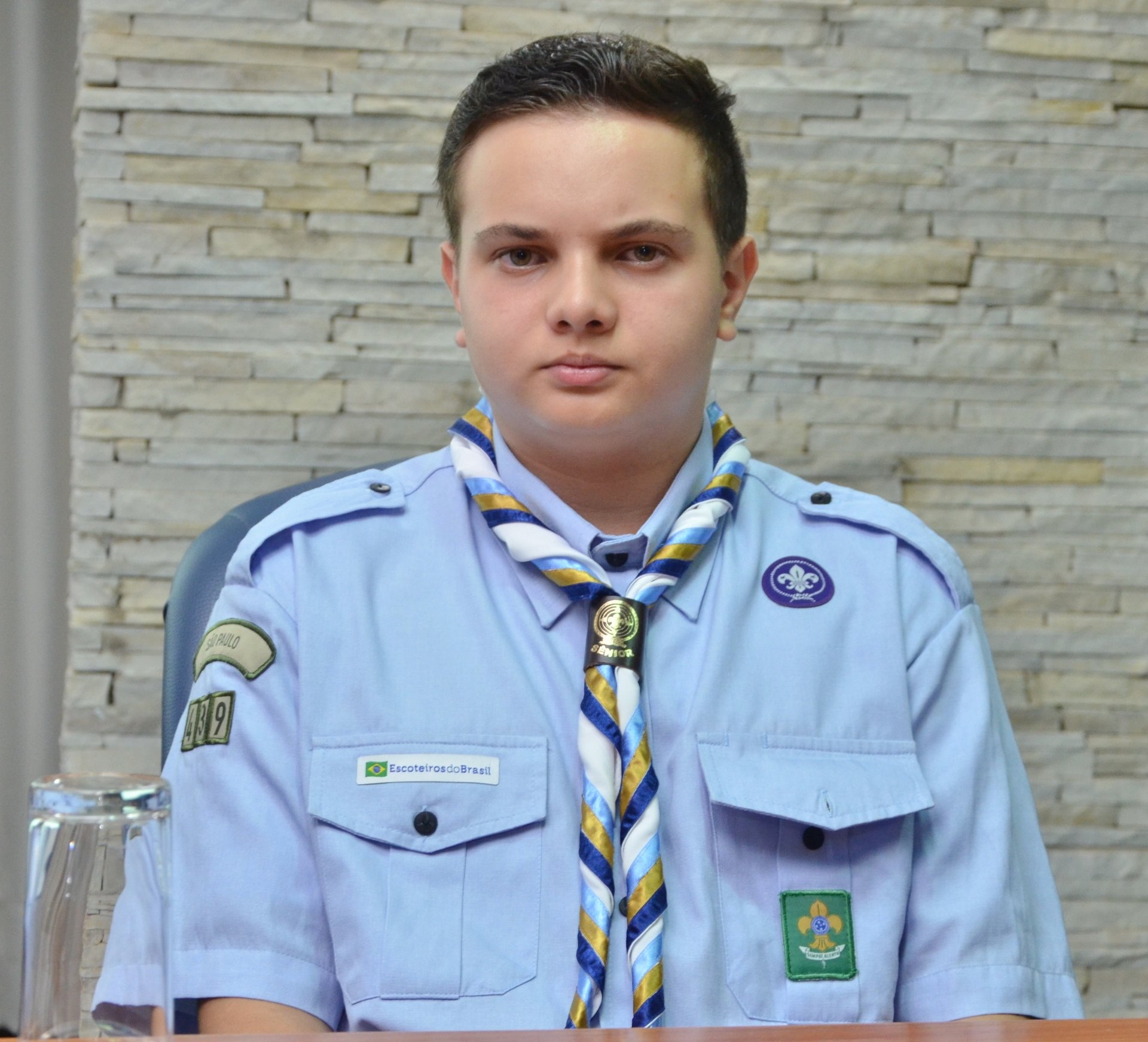 CATEGORIA SÊNIOR: Gabriel Hiro Sato Ribeiro (15 anos). Ajudou os seus membros de forma honesta e sensata e teve várias conquistas enquanto esteve no ramo Escoteiro.