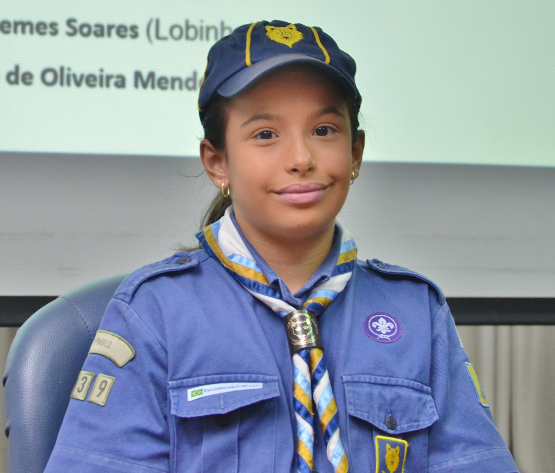 CATEGORIA LOBINHO: Maria Eduarda Lemes Soares (10 anos). Desde que entrou no movimento escoteiro em 2017, vêm se destacando e progredindo nos ensinamentos e nas atividades.