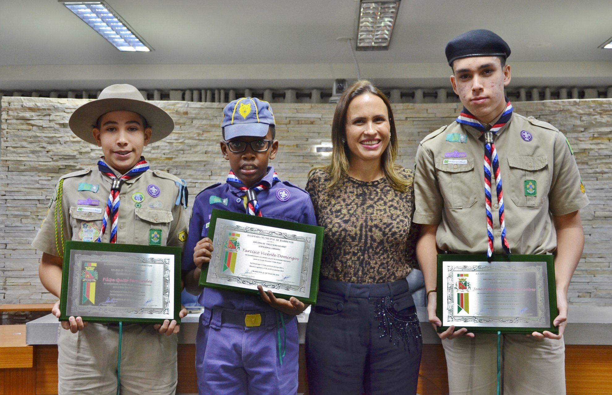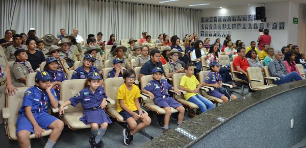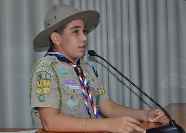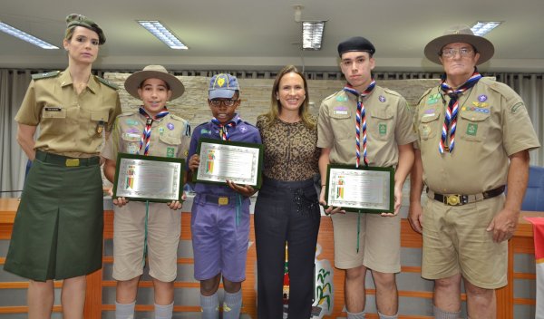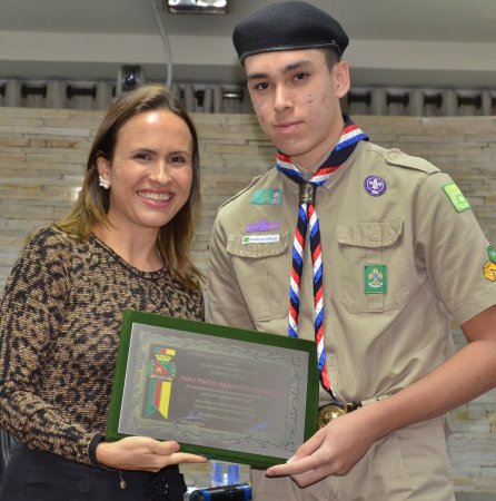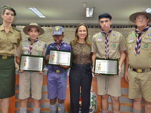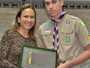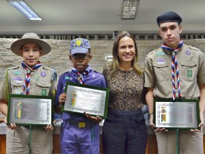 Três jovens escoteiros foram homenageados; TV Câmara transmitiu solenidade em tempo real. ASSISTA AO VÍDEO E VEJA AS FOTOS