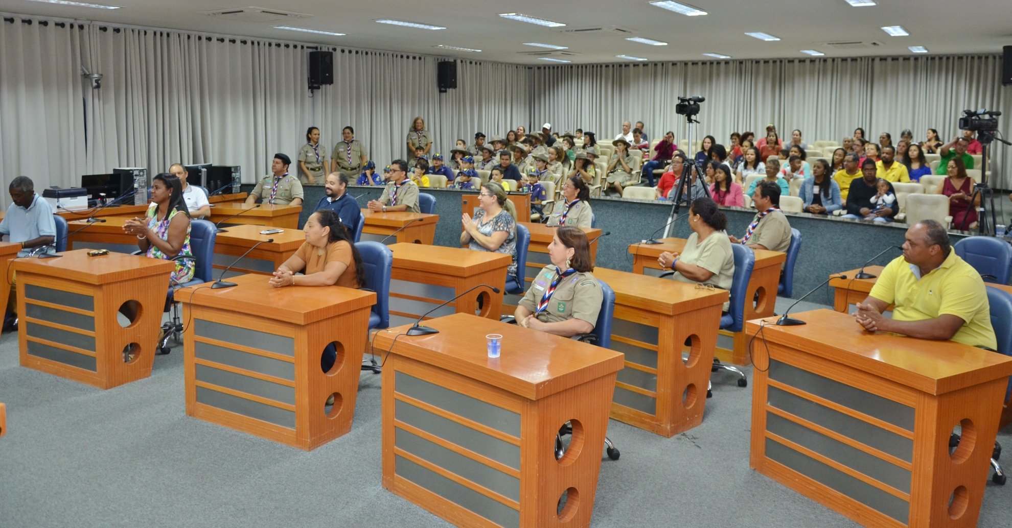 Autoridades, familiares, amigos dos escoteiros compareceram à Câmara para acompanhar de perto as homenagens. A solenidade foi conduzida pela vereadora Paula Lemos (PSB) e contou com a presença dos vereadores