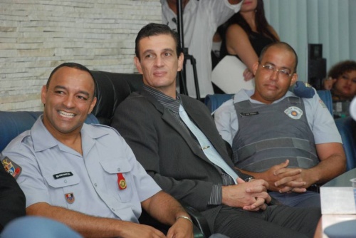 Aconteceu na noite da última sexta-feira, dia 11, na Câmara Municipal de Barretos, a sessão solene de entrega de títulos de cidadania a dois policiais militares que servem na cidade. O soldado Antonio Marcos Rocha Mariano recebeu Título de Cidadão Honorário de Barretos e o soldado Fábio Silva de Almeida recebeu Título de Cidadão Benemérito, ambos entregues por força de decreto legislativo proposto pelo vereador Aparecido Cipriano. Conduzida pelo vereador Juninho Leite, presidente da Câmara Municipal, a sessão solene contou com a presença de autoridades, entre elas os juízes de direito Luciano de Oliveira Silva e Fernanda Vasques, além do Comandante do 33º Batalhão de Polícia Militar, Tenente Coronel Sílvio Mendonça. A noite foi marcada por muita emoção, o discurso do vereador Cipriano, pontuado por vídeo com a história dos homenageados e destaque a suas atuações comunitárias, levou os policiais às lágrimas.