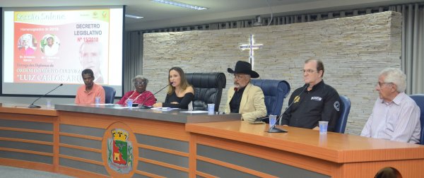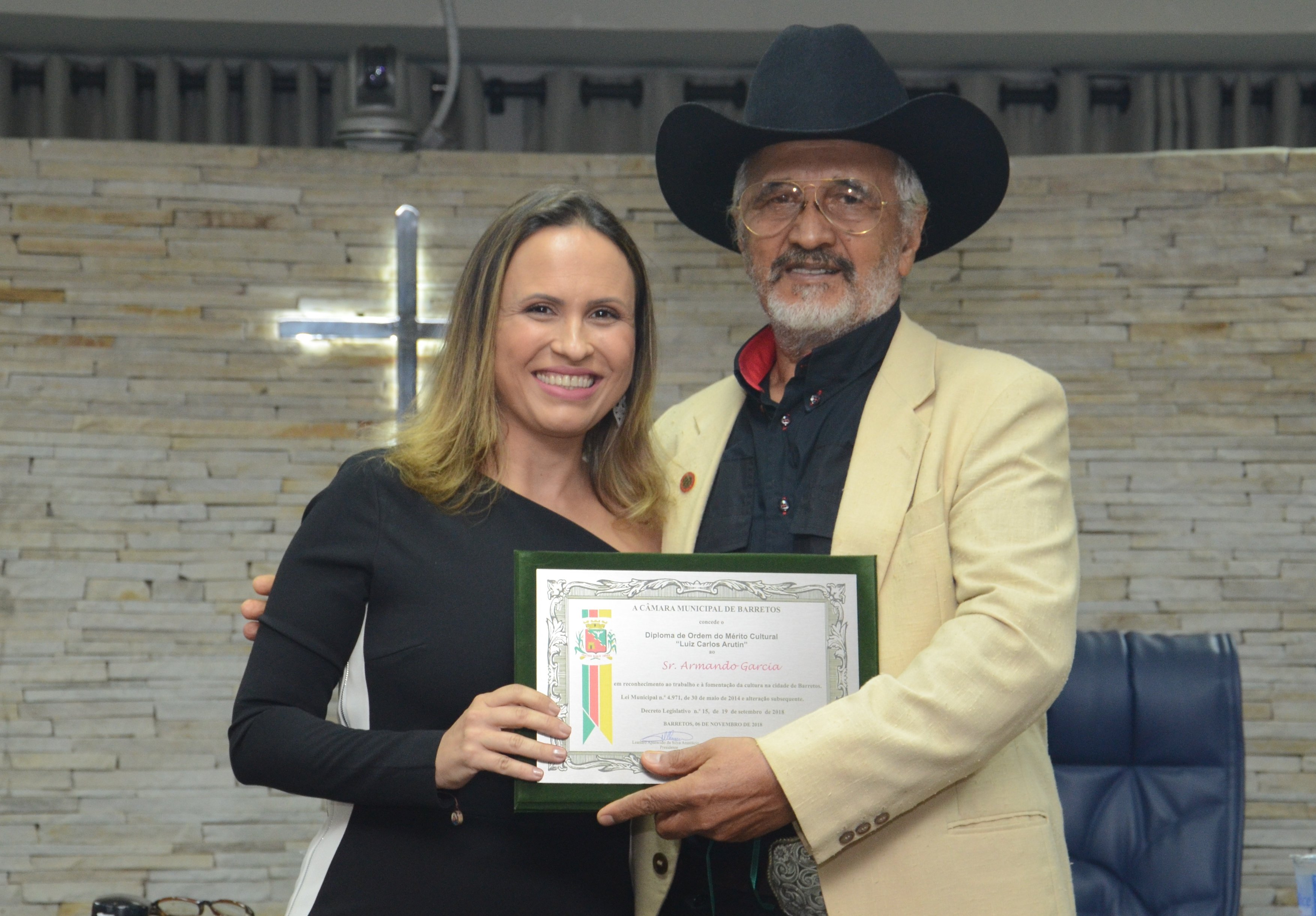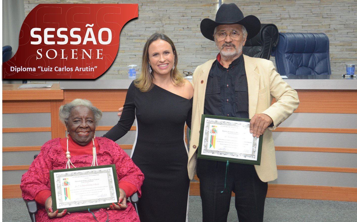 Na noite desta terça-feira, 06 de novembro, a Câmara Muncipal realizou Sessão Solene para entrega dos Diplomas de Ordem do Mérito Cultural 'Luiz Carlos Arutin'. As homenagens foram concedidas durante Sessão Solene à Srª Liberalina Silva e ao Sr. Armando Garcia,
