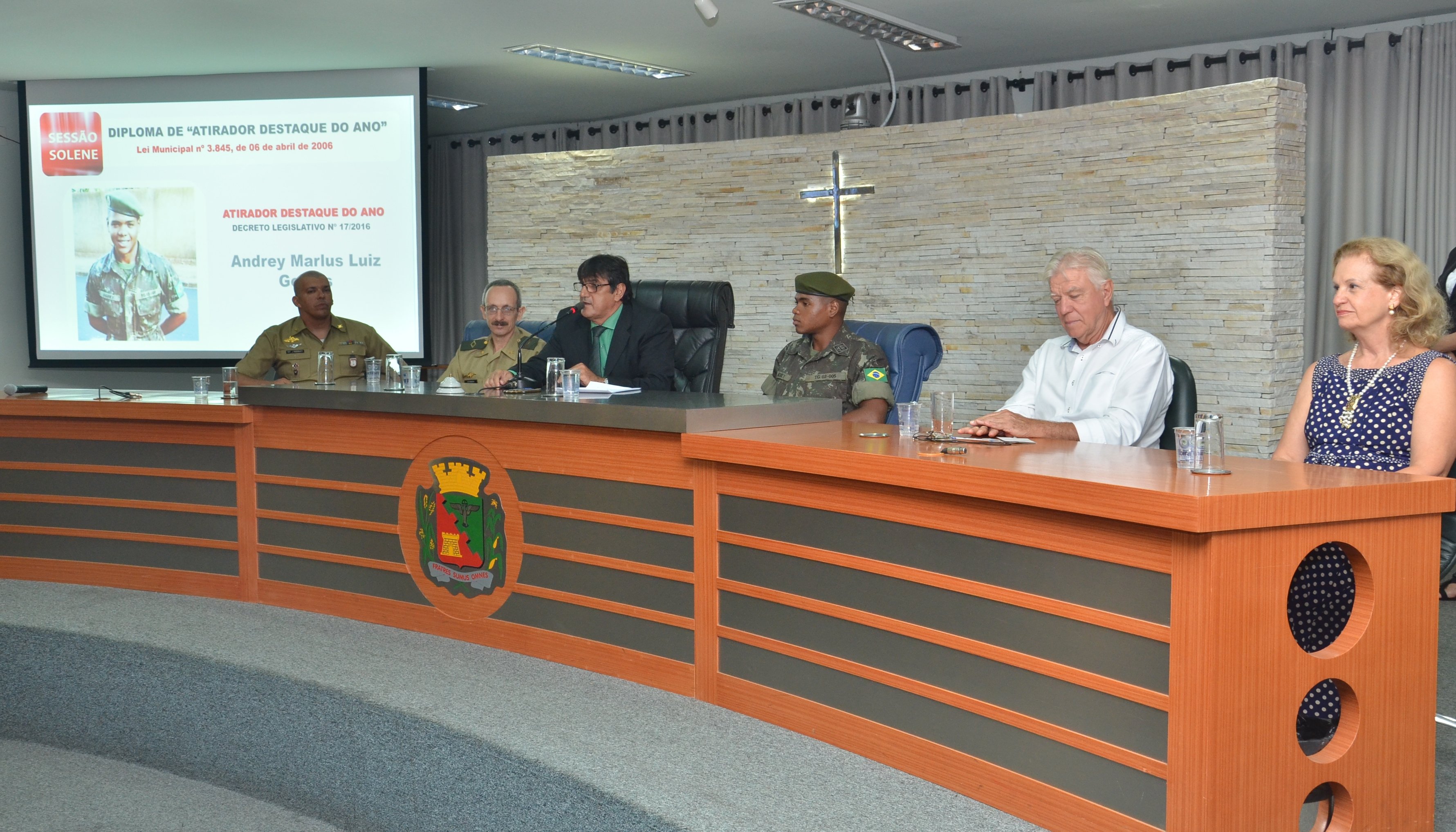 O jovem Andrey Marlus Luiz Gomes recebeu o Diploma de Atirador Destaque do Ano 2016, nesta terça-feira, 6; a entrega aconteceu durante Sessão Solene realizada na Câmara Municipal.