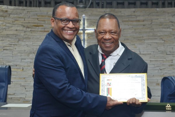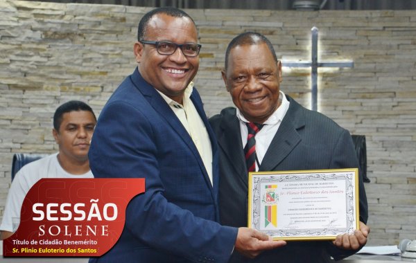 Na noite desta quinta, a Câmara Municipal fez a entrega do Título de Cidadão Benemérito de Barretos ao Sr. Plínio Euloterio dos Santos, esportista reconhecido pelo trabalho dedicado ao futebol no Município. A homenagem aconteceu durante Sessão Solene.