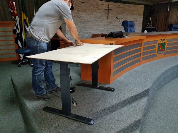Nesta quarta-feira, 18, a Mesa Diretora da Câmara Municipal finalizou a instalação da nova tribuna adaptada do plenário de sessões. O dispositivo foi planejado com sistema de regulagem de altura para permitir que seja utilizado por pessoas com deficiência.