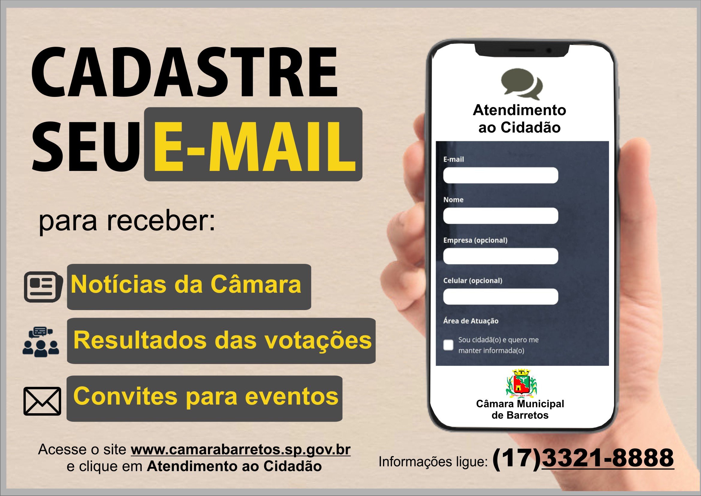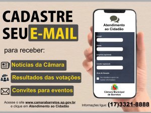 Desde o início do mês, a Câmara de Barretos passou a disponibilizar no próprio site o serviço de disparo automático de e-mails para manter os cidadãos informados sobre tudo o que acontece no Poder Legislativo.