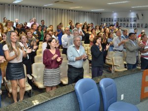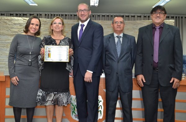 A Diretora Social do Lar da Criança "Legionários de Esmael", Matildes Cristina Modenes Felthes, recebeu na noite desta terça, 1º de junho, o Título de Cidadã Benemérita de Barretos. A entrega foi realizada durante Sessão Solene na Câmara Municipal.