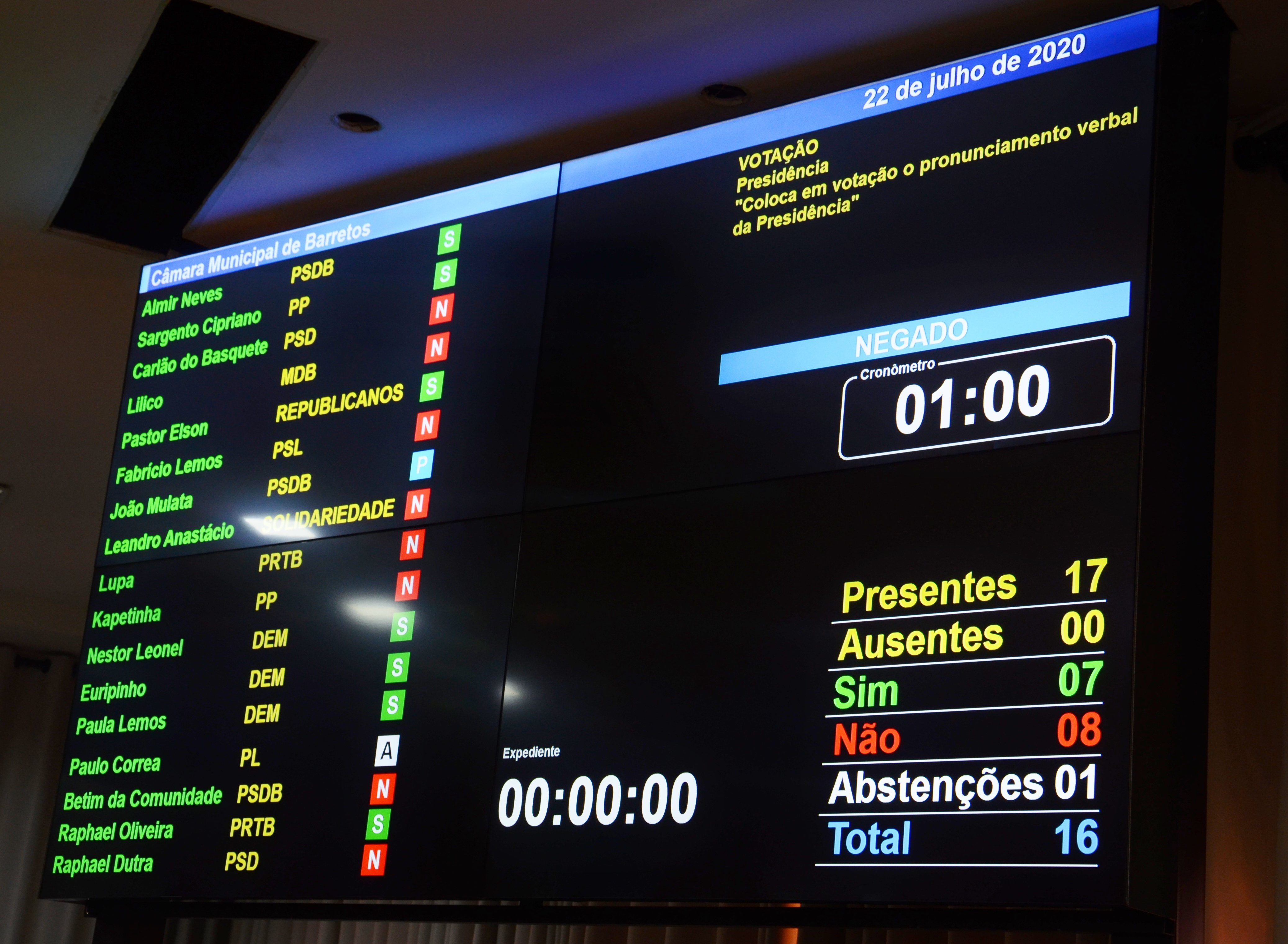 De acordo com a Mesa Diretora da Câmara, o sistema eletrônico de votação será utilizado no retorno das Sessões Ordinárias presenciais, ainda sem previsão. Devido às medidas de prevenção à Covid-19, as Sessões estão acontecendo por videoconferência.