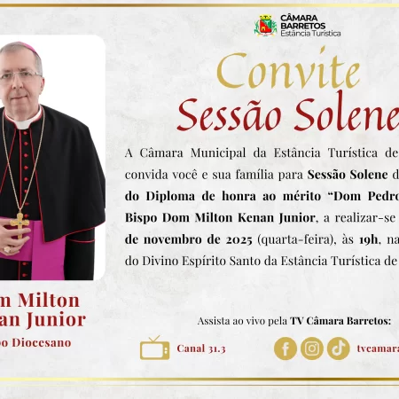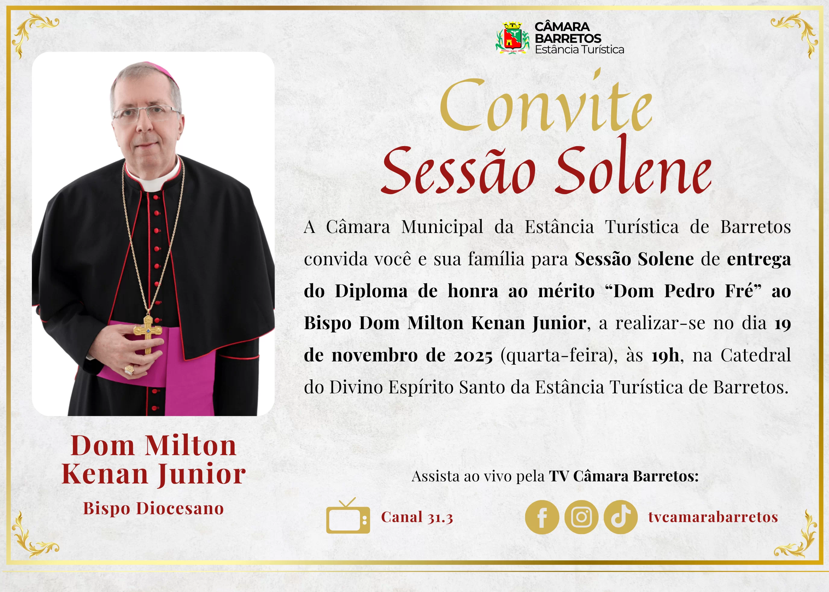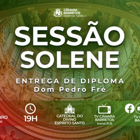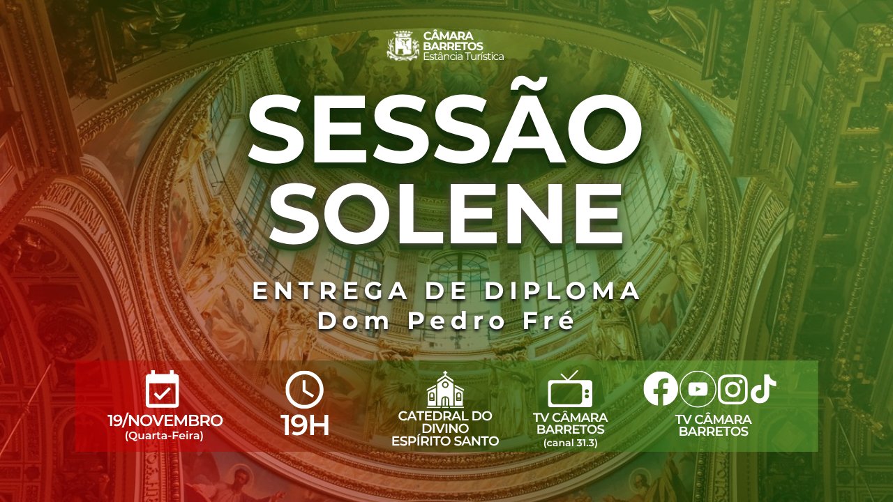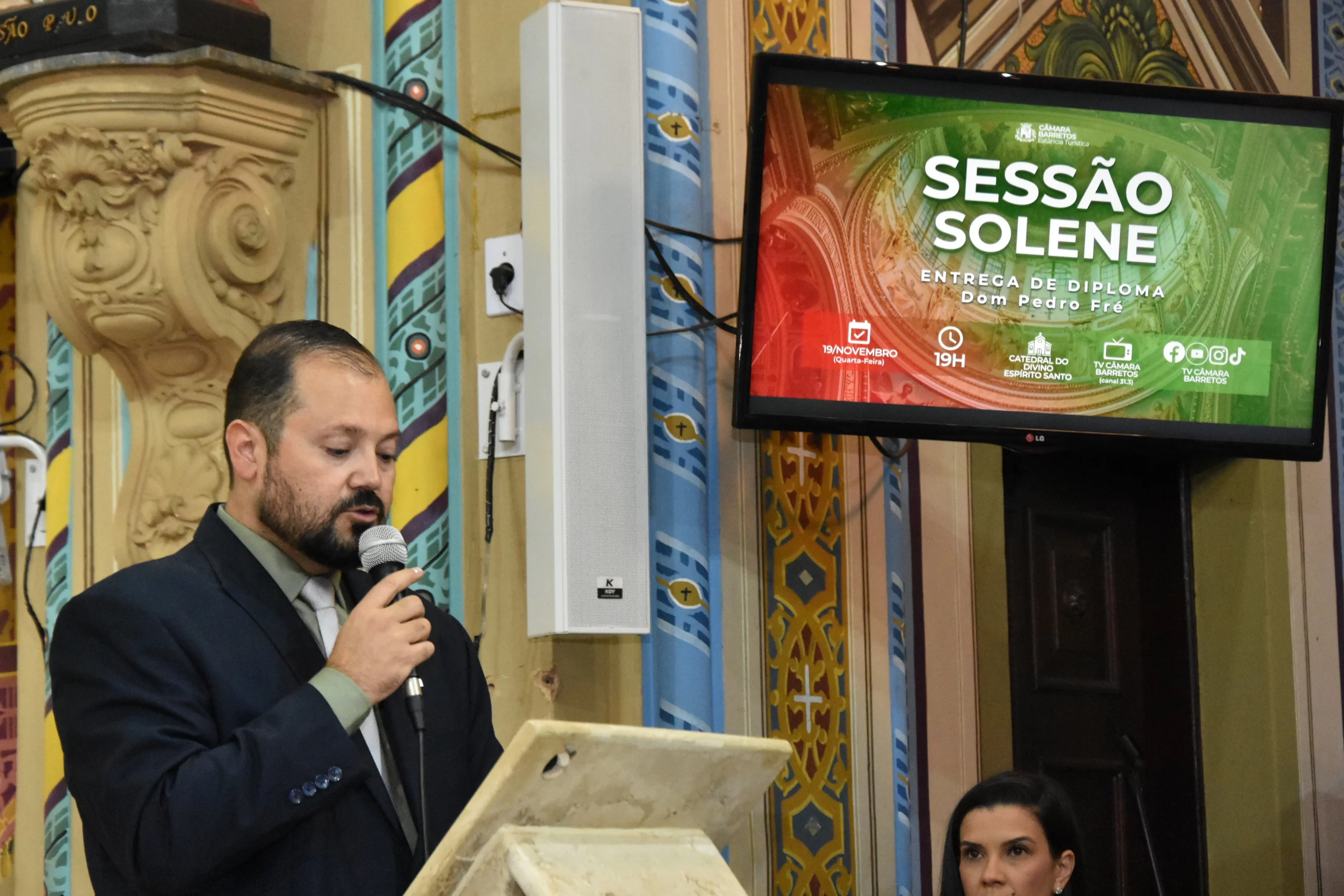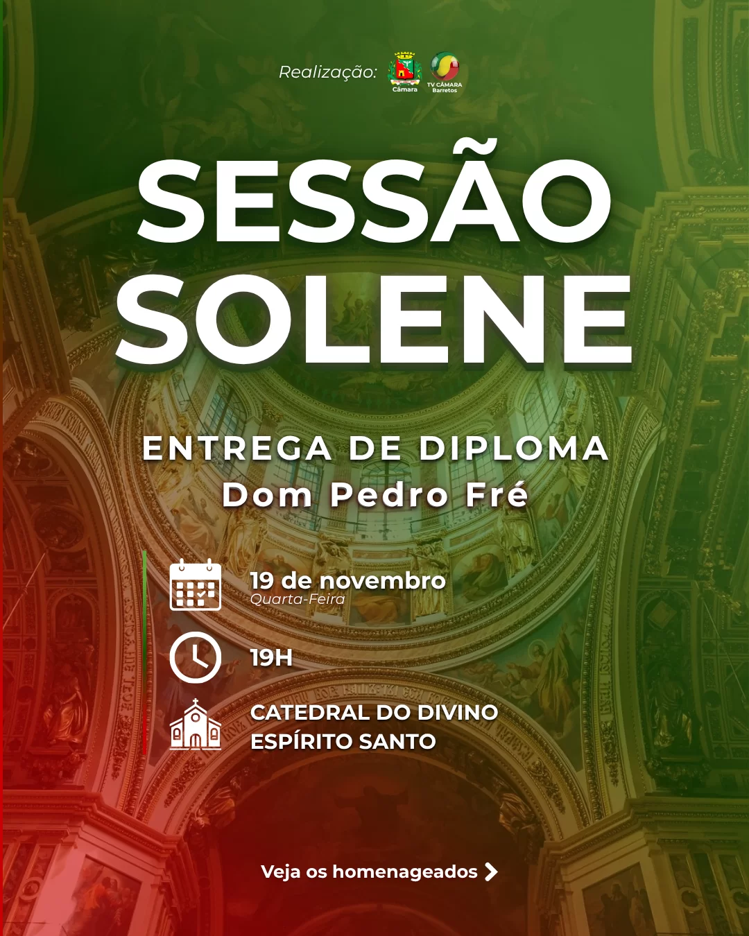 A Câmara Municipal de Barretos realizou, na noite de quarta-feira (19/novembro), às 19h, na Igreja Catedral do Divino Espírito Santo, Sessão Solene de entrega do Diploma de Honra ao Mérito “Dom Pedro Fré” 2025 - Sanare Contritos Corde (“Curar os corações feridos”).