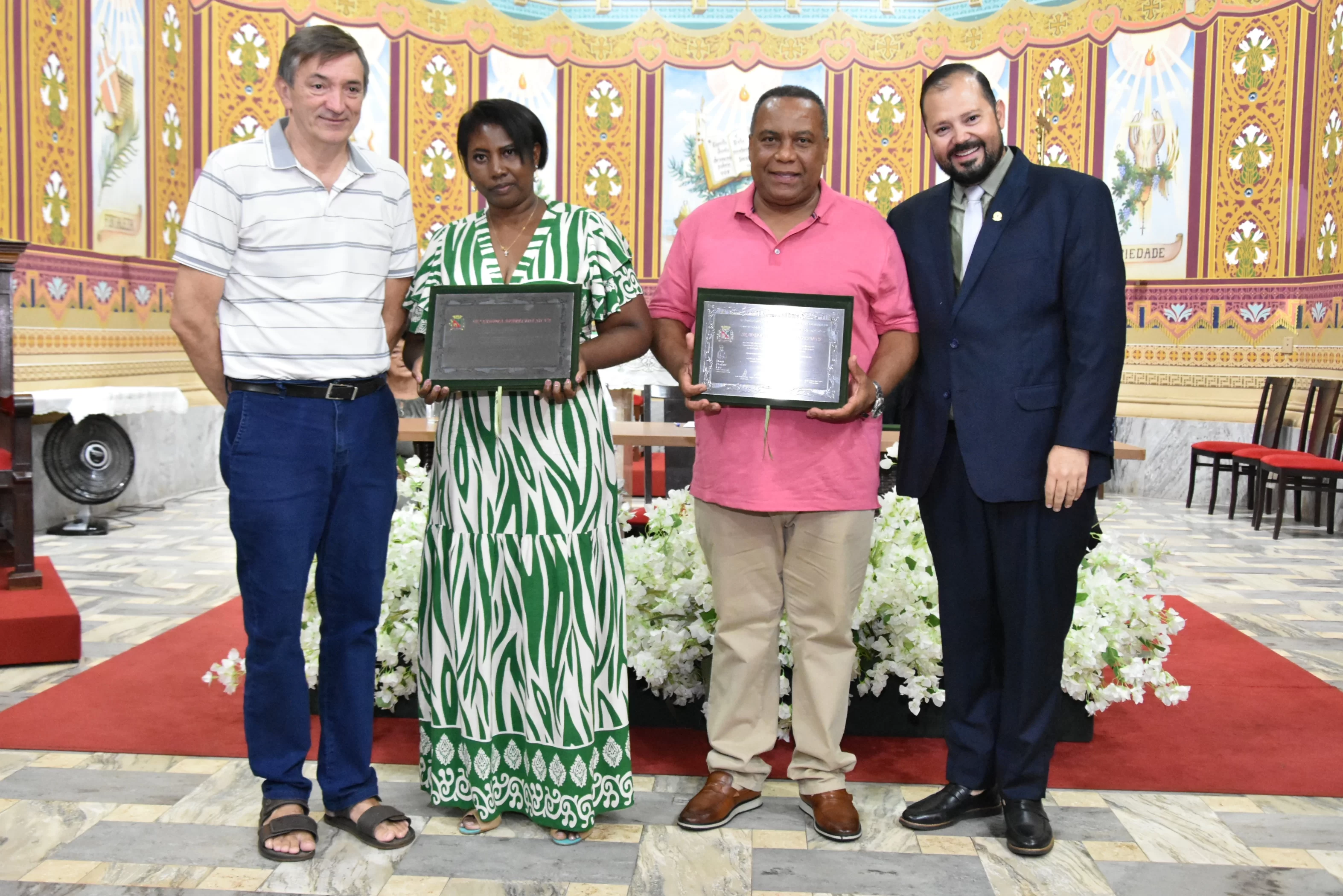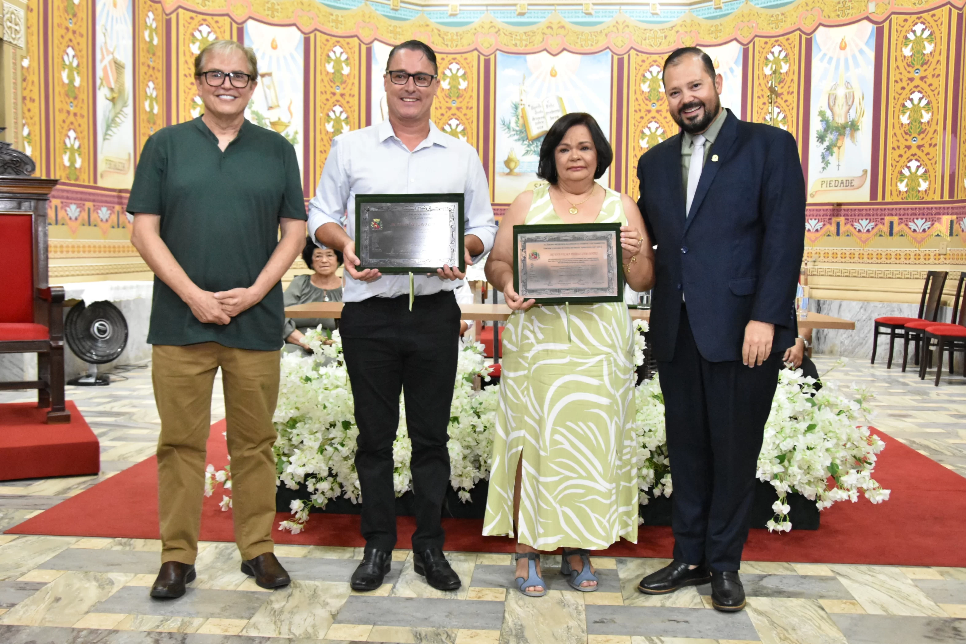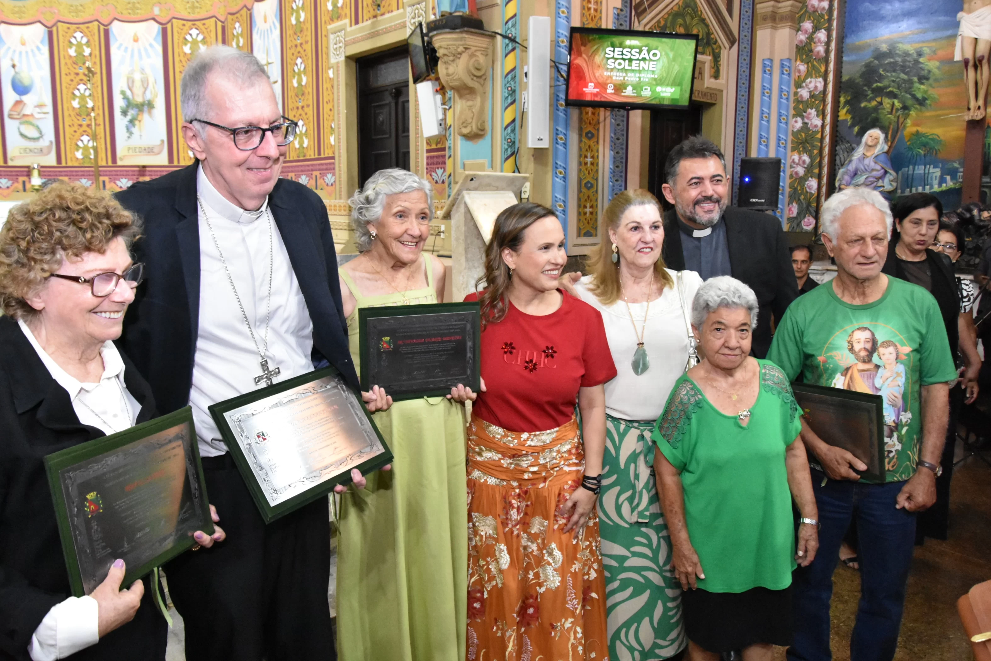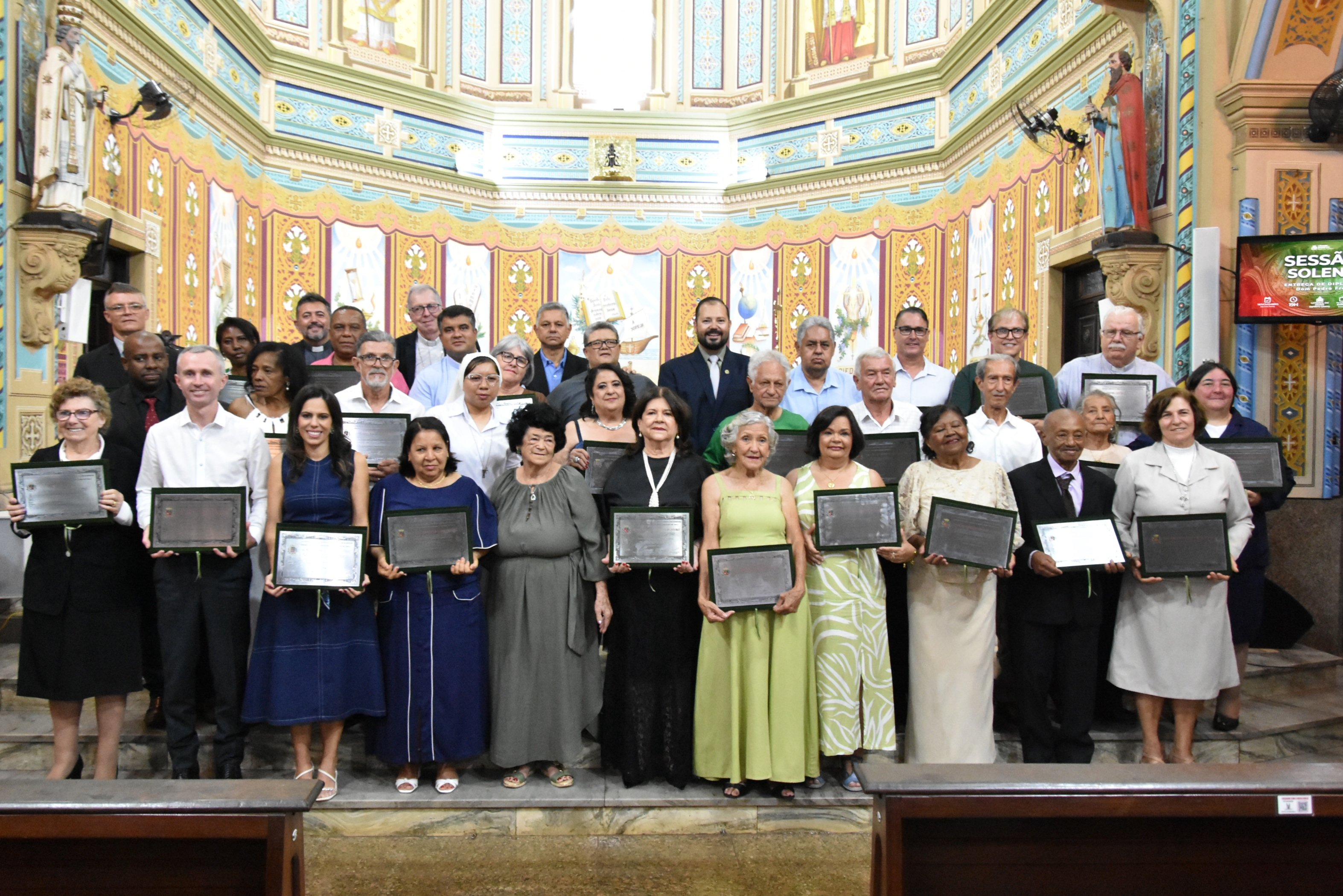 Autoridades do Município, familiares e amigos dos homenageados e cidadãos interessados lotaram a Catedral do Divino Espírito Santo para prestigiar a homenagem.